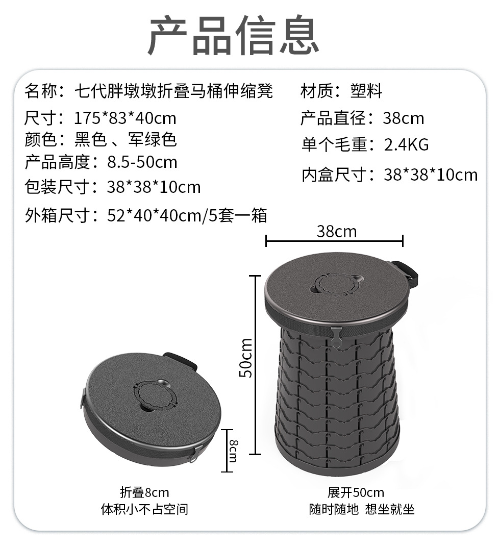 Inodoro plegable de séptima generación para acampar al aire libre, inodoro móvil de emergencia temporal, bote de basura multifuncional, envío directo de fábrica transfronterizo