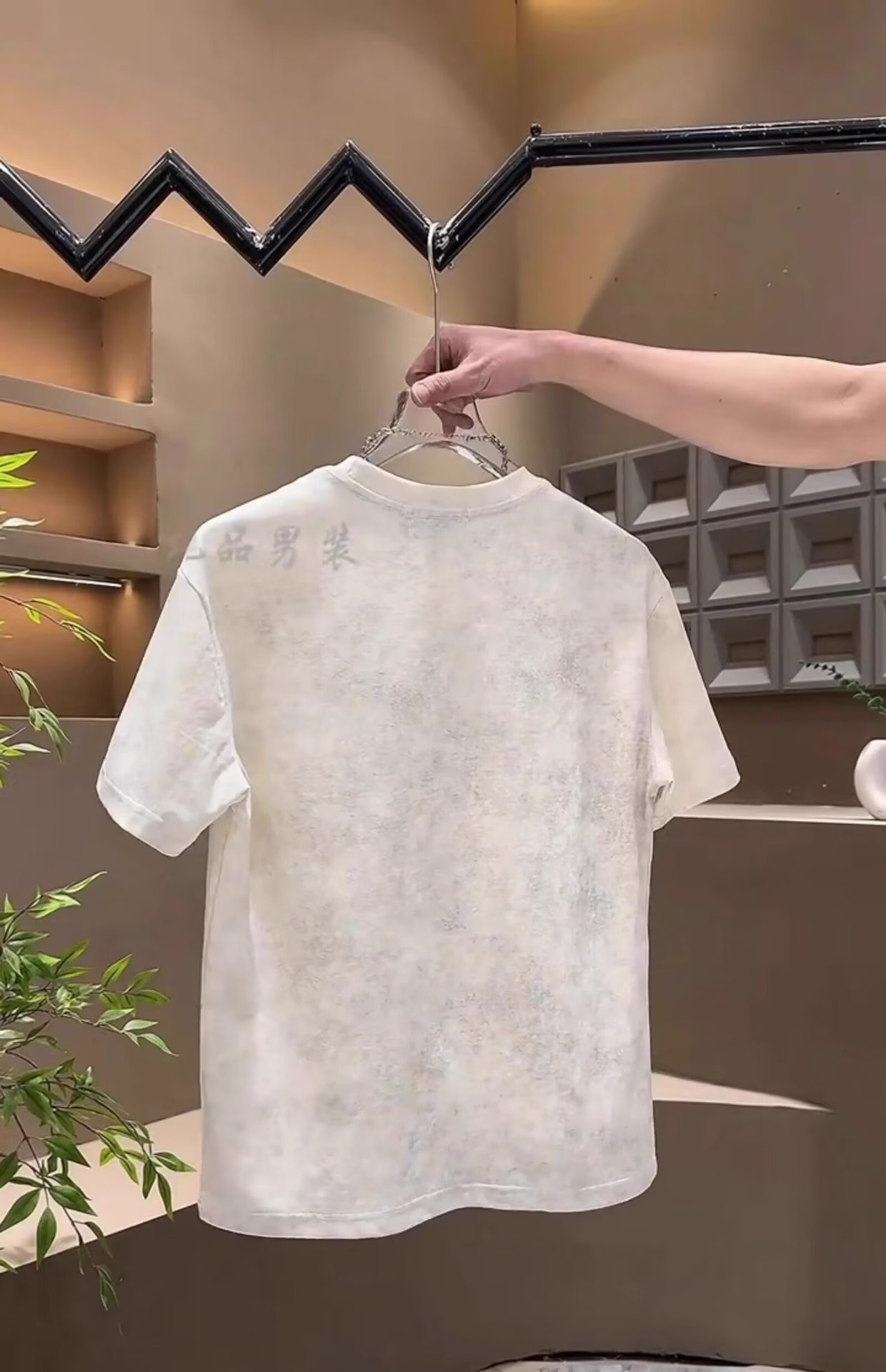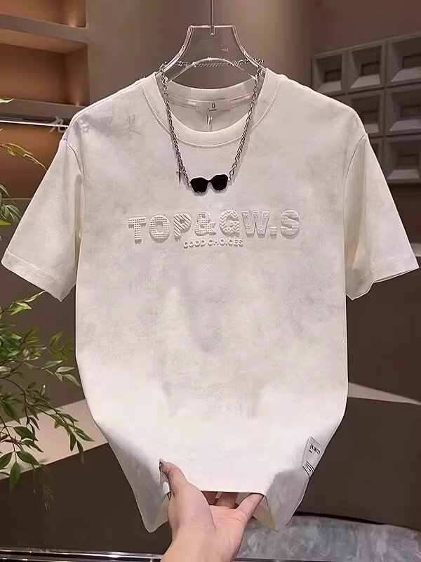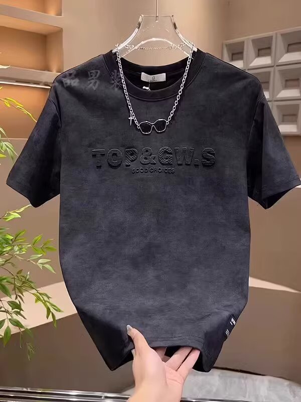 Camiseta de manga corta para hombres de verano, seda de hielo transpirable, nuevo estilo retro jacquard casual, suelto, versátil, cuello redondo, chaqueta de moda