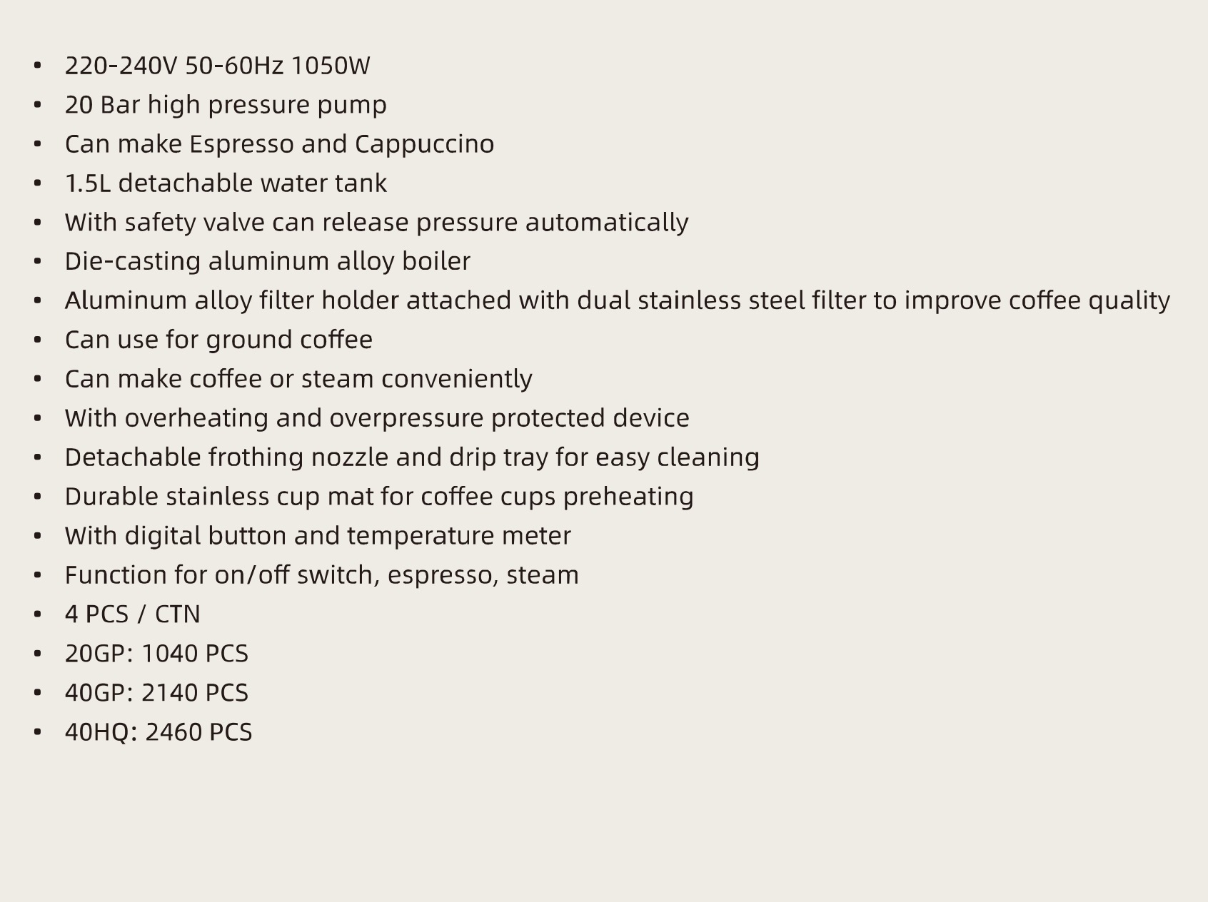 Semiautomática de alta presión de extracción de vapor concentrado de espuma de leche cafetera transfronteriza máquina de café espresso