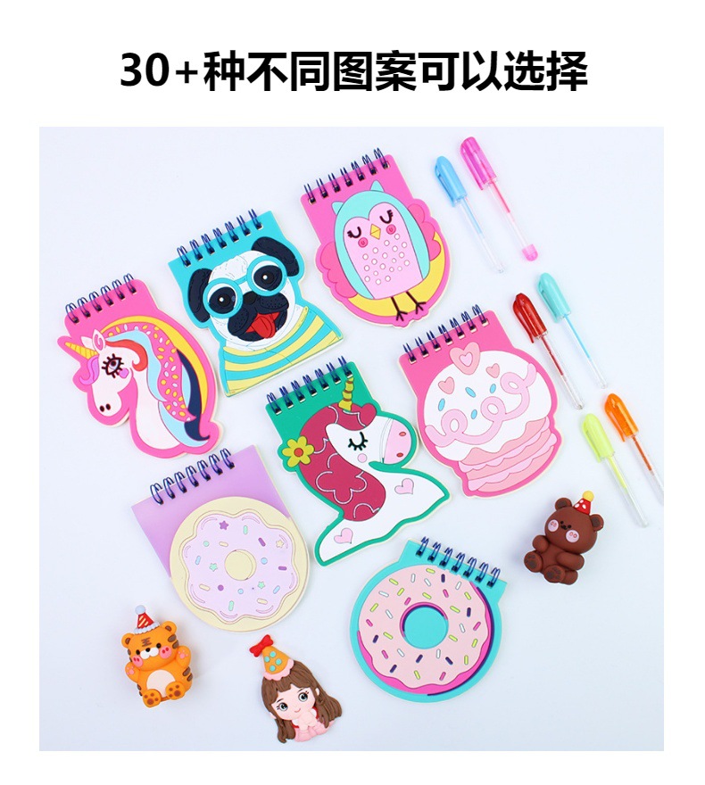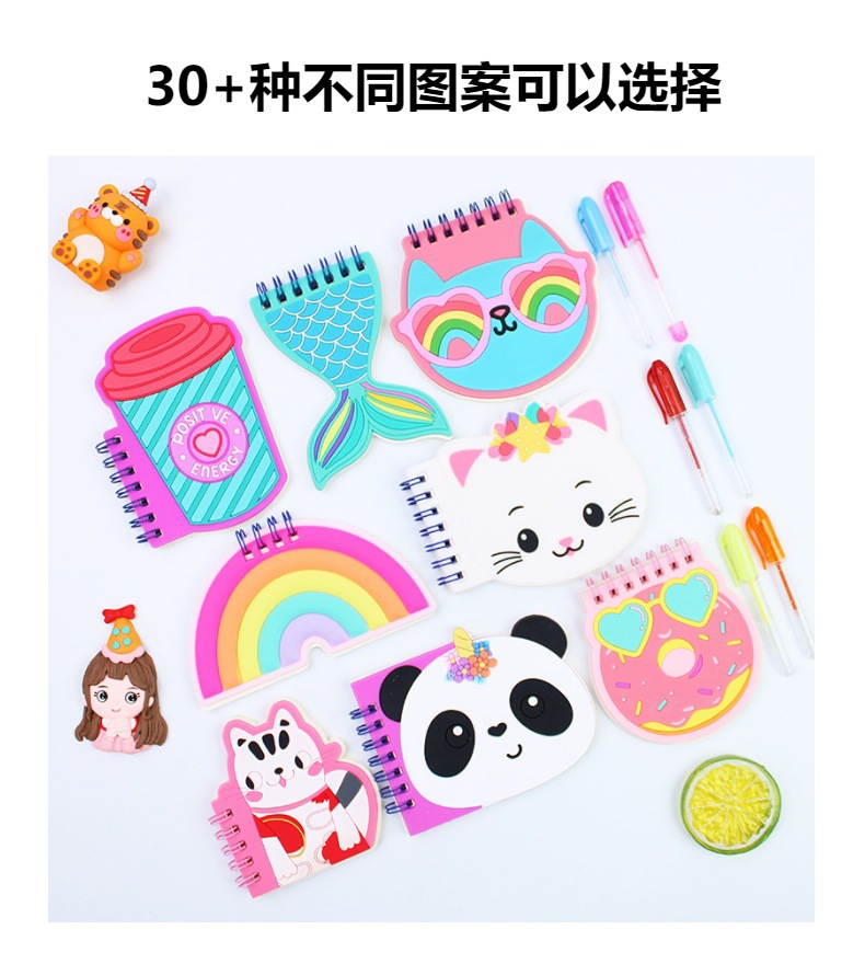 Cubierta de silicona pequeña bobina libro mini dibujos animados especial en forma de cuaderno papelería creativa forma de animal lindo con pluma