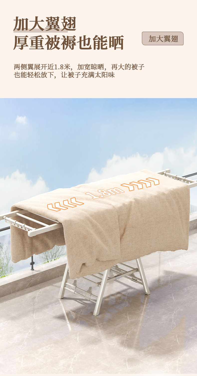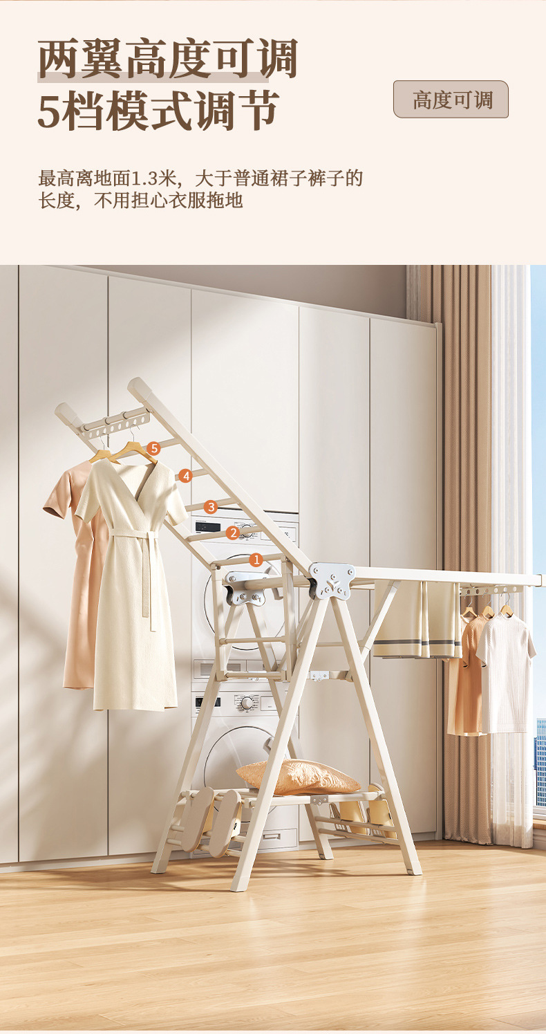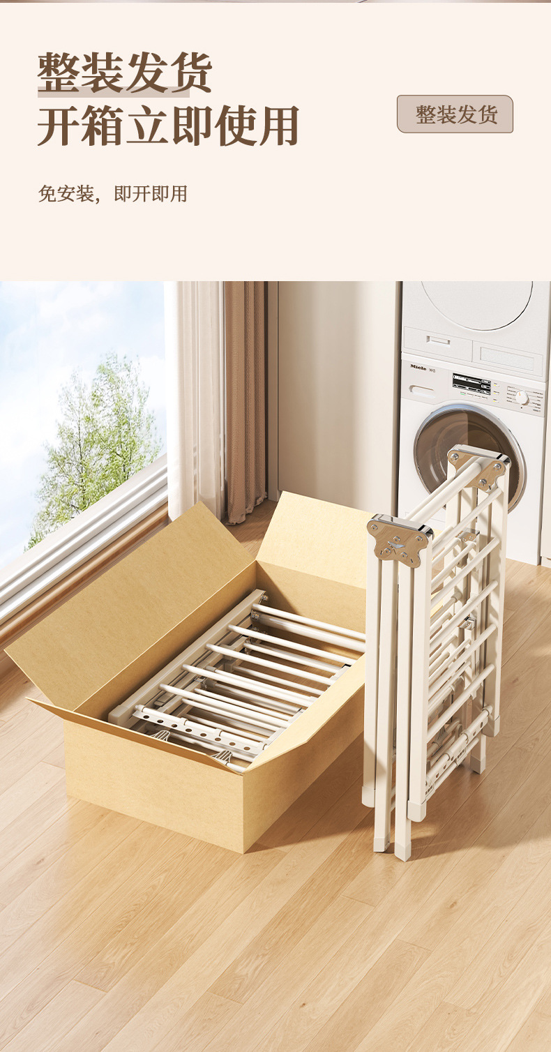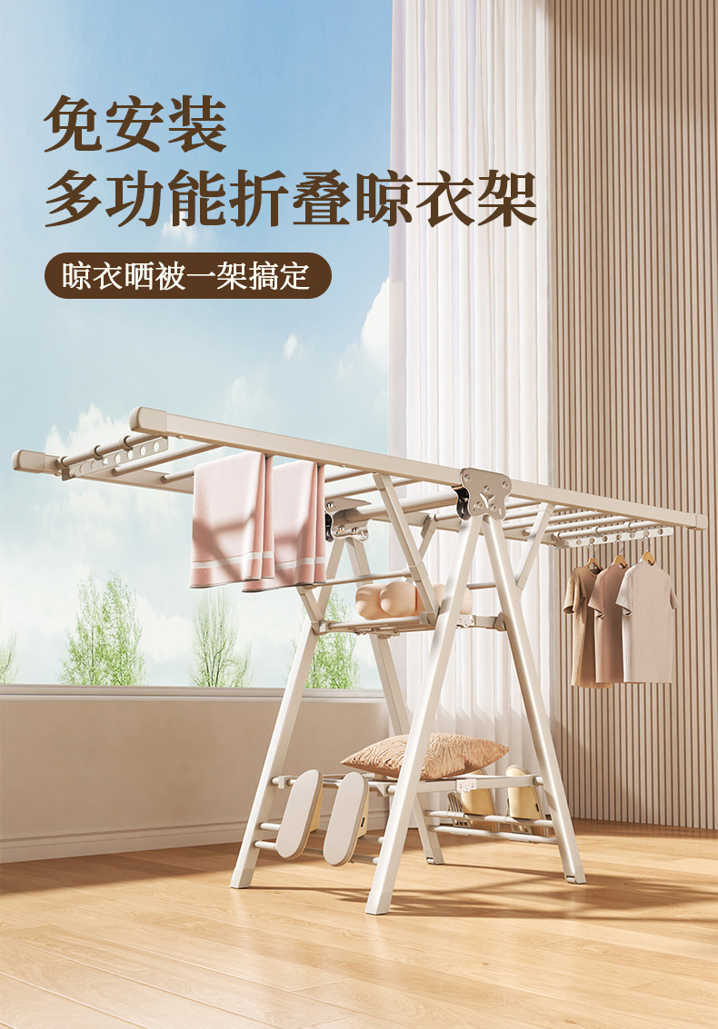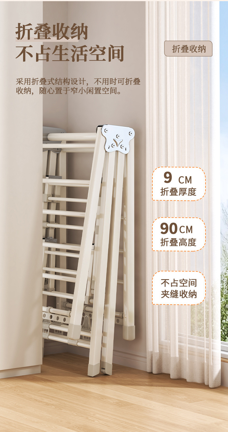 Percha de secado plegable sin instalación, piso al suelo, dormitorio, balcón ajustable, percha de secado interior y exterior, varilla de secado para bebés