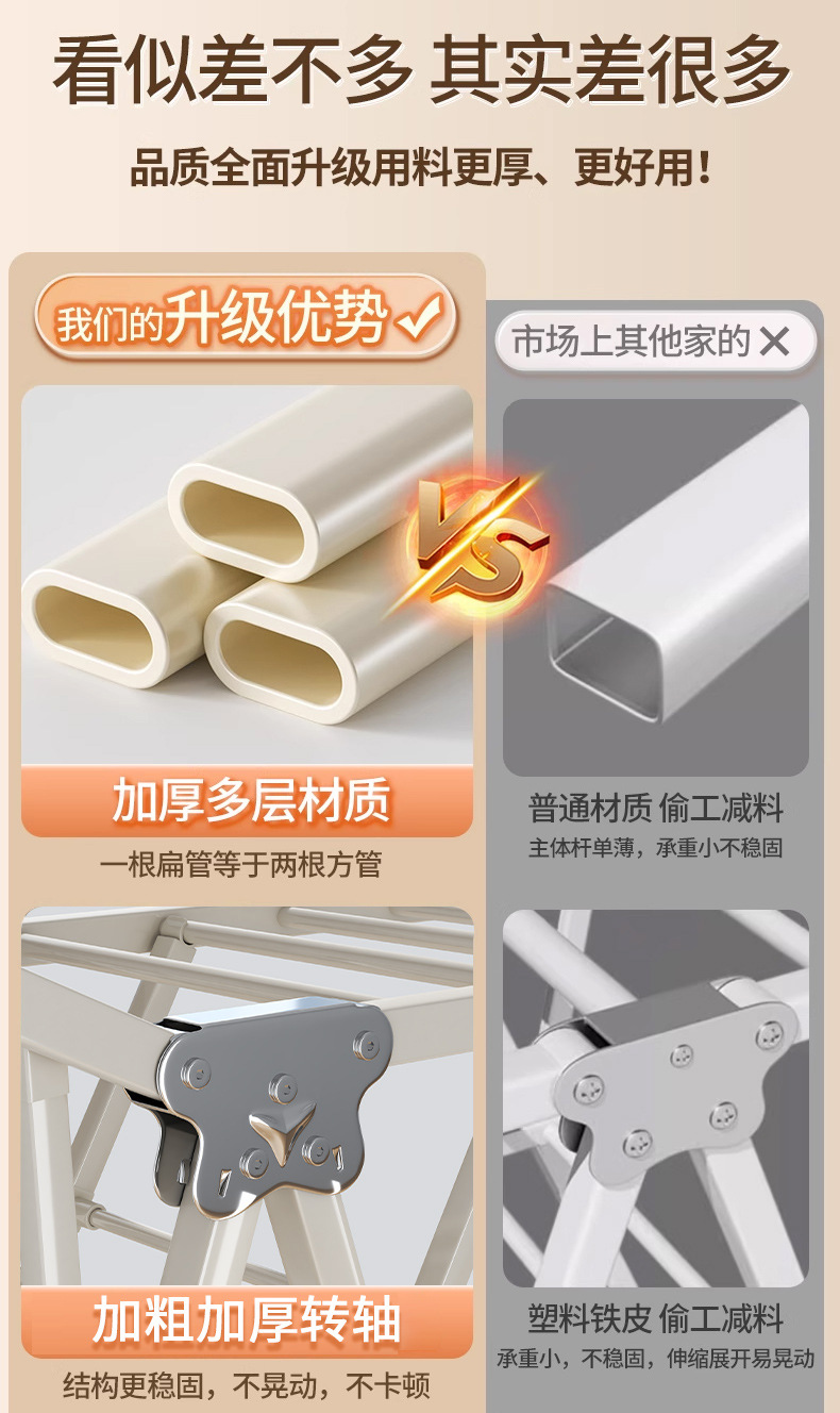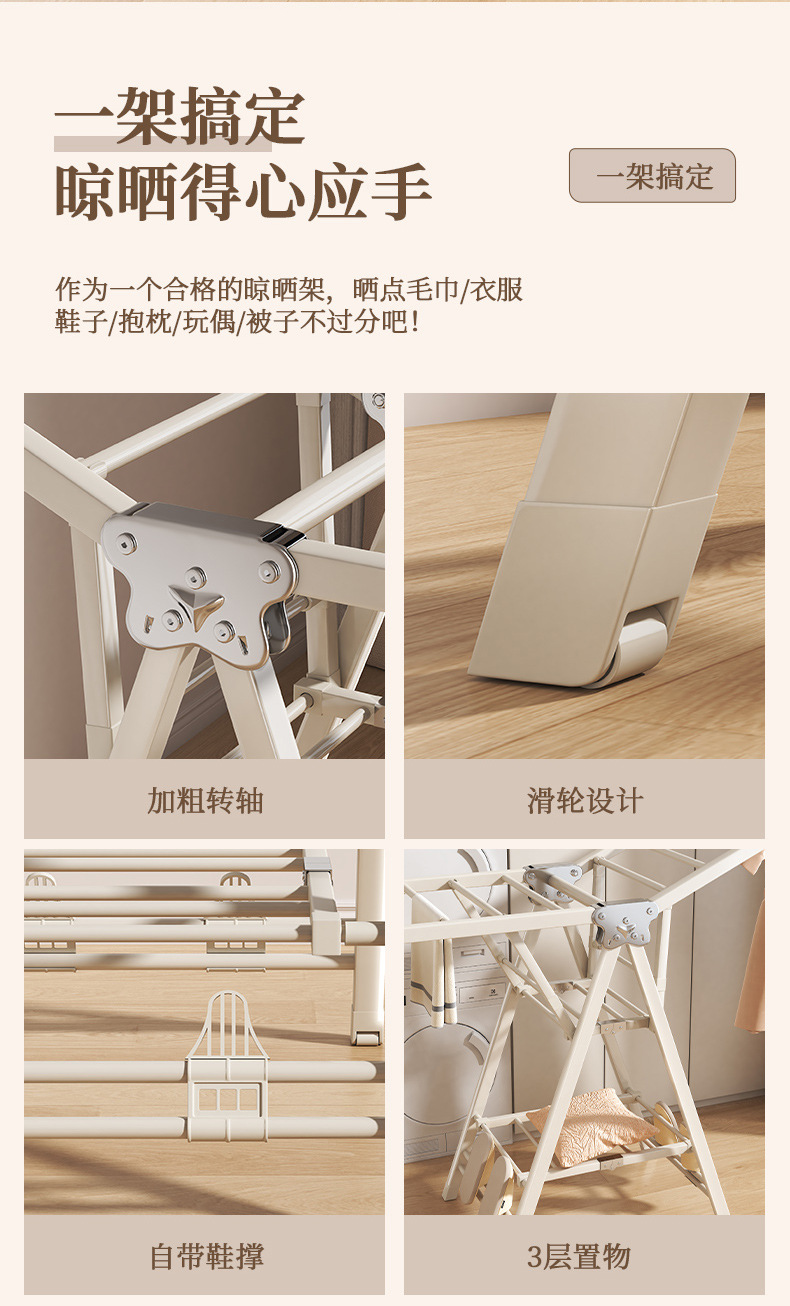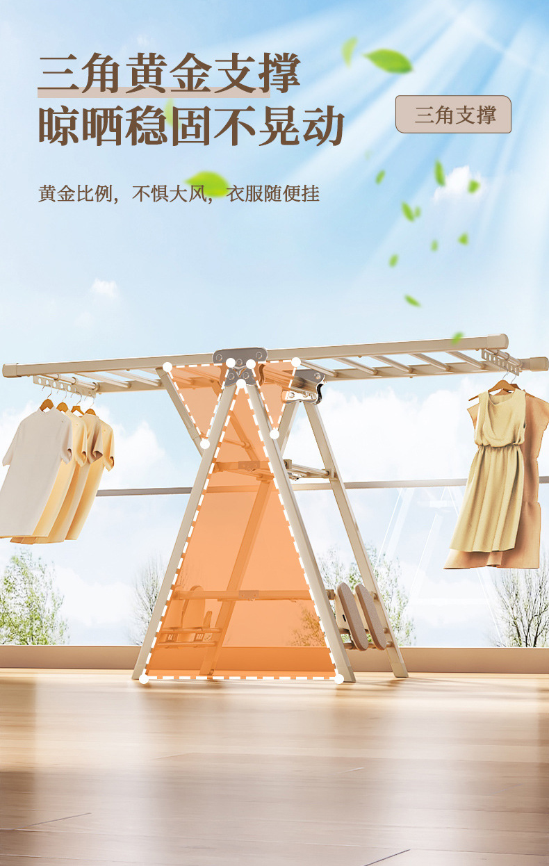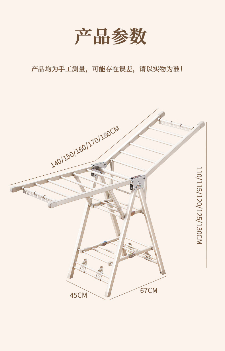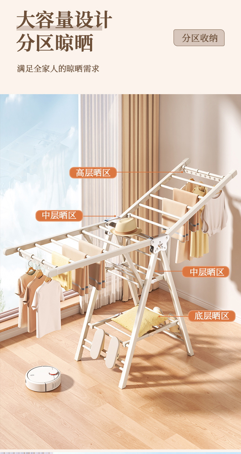 Percha de secado plegable sin instalación, piso al suelo, dormitorio, balcón ajustable, percha de secado interior y exterior, varilla de secado para bebés