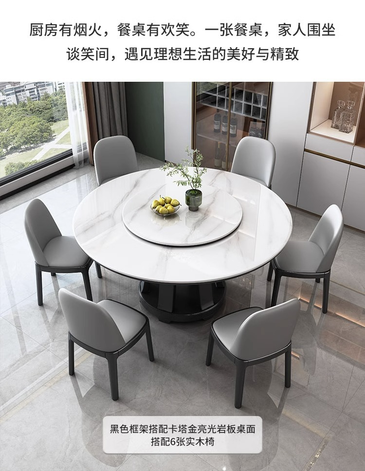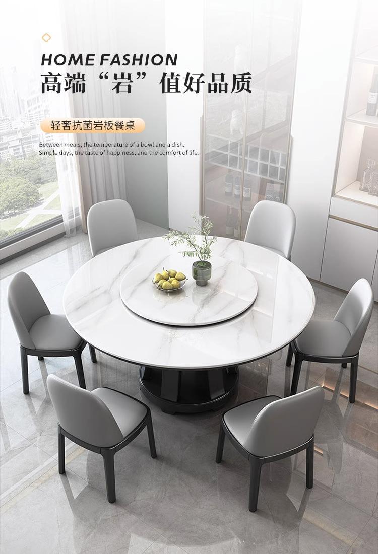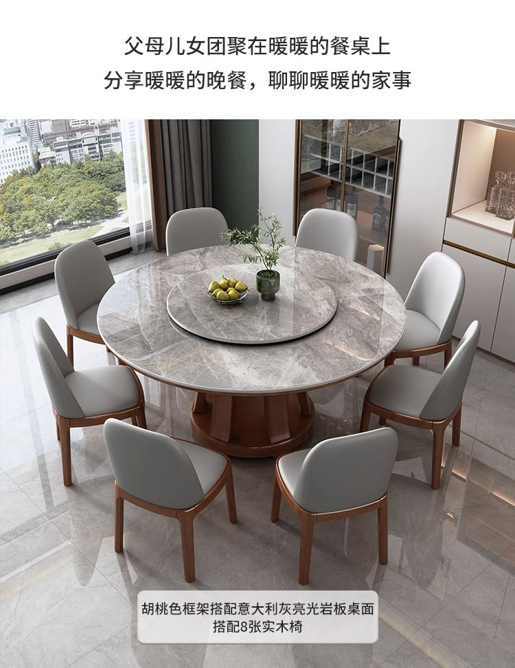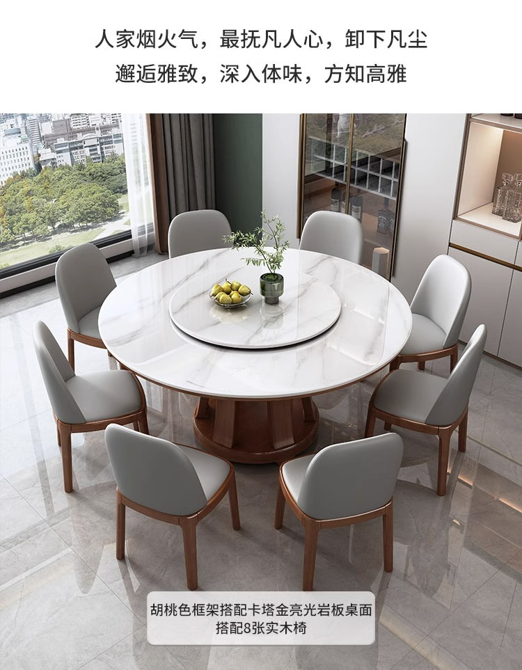 Mesa de comedor de placa de roca moderna minimalista casa pequeño apartamento Hotel mesa de comedor madera maciza Mesa Redonda 1,6 M 10 personas con Tocadiscos