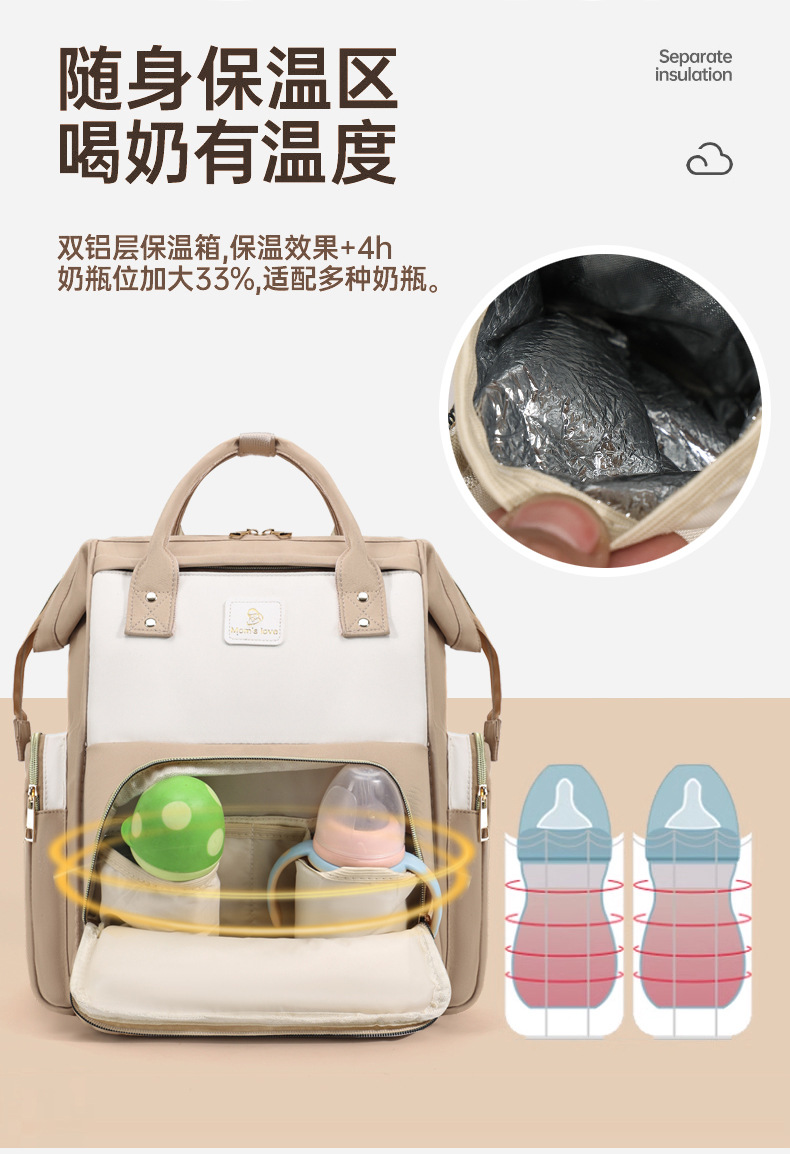 Nueva bolsa de mamá transfronteriza, papel de aluminio de gran capacidad, preservación del calor y anti-salpicaduras, bolsa de madre e hijo, mochila multiusos con bebé