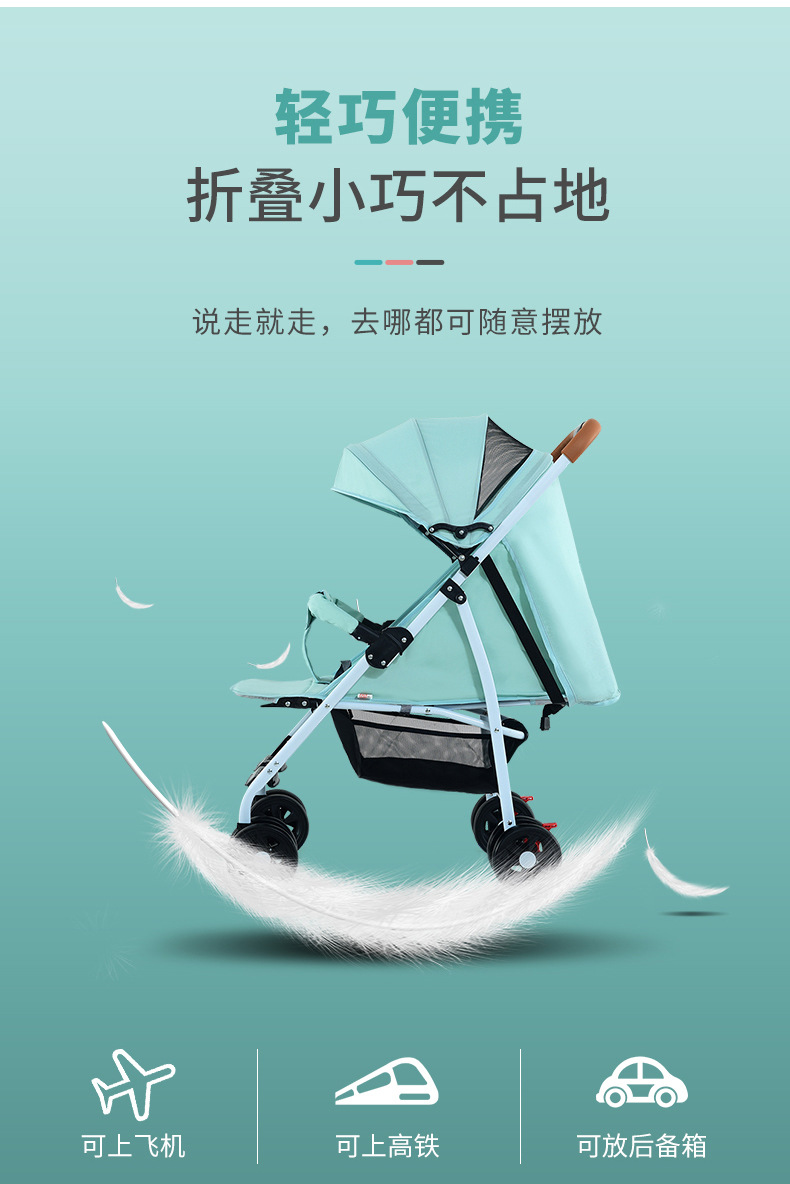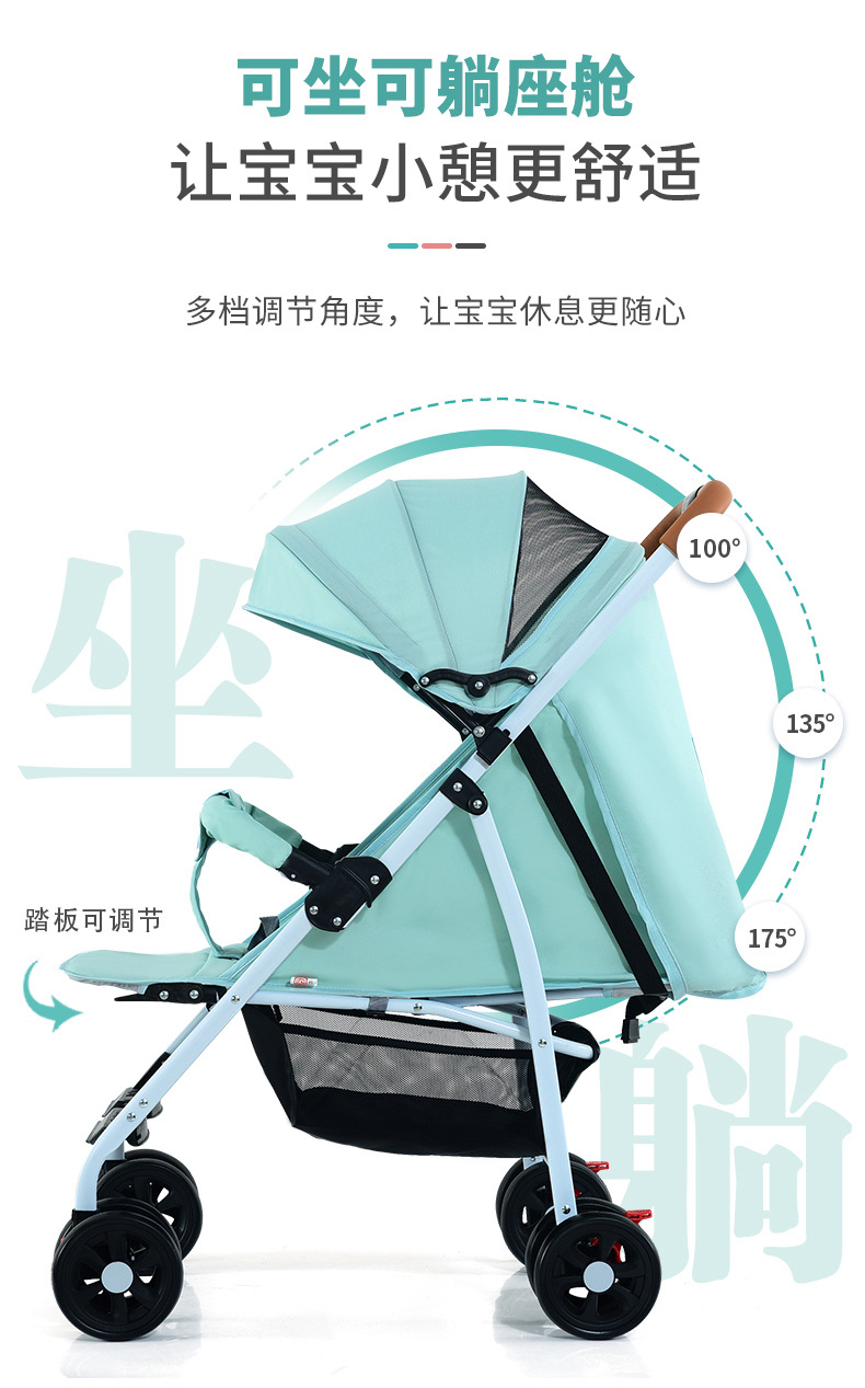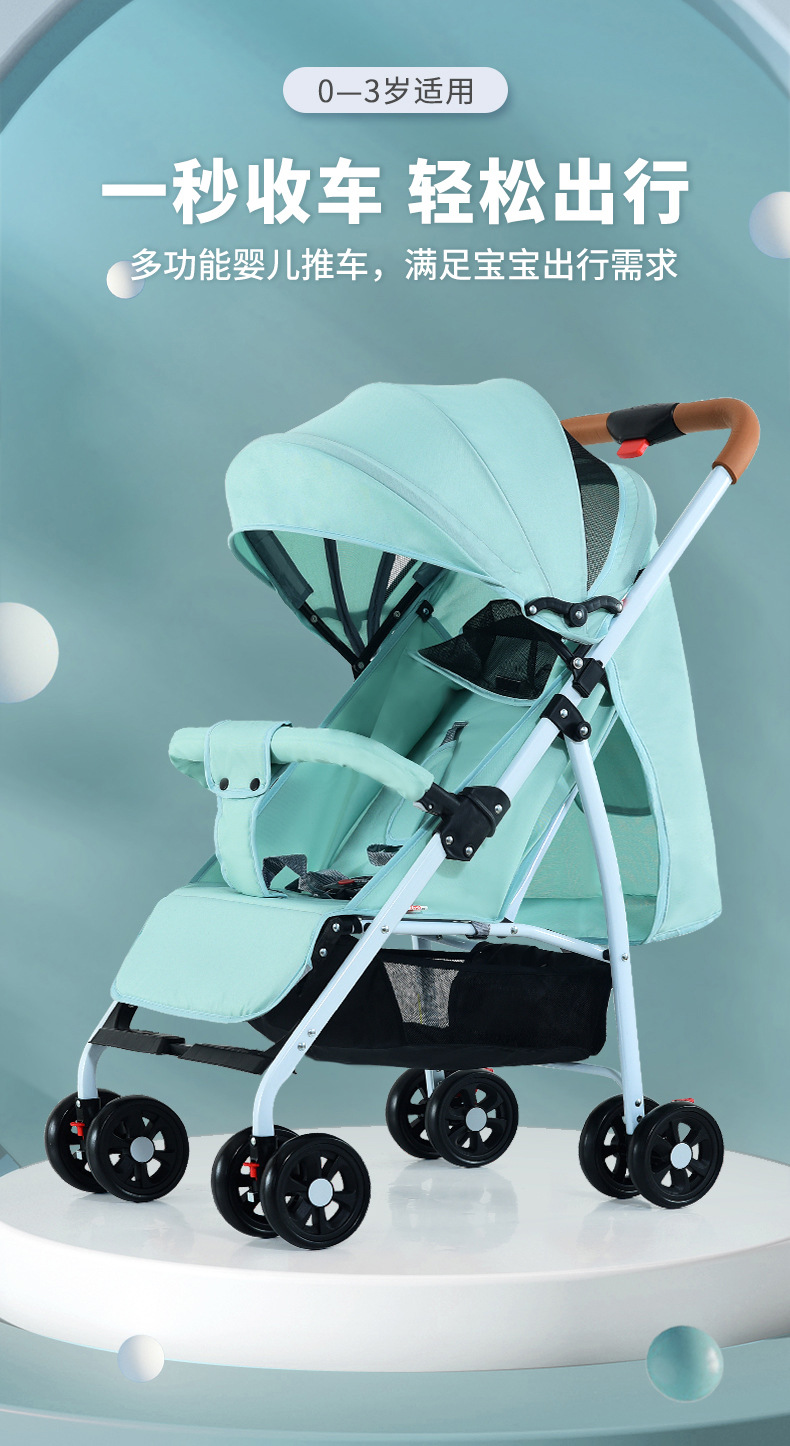 Cochecito de bebé para niños personalizado ligero, plegable con una tecla, dos vías, puede sentarse y acostarse, amortiguador de cochecito de bebé de paisaje alto