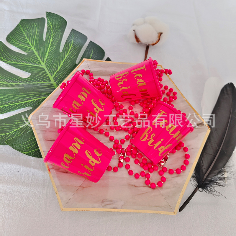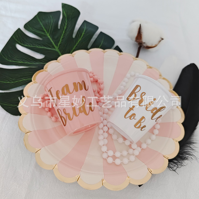 Vasos Pequeños para Fiesta — Mini Shots “Bride to Be” con Cadena de Perlas (Halloween/Bachelor)