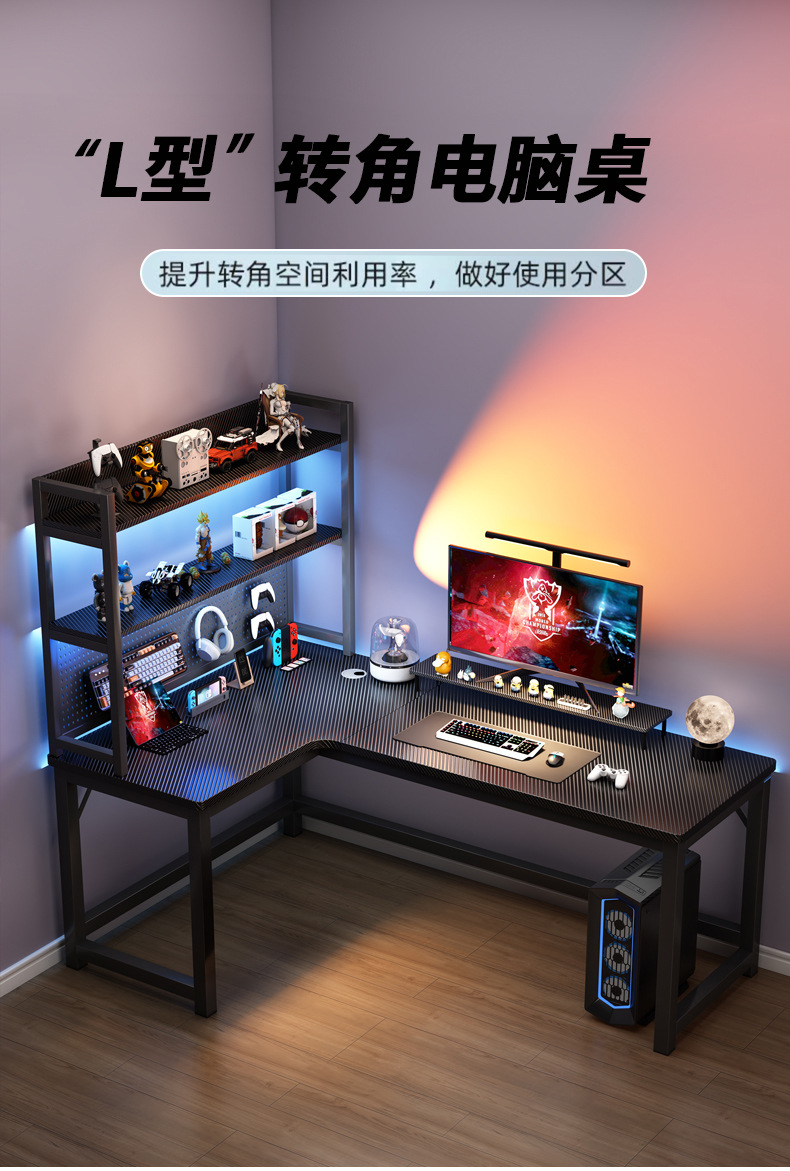 Esquina mesa de computadora mesa de escritorio casera de doble mesa agujero tablero agujero estante de libros dormitorio mesa de esquina mesa de juego