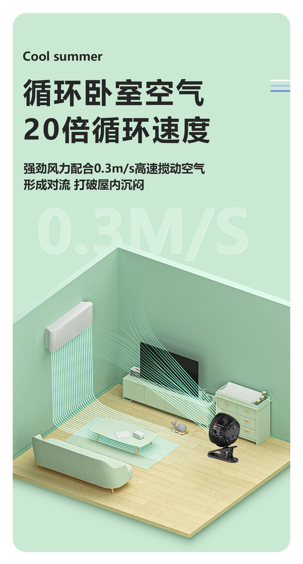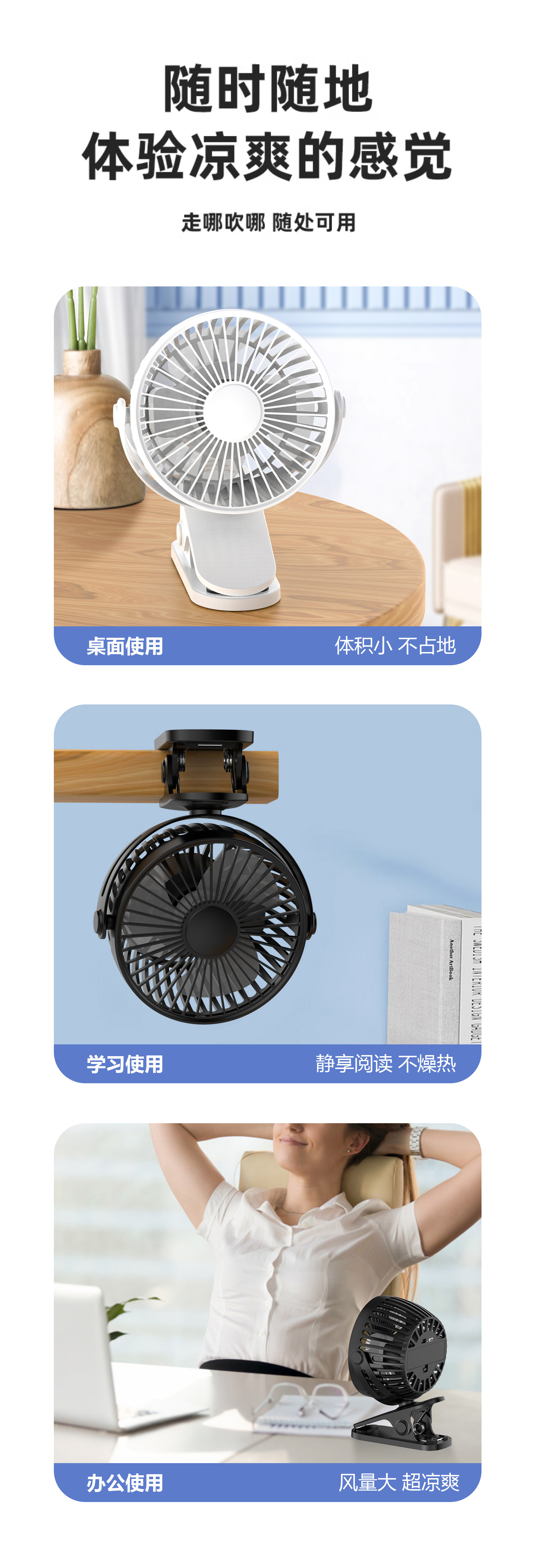 Mini ventilador USB con clip portátil silencioso para oficina escritorio estudiante dormitorio