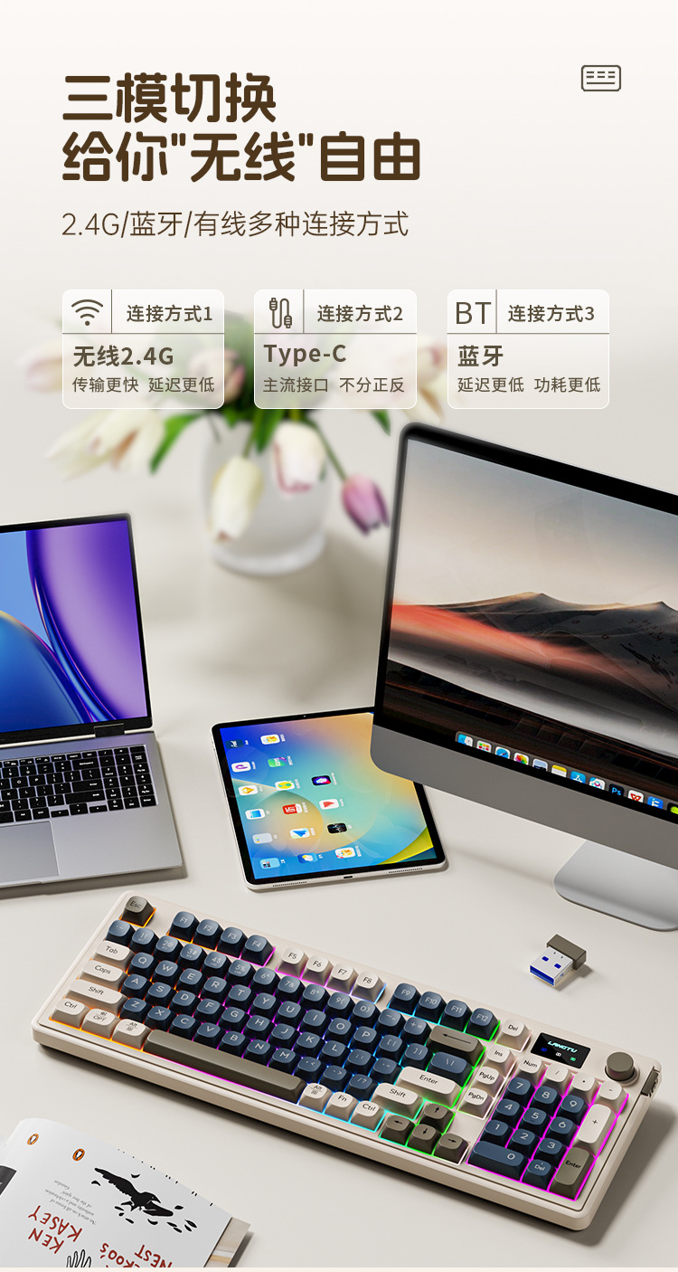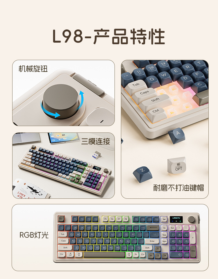Teclado L98 con triple modo: Bluetooth, inalámbrico y cableado