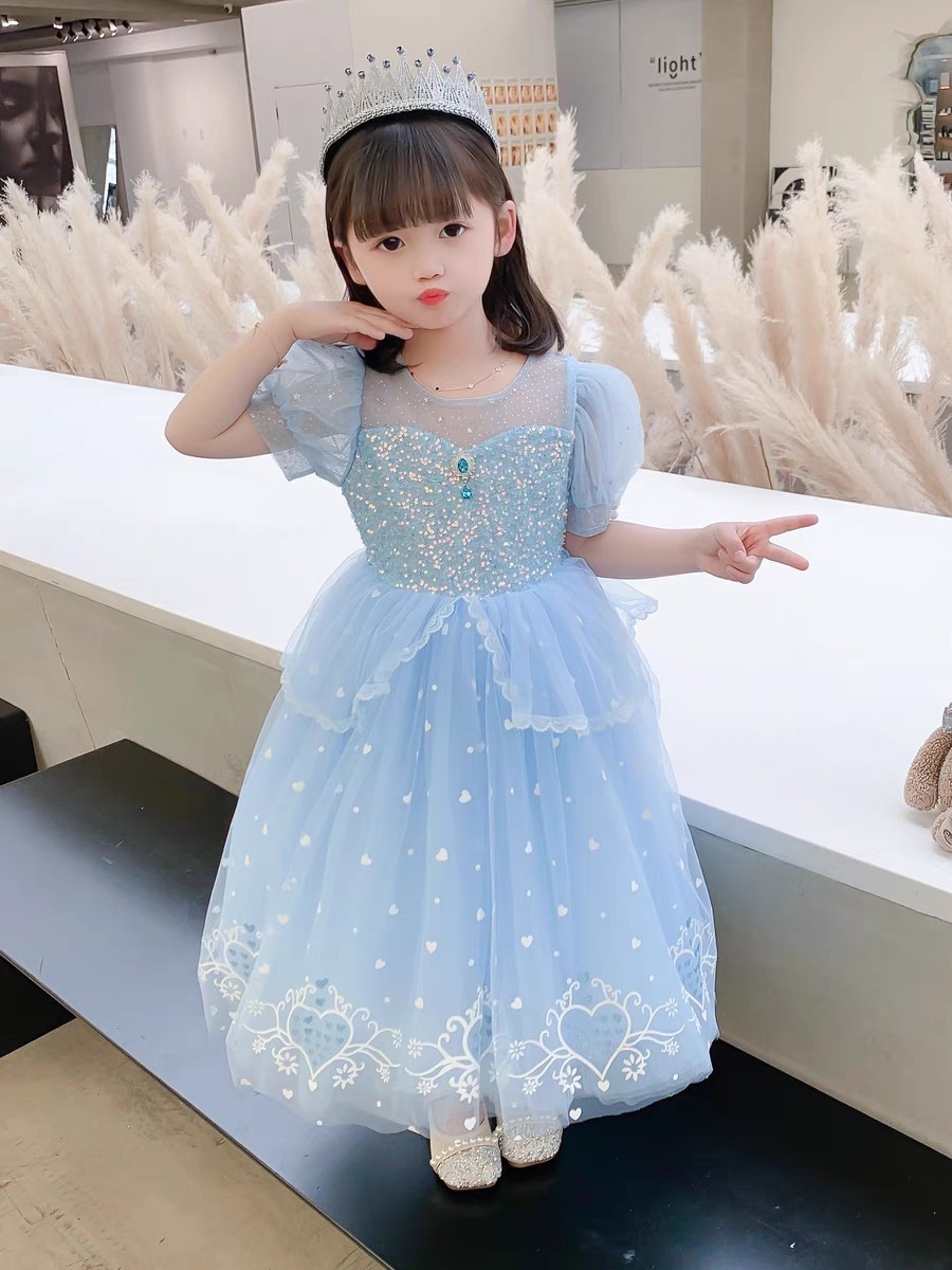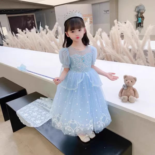 Vestido de princesa Elsa verano manga corta Frozen vestido largo para cumpleaños nuevo modelo