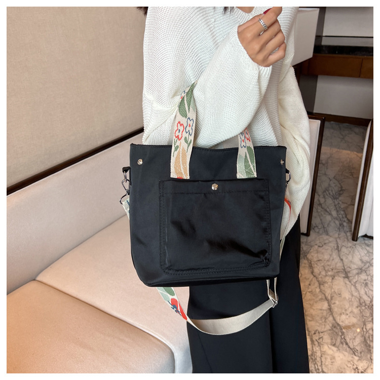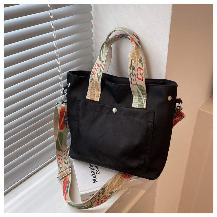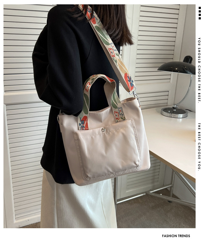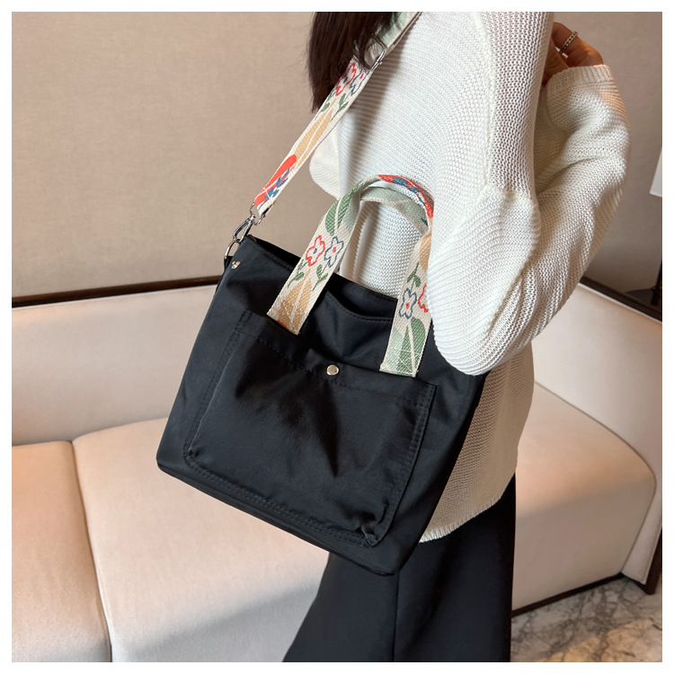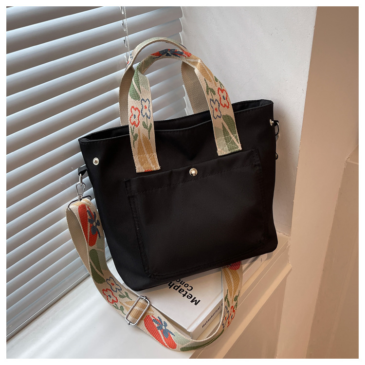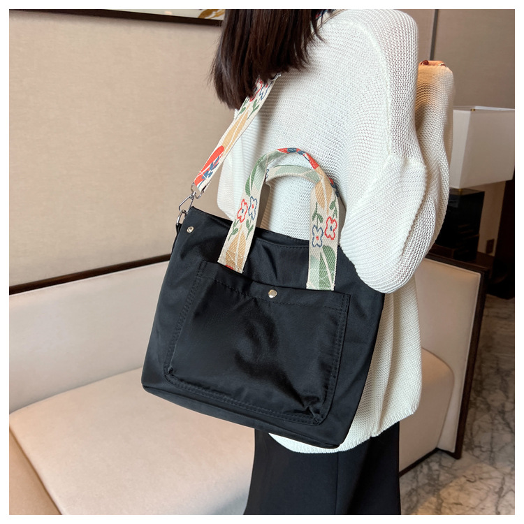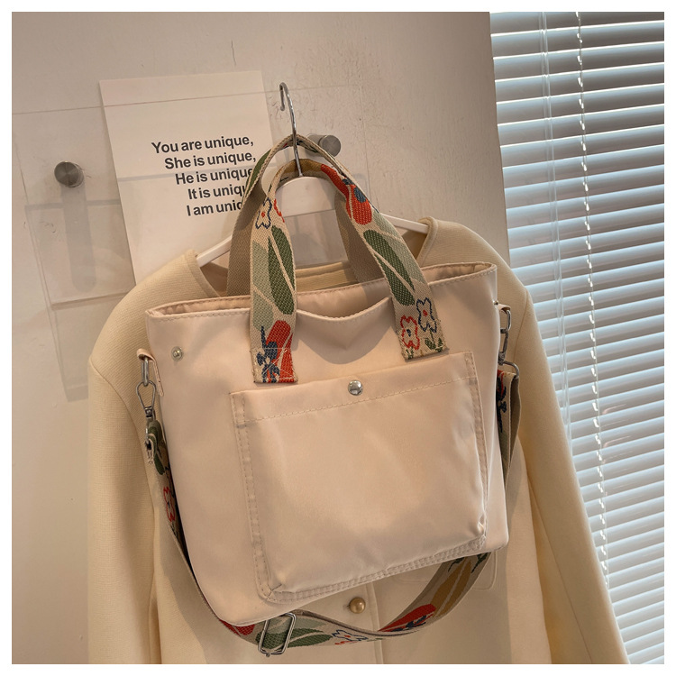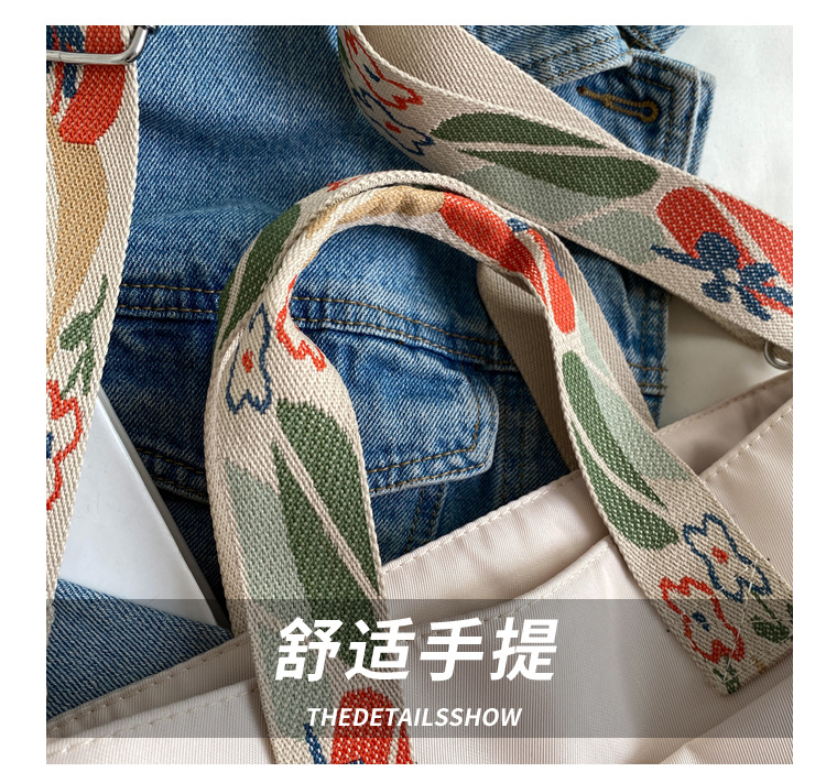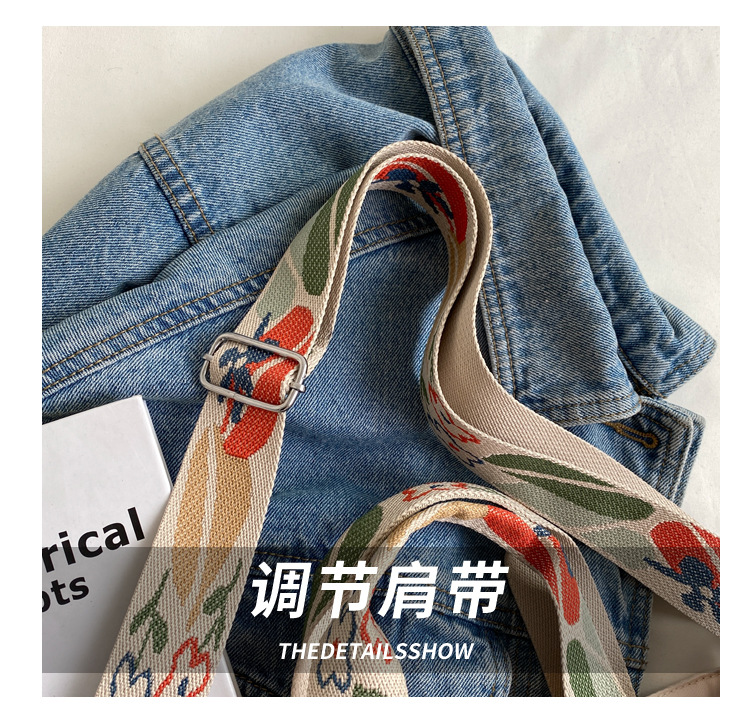 Bolso de lona con correa ancha, bandolera tipo estudiante estilo casual