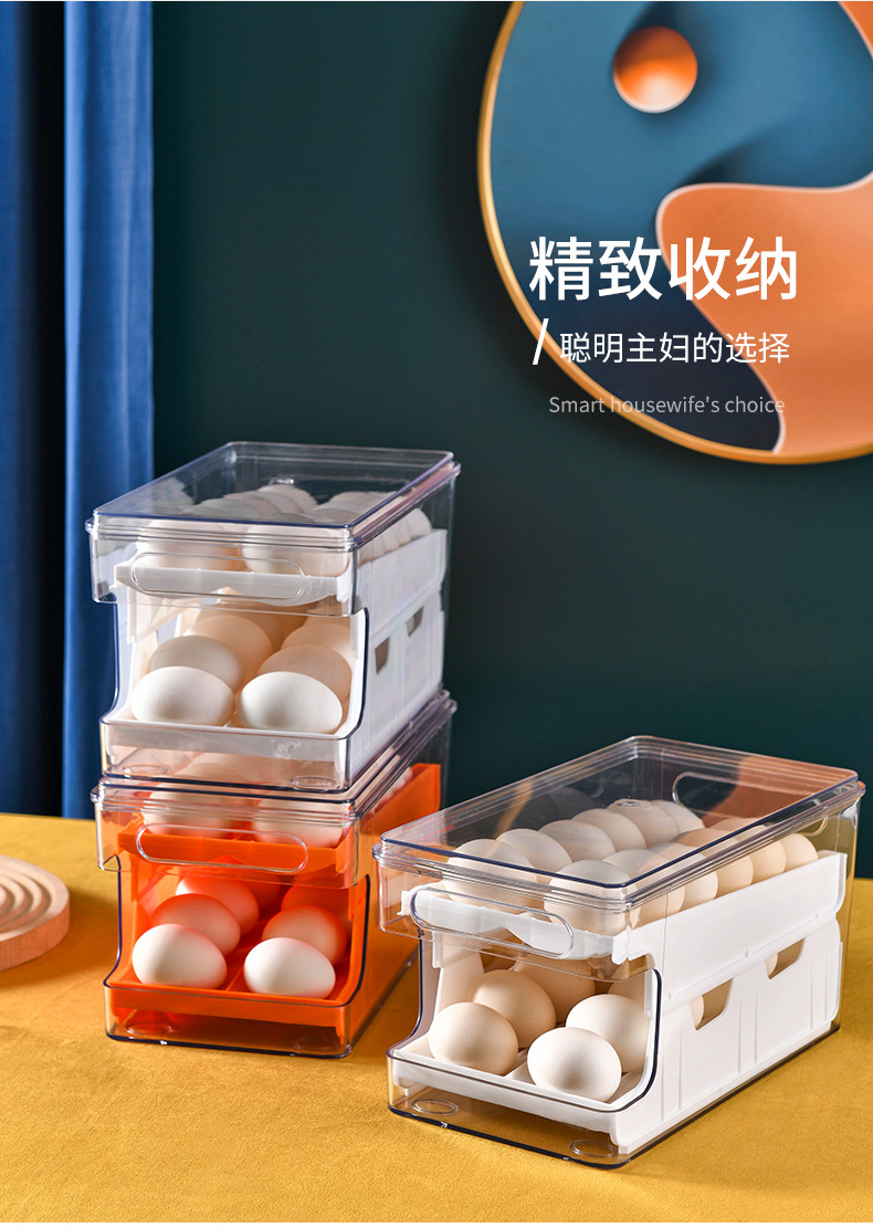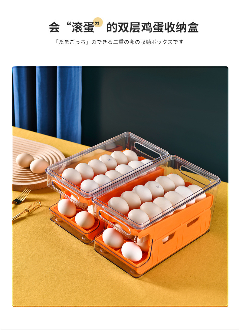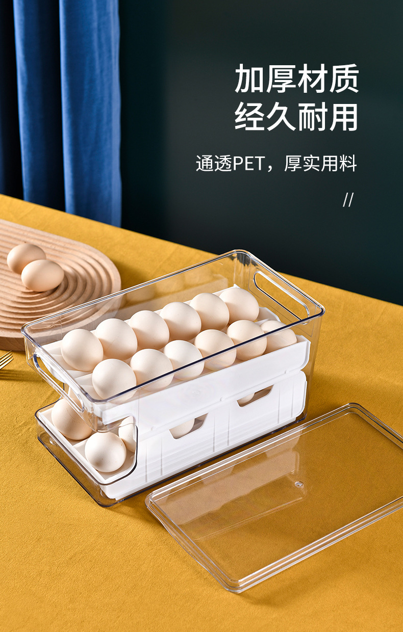 Organizador de refrigerador deslizante | Huevera doble capa con tapa