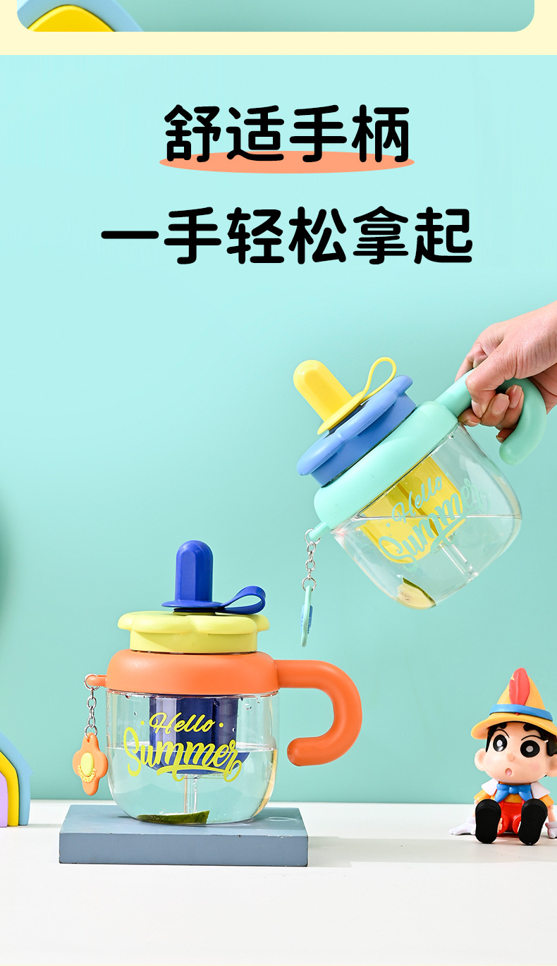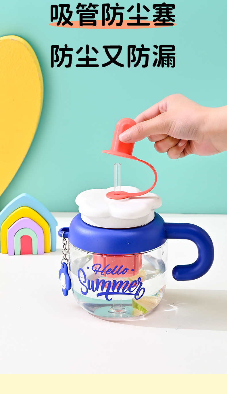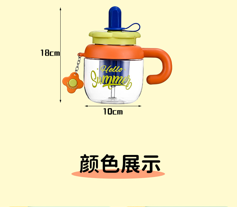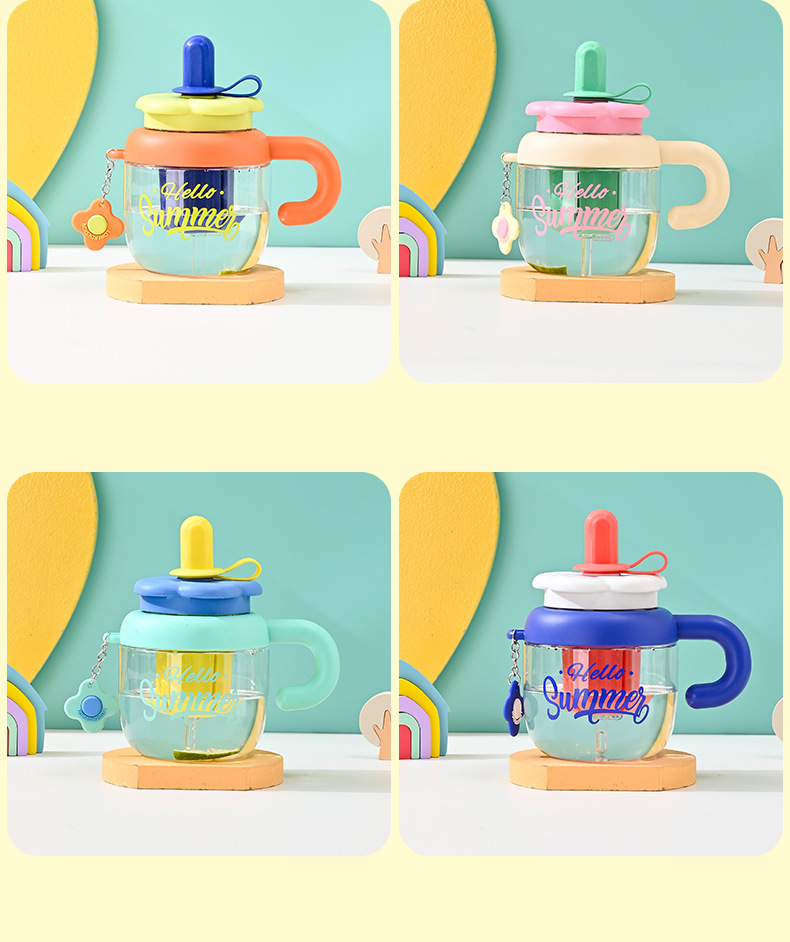 Vaso grande con flor y asa | Taza plástica resistente a altas temperaturas