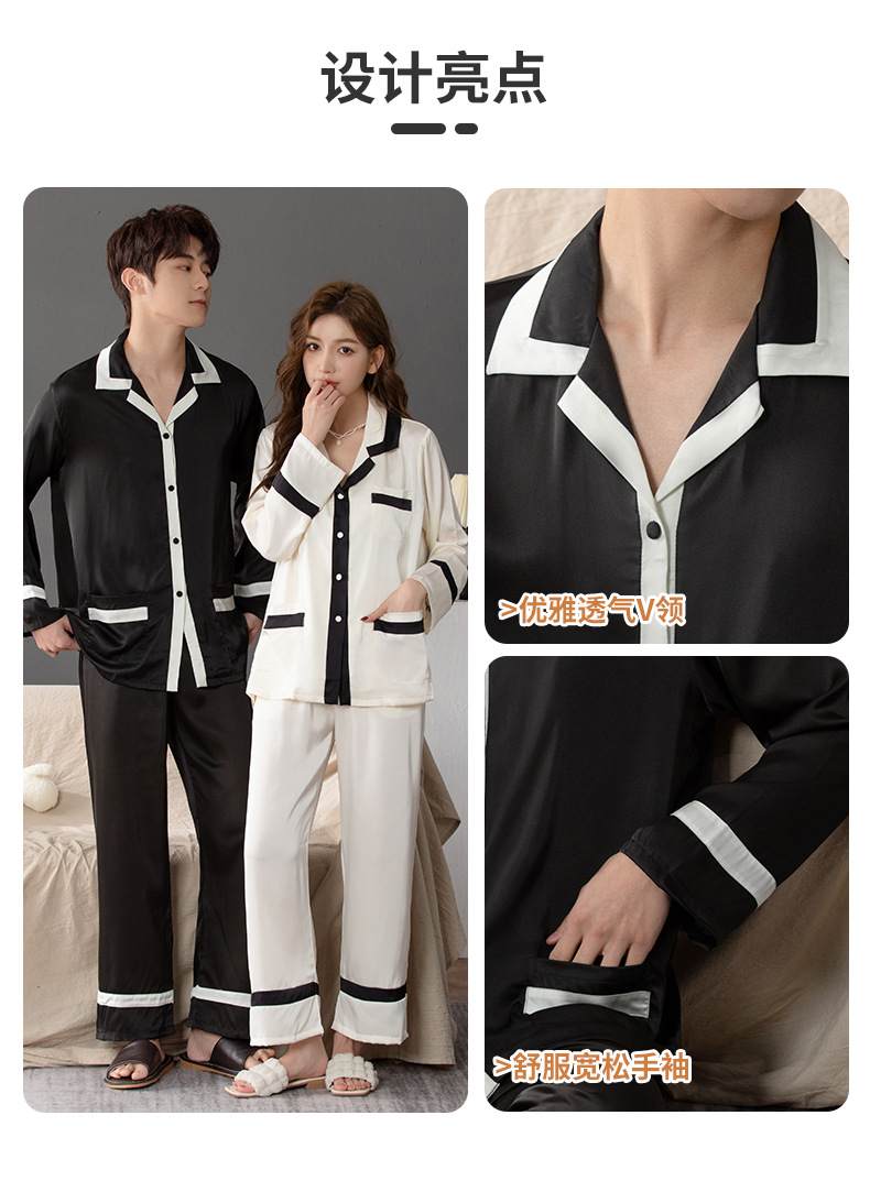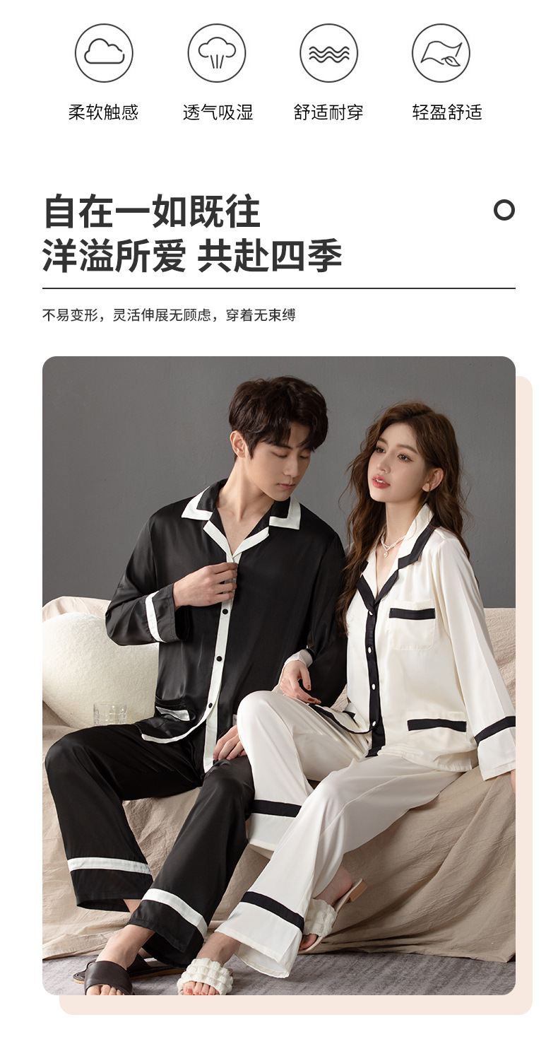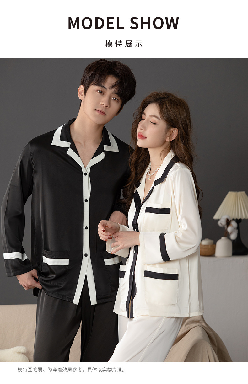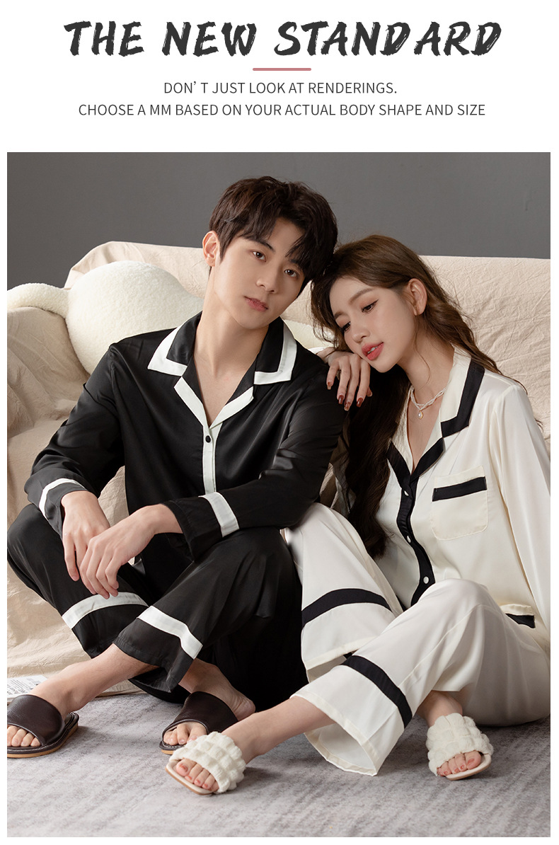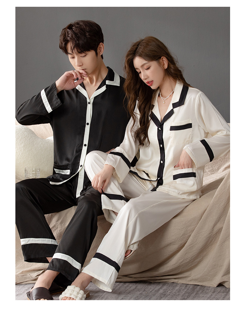 Pijama satinado de hielo para pareja, manga larga, estilo elegante para primavera y otoño