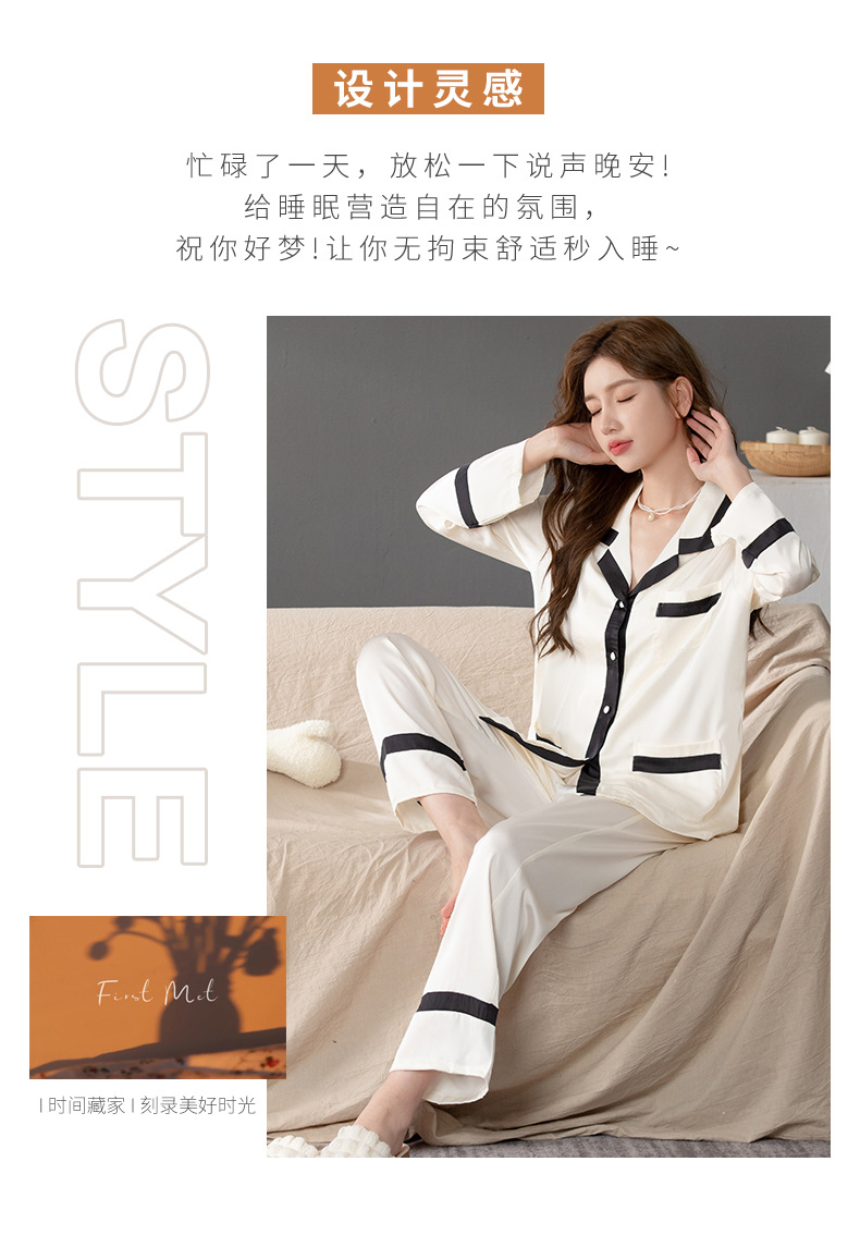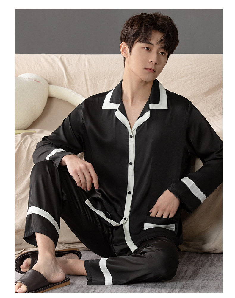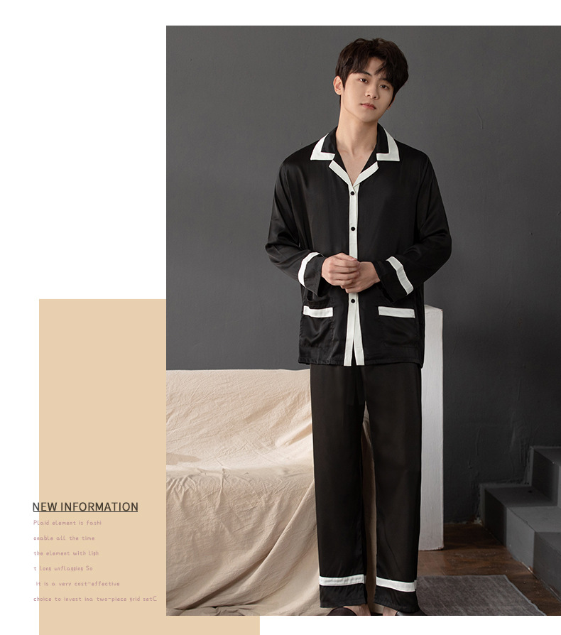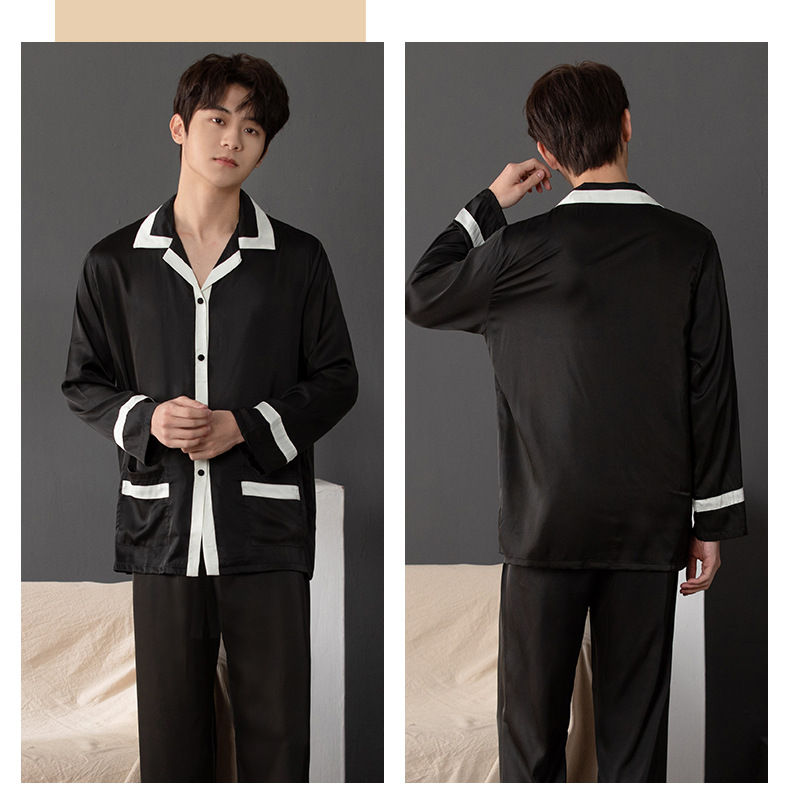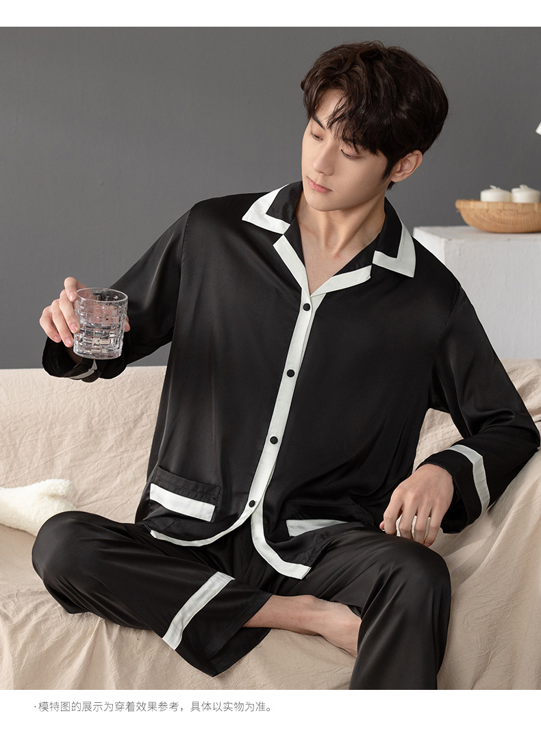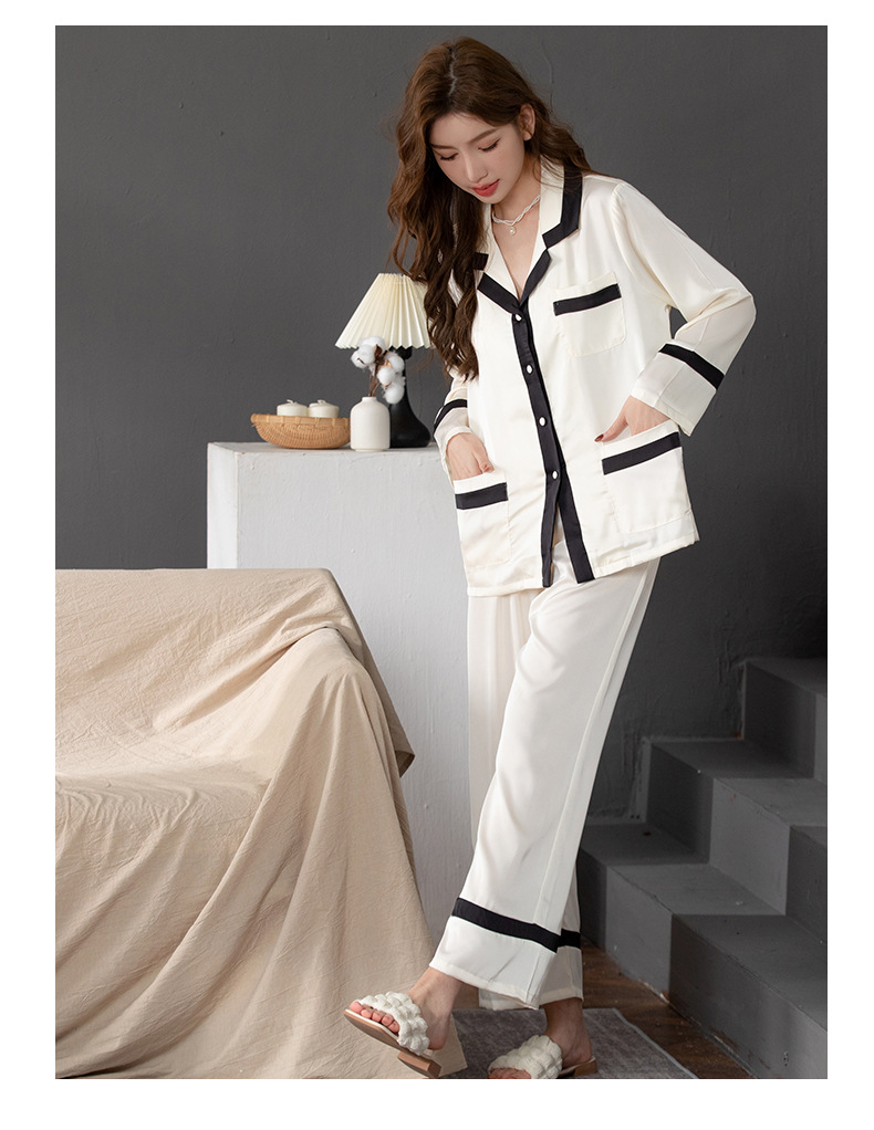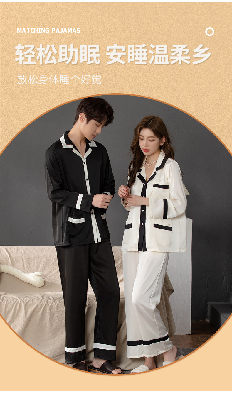 Pijama satinado de hielo para pareja, manga larga, estilo elegante para primavera y otoño