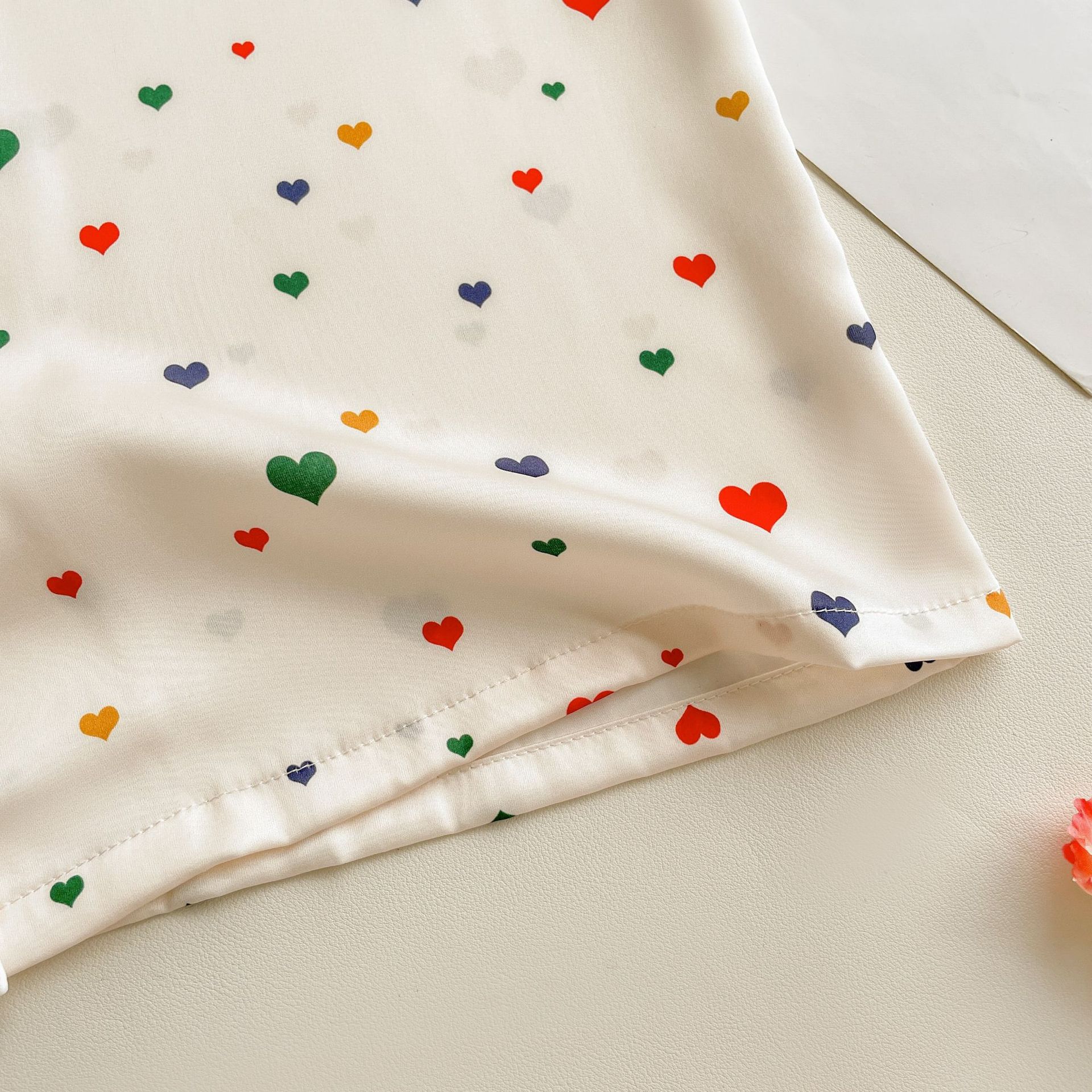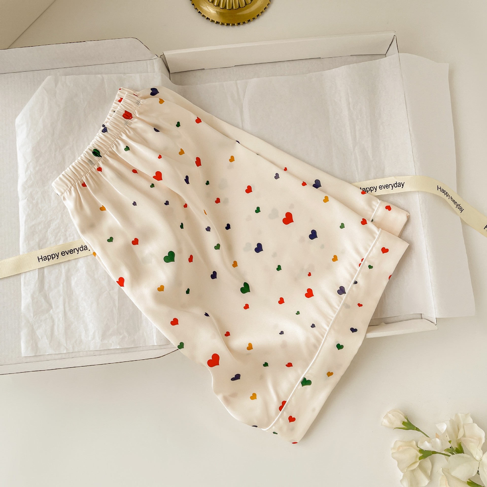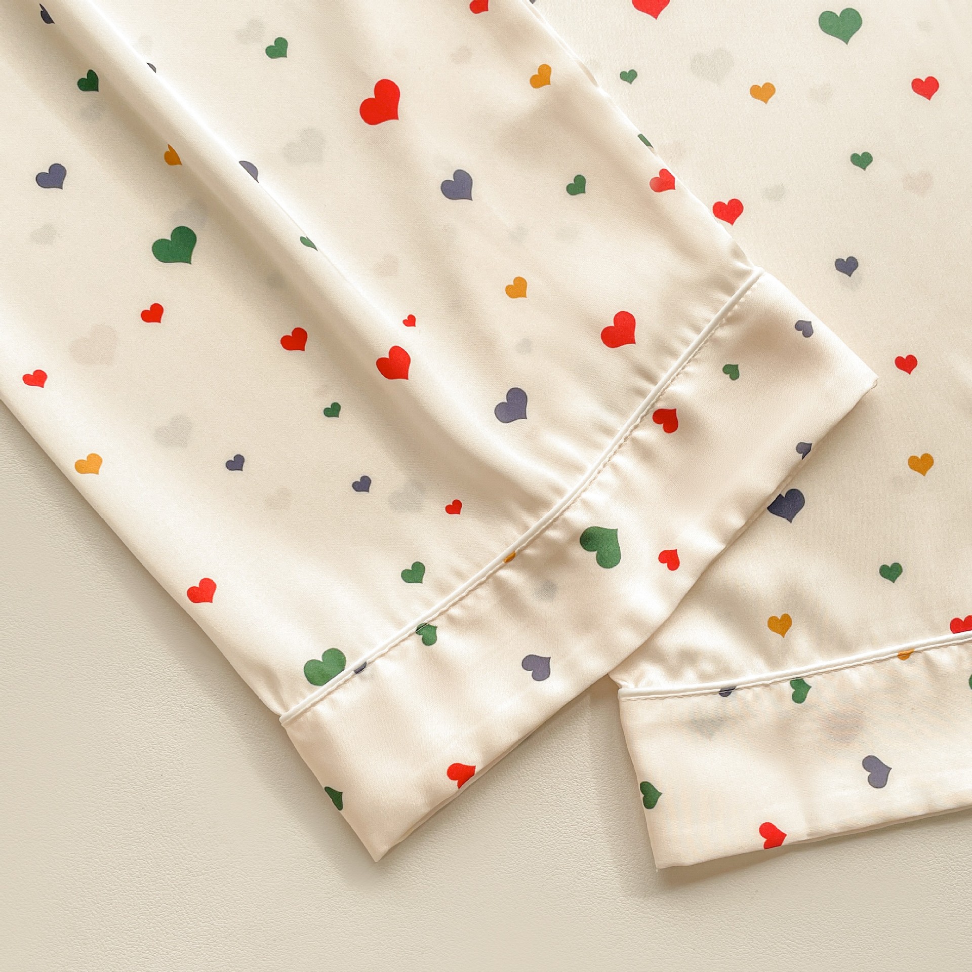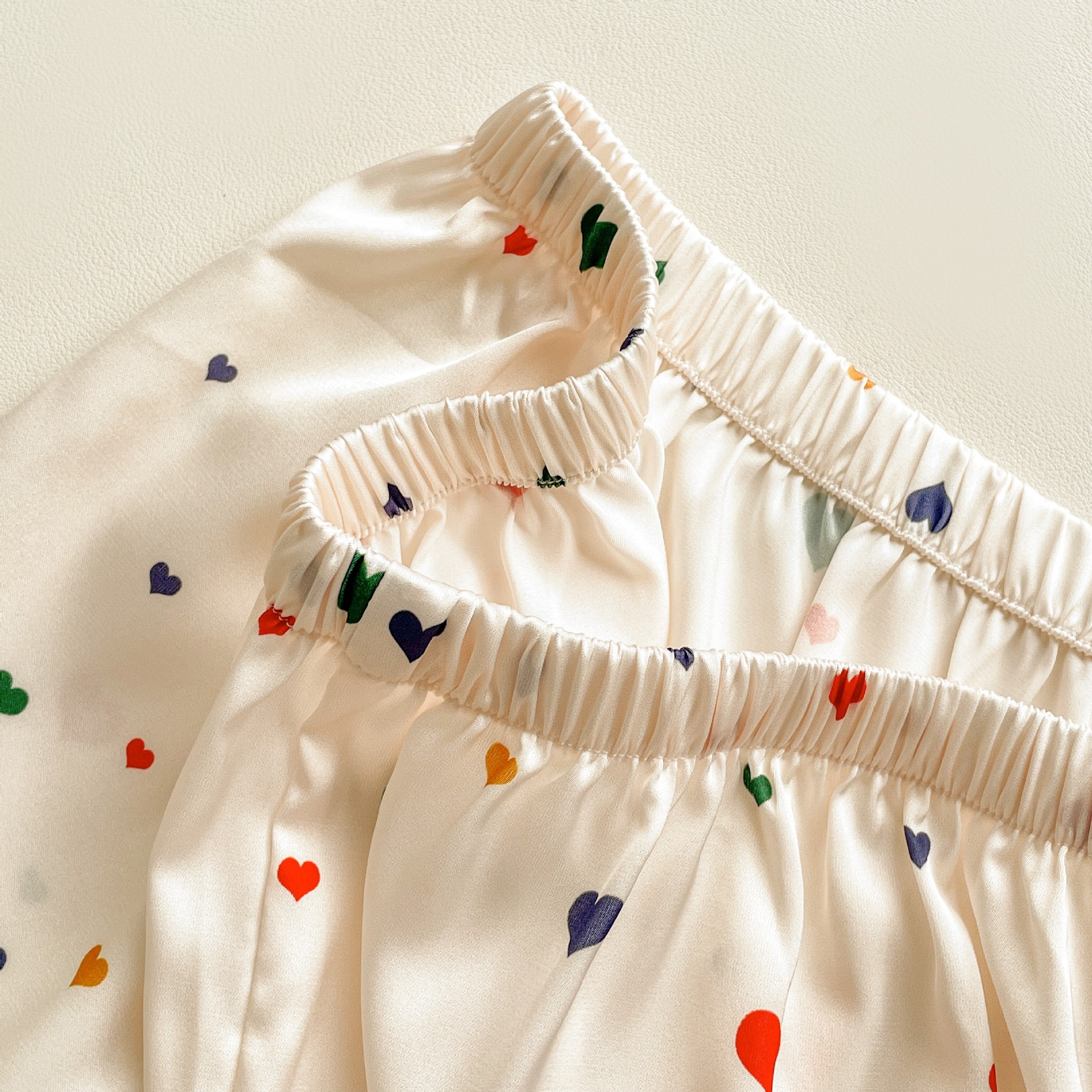 Pijama de seda fría con estampado de corazones, set de 3 piezas, ligero para verano