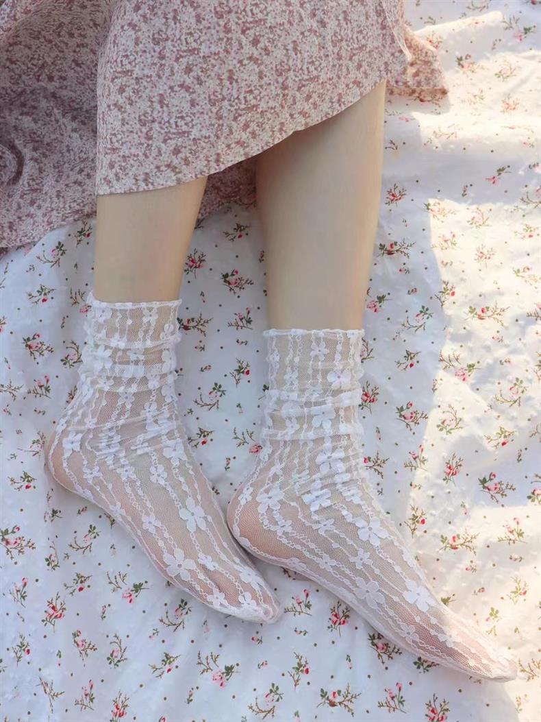 Calcetines de encaje y malla, transpirables, estilo japonés dulce JK