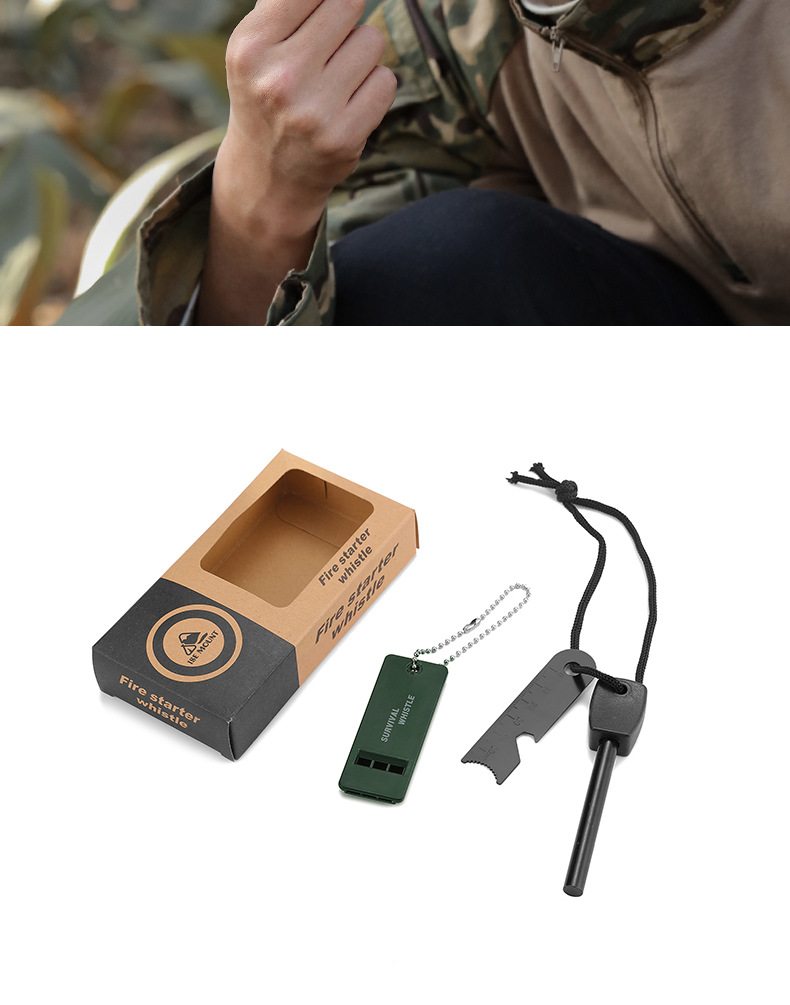 Kit de supervivencia al aire libre T1, caja de herramientas con pedernal, silbato y accesorios multifuncionales