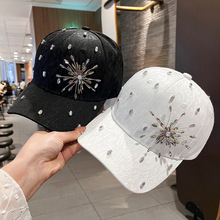 Gorra de béisbol para mujer con pedrería, protección solar, visera rígida, estilo casual de verano.