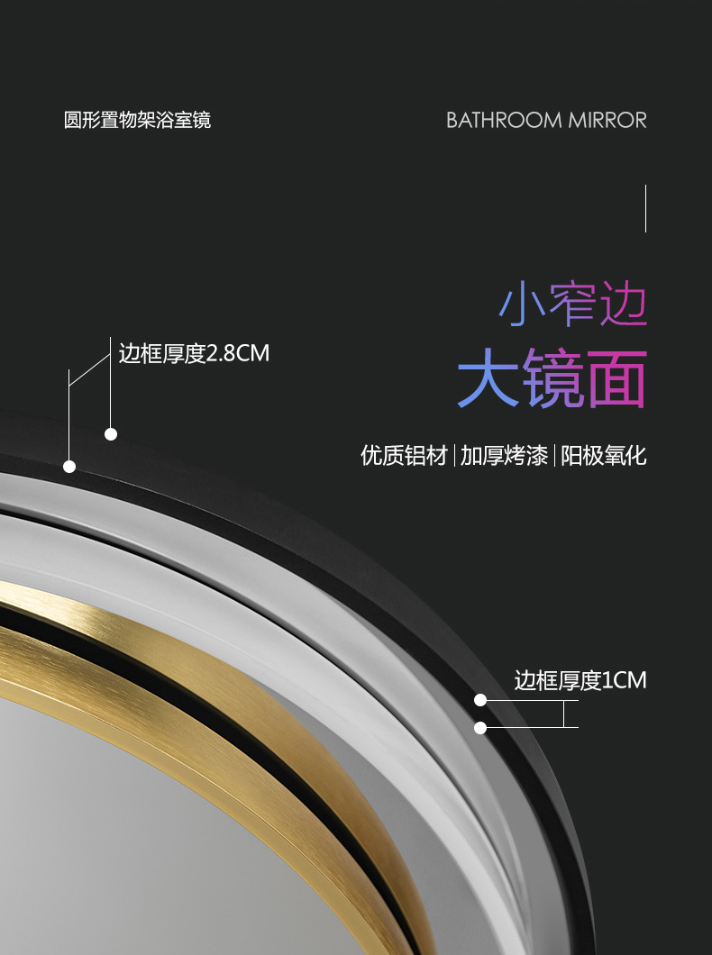 Espejo redondo nórdico sin perforar, montaje de pared para baño o tocador, marco de aleación de aluminio