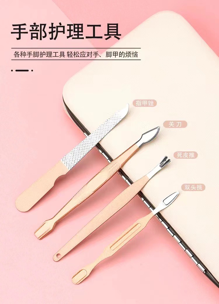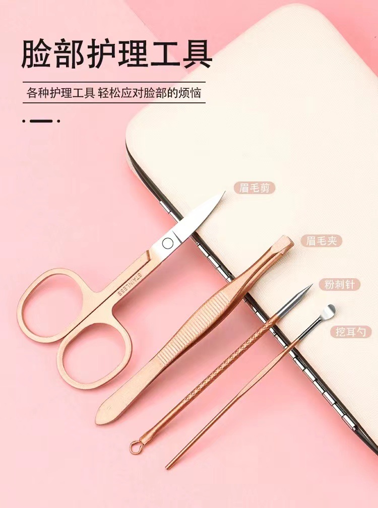 Set de manicura dorado rosa 18 piezas de acero inoxidable, cortaúñas y herramientas completas para cuidado personal