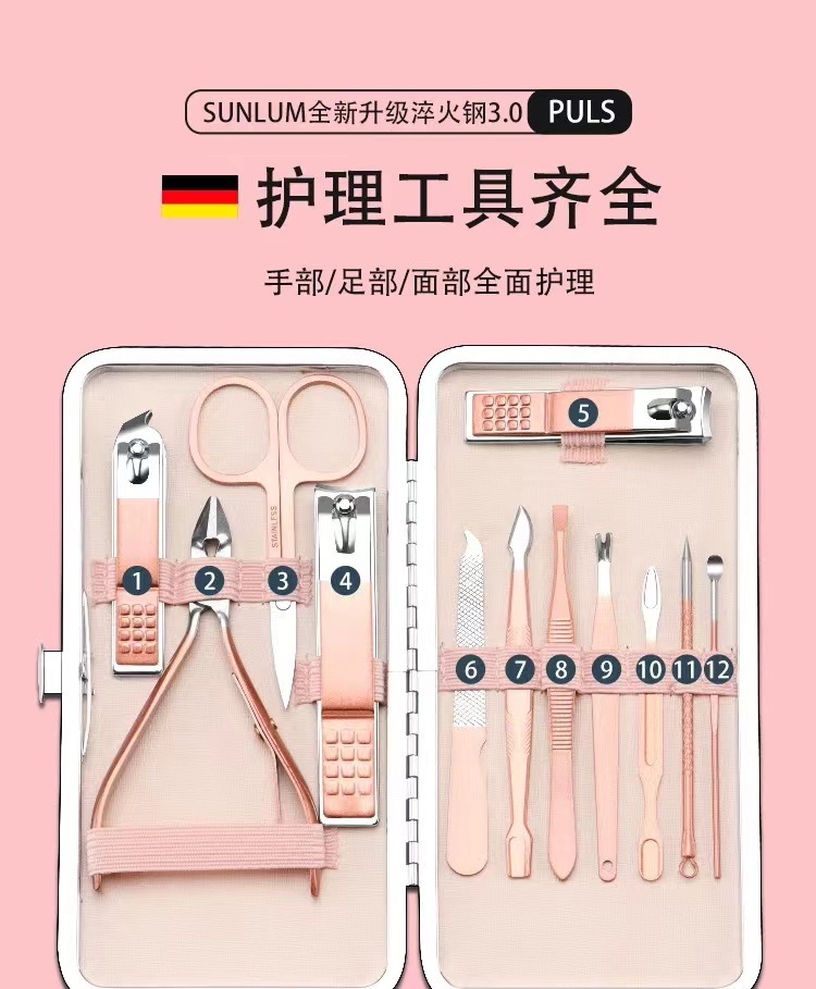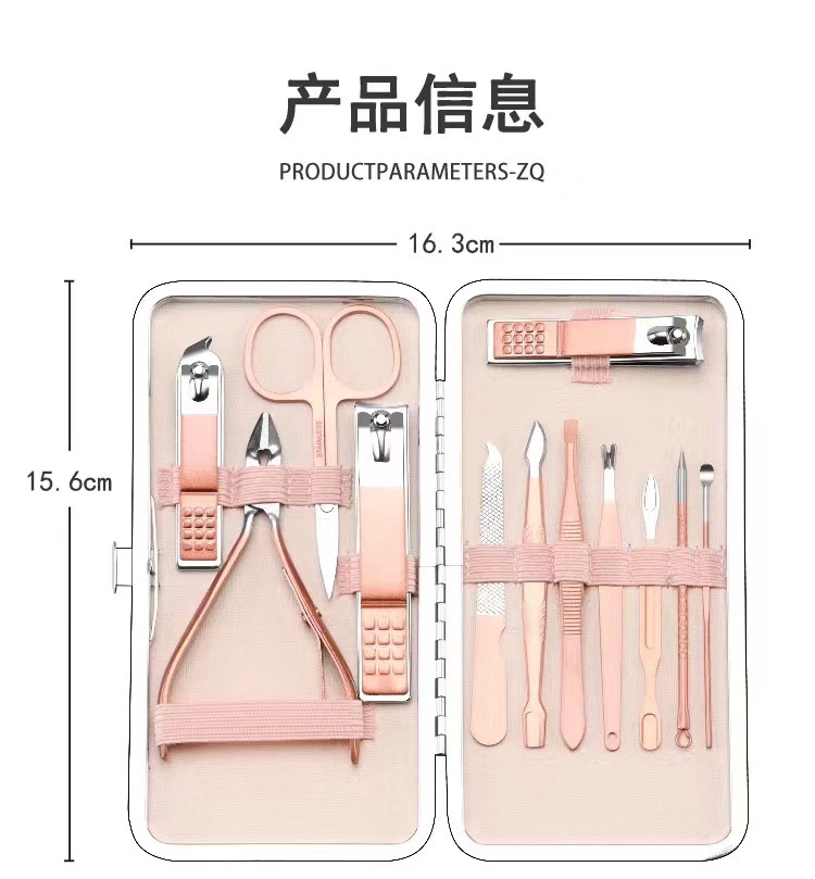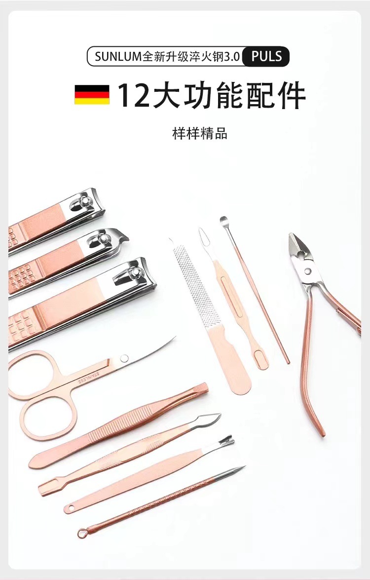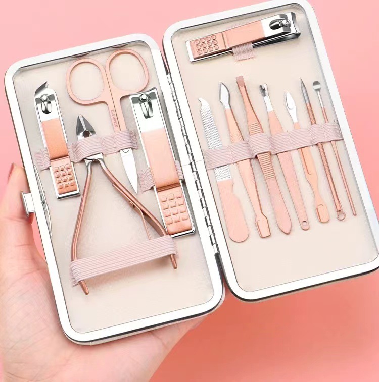 | Número de artículo | Conjunto de 12 piezas de cuidado de manicura de oro rosa |