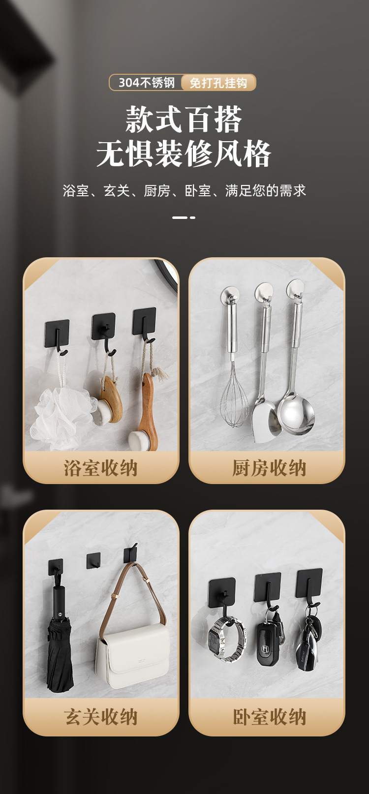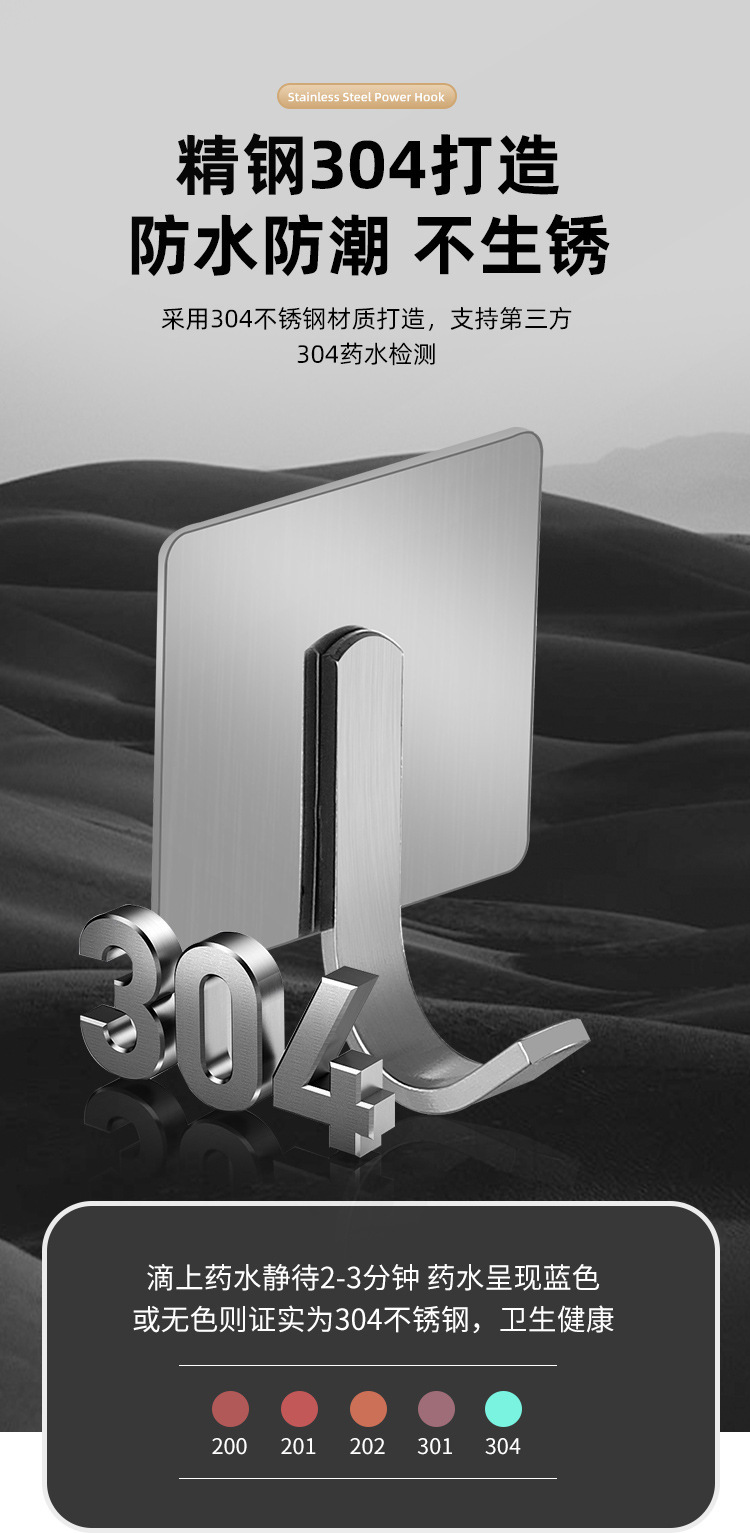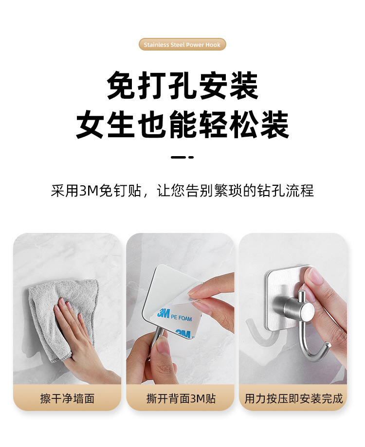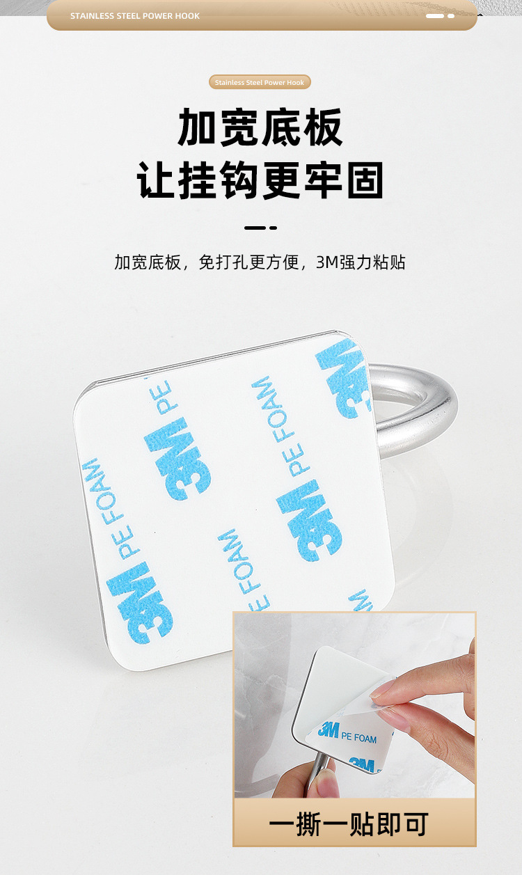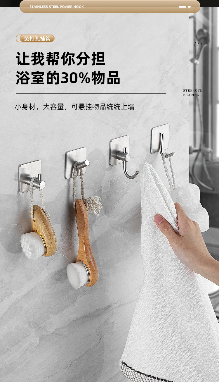 Ganchos adhesivos de acero inoxidable para baño o cocina, sin perforar, resistentes y antideslizantes