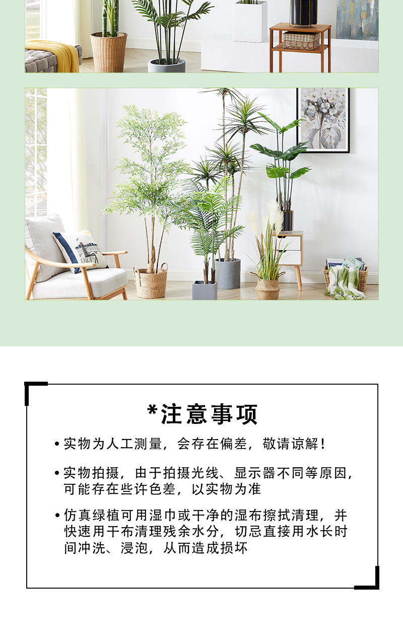 | Colores | Nuevo plátano viajero de hoja ancha y tallo delgado (viene con base negra),Plátano viajero de clase A (con base negra),Sanwei Kui (con base negra),Pu Kui (con base negra),Nuevo árbol de hortensias rosa (viene con base negra),Jazmín de seda blanco (viene con base negra),Hojas de monstera (con base negra),Lily Bamboo (con base negra),Beauty Iron (con base negra),Helecho hericium (con base negra),Jacaranda (con base negra),Canna (con base negra),Planta de bambú en maceta (con base negra),Hoja de reloj colgante (con base negra),Rojo terciopelo (con base negra),Verde terciopelo (con base negra),Qin Ye Rong (con base negra),Palmera (con base negra),Olivo (con base negra),Hierro de borde rojo (con base negra),Sisal (con base negra),Madera brasileña (con base negra),Nuevo árbol de tortugas (viene con base negra),Monstera (con base negra),Madera de pavo real (con base negra),Dragon Blood Iron (con base negra),Taro de bambú Feiyu (con base negra),EMI Fortune Tree (con base negra),Dracaena (con base negra),Hojas de taro salvaje (con base negra),Árbol de pan (con base negra),Árbol de caucho de forma especial (con base negra),Xin Ye Rong (con base negra),Hierba de coche de viento (con base negra),Árbol de coco (con base negra),Elegante Black King Kong (con base negra),Ficus de hoja verde elegante (con base negra),Banyan elegante (con base negra),Nuevo bambú Nantian (con base negra),Ficus de piedra de agua (viene con base negra),Hoja de tortuga con bordes blancos (viene con base negra),Nuevo gradiente de nandina con forma especial (viene con base negra) |