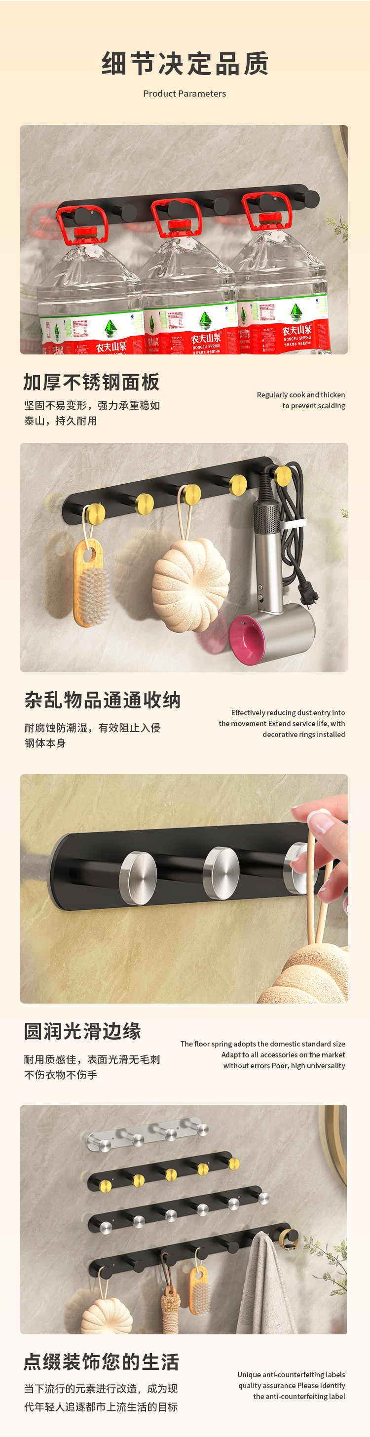 | Colores | Gancho plateado [sin perforación],Gancho de ropa grande negro [sin perforación],Gancho de ropa grande dorado [sin perforación],Gancho plateado para ropa grande [estilo perforado],Gancho de ropa grande negro [estilo perforado],Gancho dorado para ropa grande [estilo perforado],Cilindro de acero inoxidable [cepillado],Cilindro de acero inoxidable [negro],Cilindro de acero inoxidable [dorado],Gancho de lengua de pato plateado [sin perforación],Gancho de lengua de pato negro [sin perforación],Gorra plateada con un solo gancho [sin perforación],Hombro negro con un solo gancho [sin perforaciones],Gorra negra y plateada con un solo gancho [sin perforaciones],Gorra de oro negro con un solo gancho [sin perforación],[Silver 3 ganchos] con cinta de doble cara,[Silver 4 ganchos] con cinta de doble cara,[Silver 5 ganchos] con cinta de doble cara,[Silver 6 ganchos] con cinta de doble cara,[7 ganchos plateados] con cinta de doble cara,[Silver 8 ganchos] con cinta de doble cara,[Negro 3 ganchos] con cinta de doble cara,[Negro 4 ganchos] con cinta de doble cara,[Negro 5 ganchos] con cinta de doble cara,[Negro 6 ganchos] con cinta de doble cara,[7 ganchos negros] con cinta de doble cara,[Negro 8 ganchos] con cinta de doble cara |
