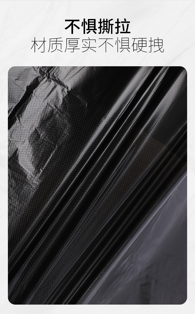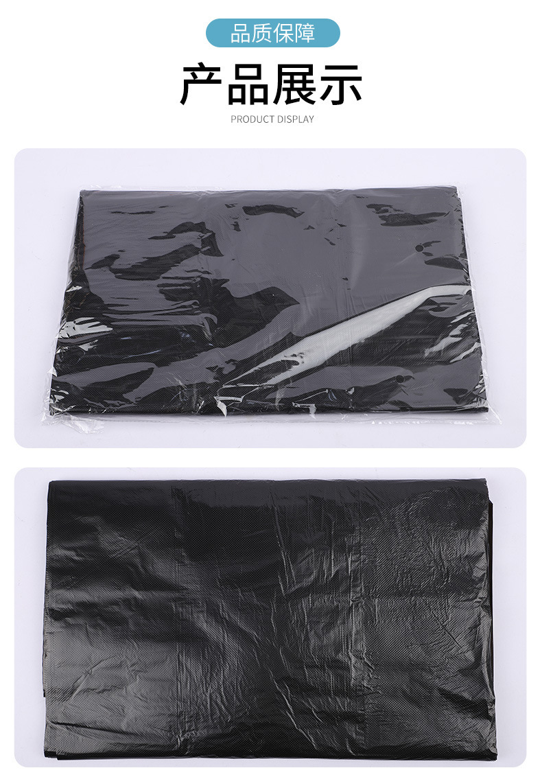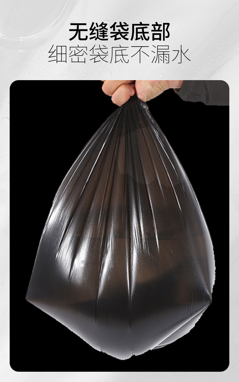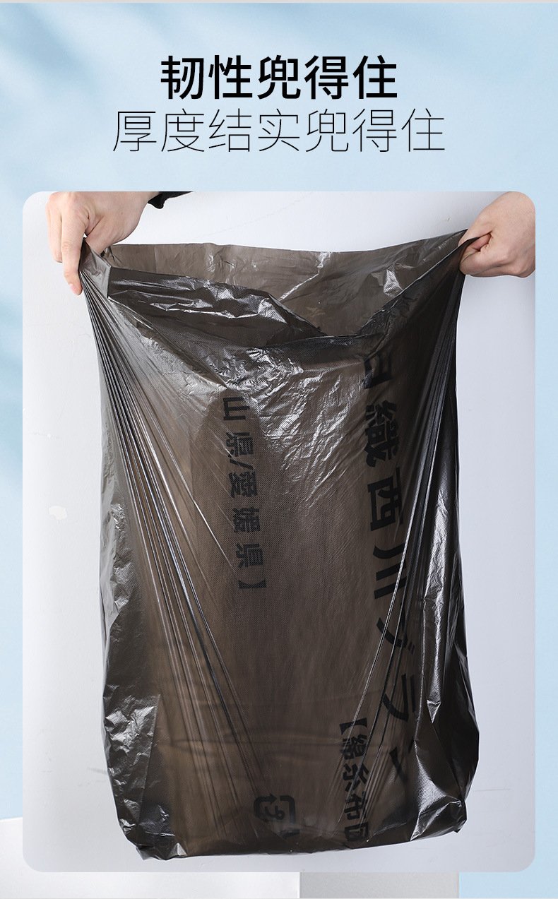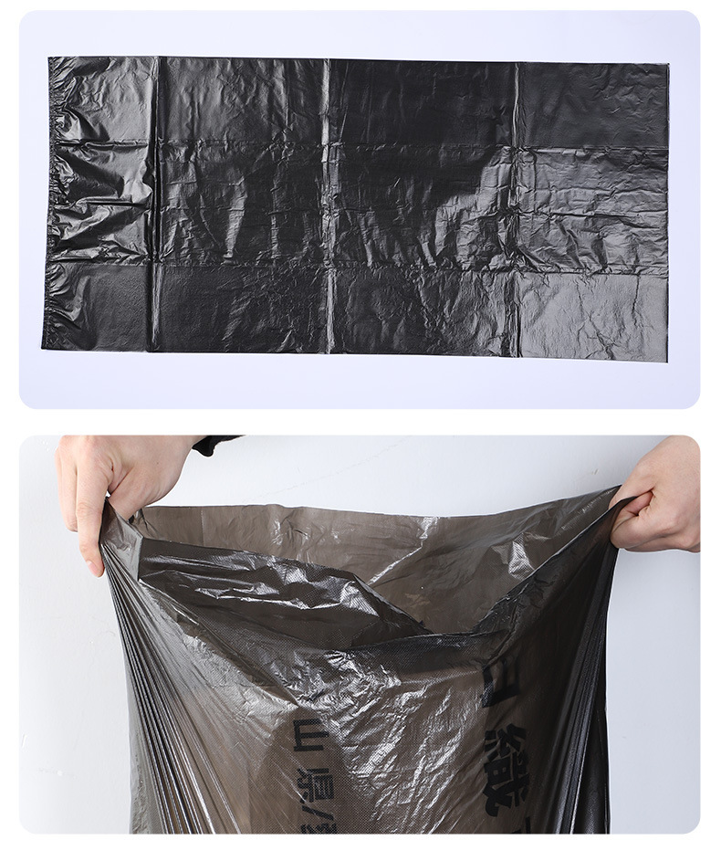 Bolsa de basura negra de gran capacidad, engrosada y resistente, ideal para hoteles, hospitales o propiedades comerciales.