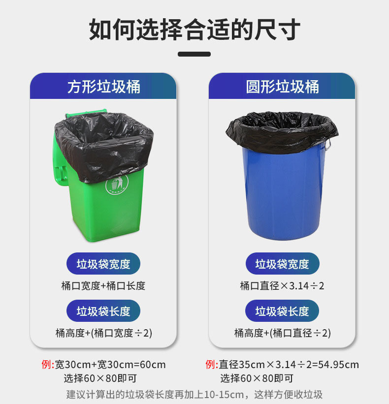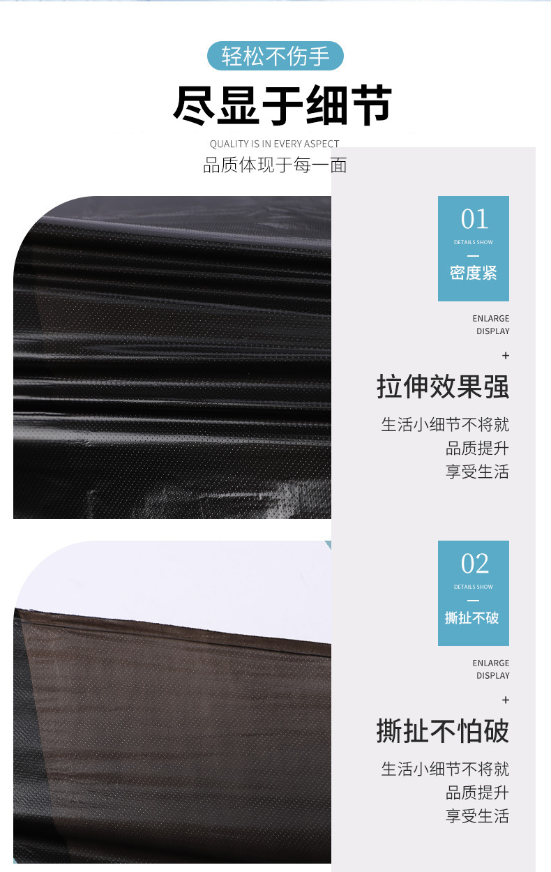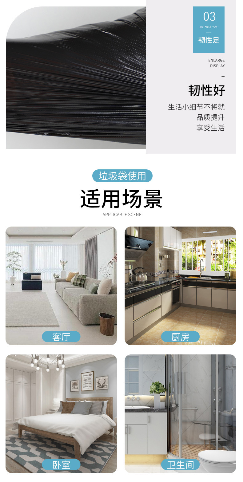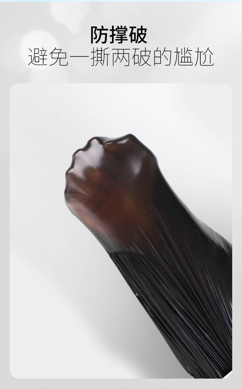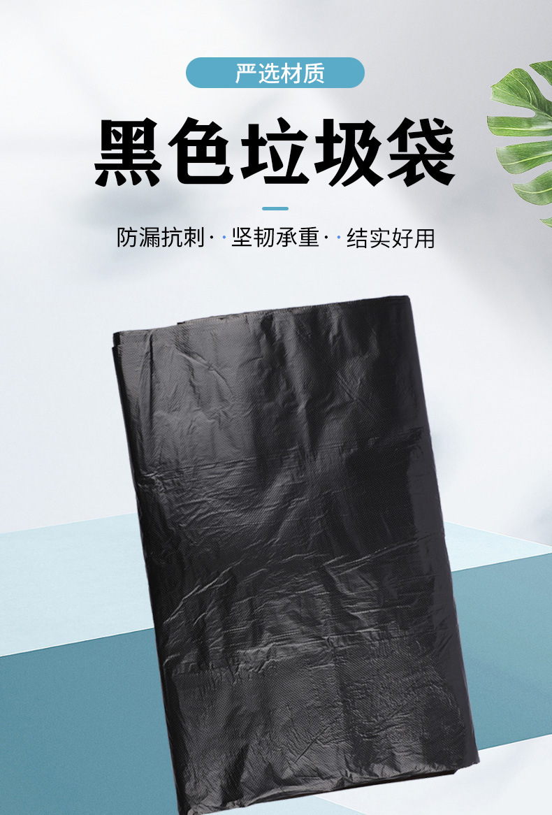 Bolsa de basura negra de gran capacidad, engrosada y resistente, ideal para hoteles, hospitales o propiedades comerciales.