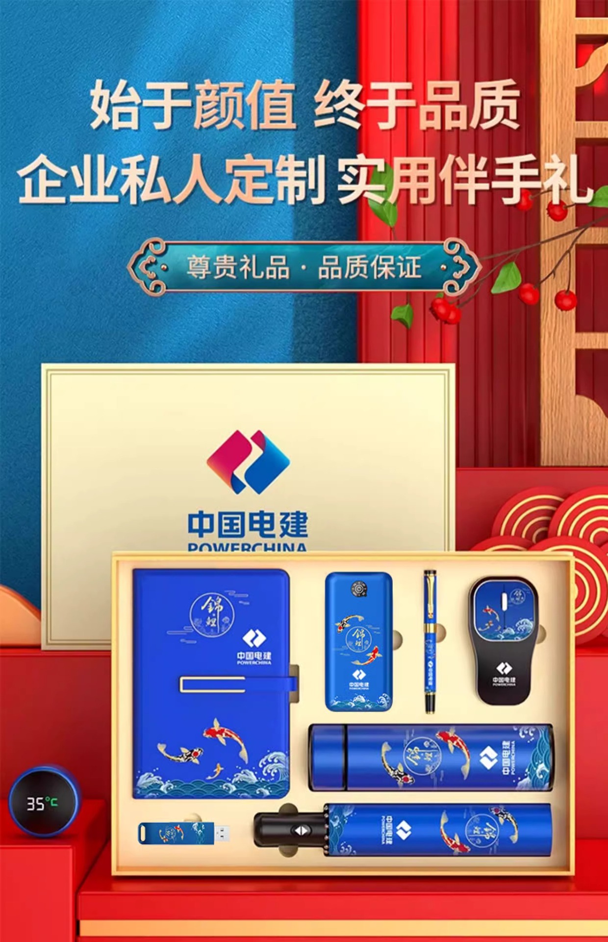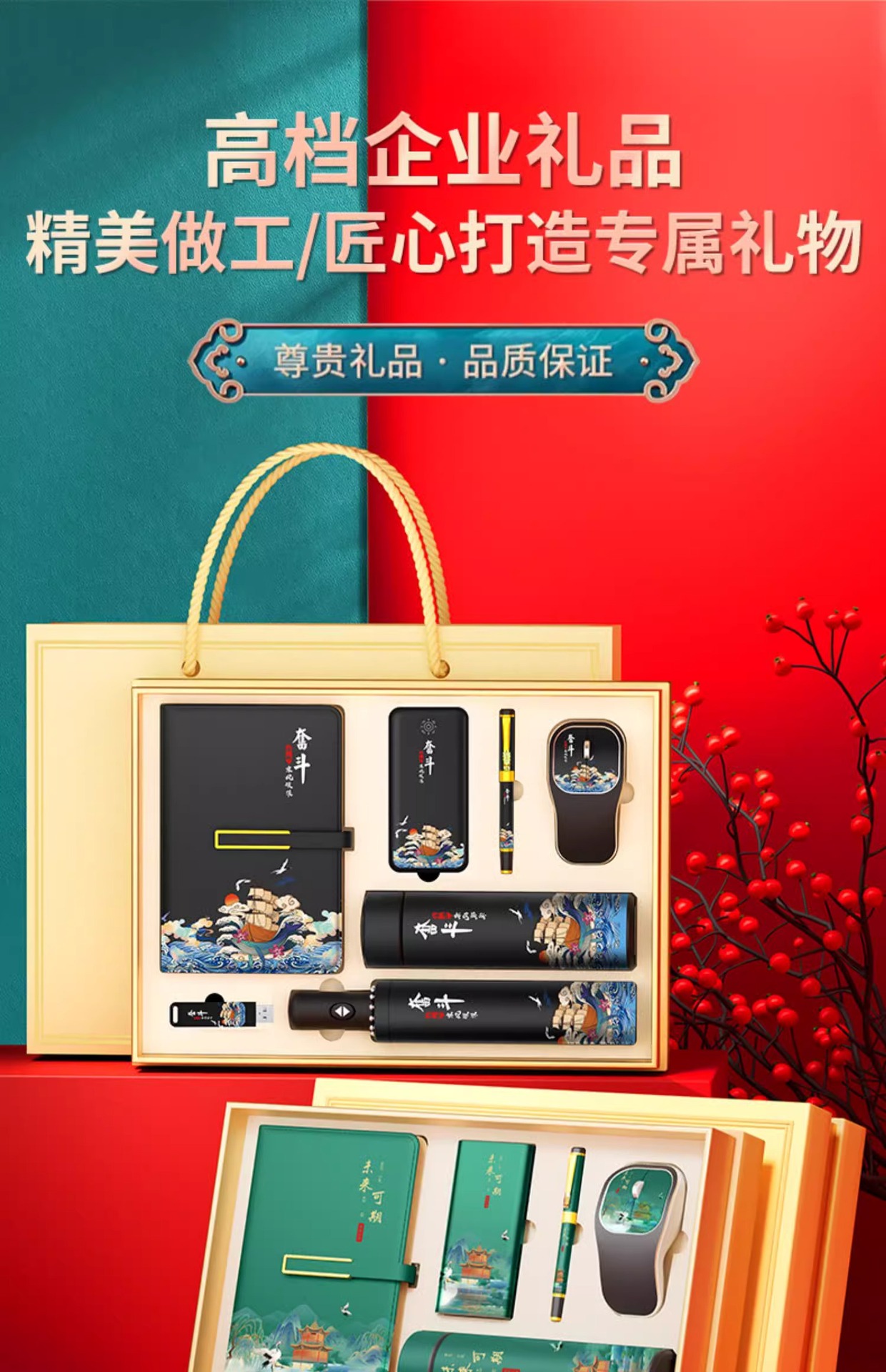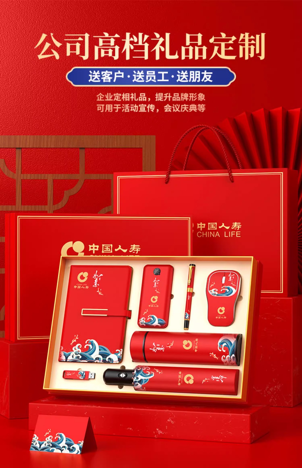 Juego de caja de regalo de Año Nuevo del Dragón empresa personalizada obsequio corporativo con paraguas