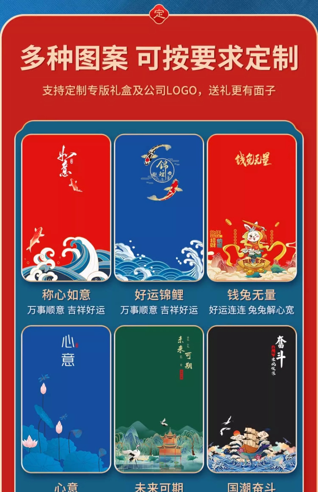 | Fiestas aplicables | Universal,Navidad,Día de San Valentín,Festival de Primavera,Día del padre,Día de la Madre,Día del Maestro,Día de Año Nuevo,Tanabata,Halloween,Pascua,Día nacional,Día del Niño,Día de la Mujer,Otros |