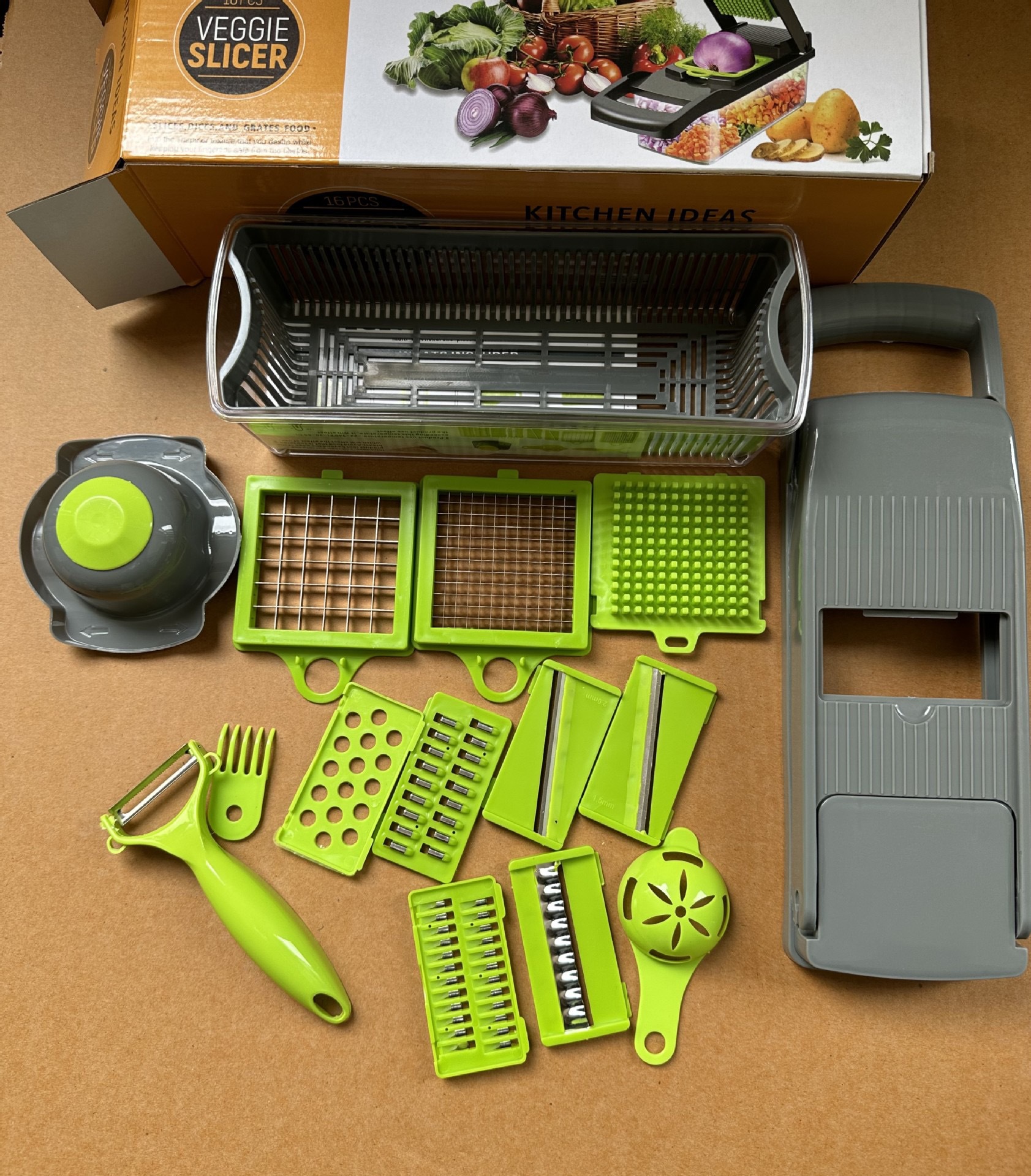 Cortador de verduras multifuncional 16 en 1, rebanador, picador y ayudante de cocina versátil