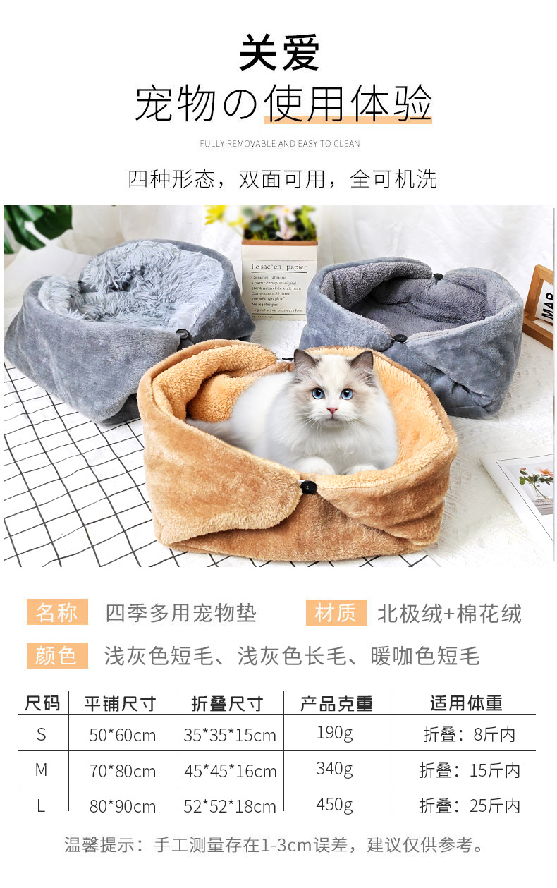 Cama Plegable Acolchada para Gatos/Perros - Caliente, para Invierno o Viajes en Coche