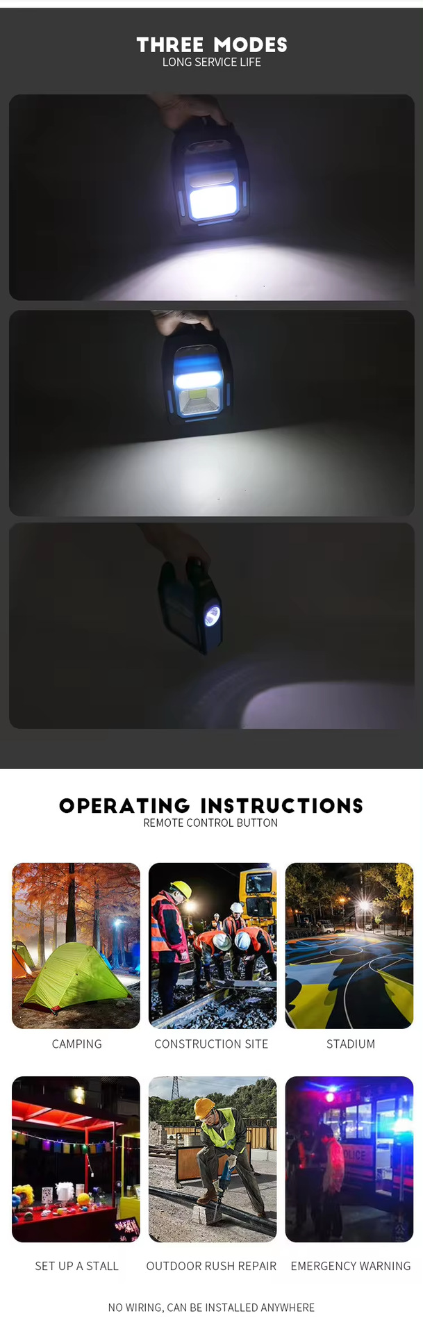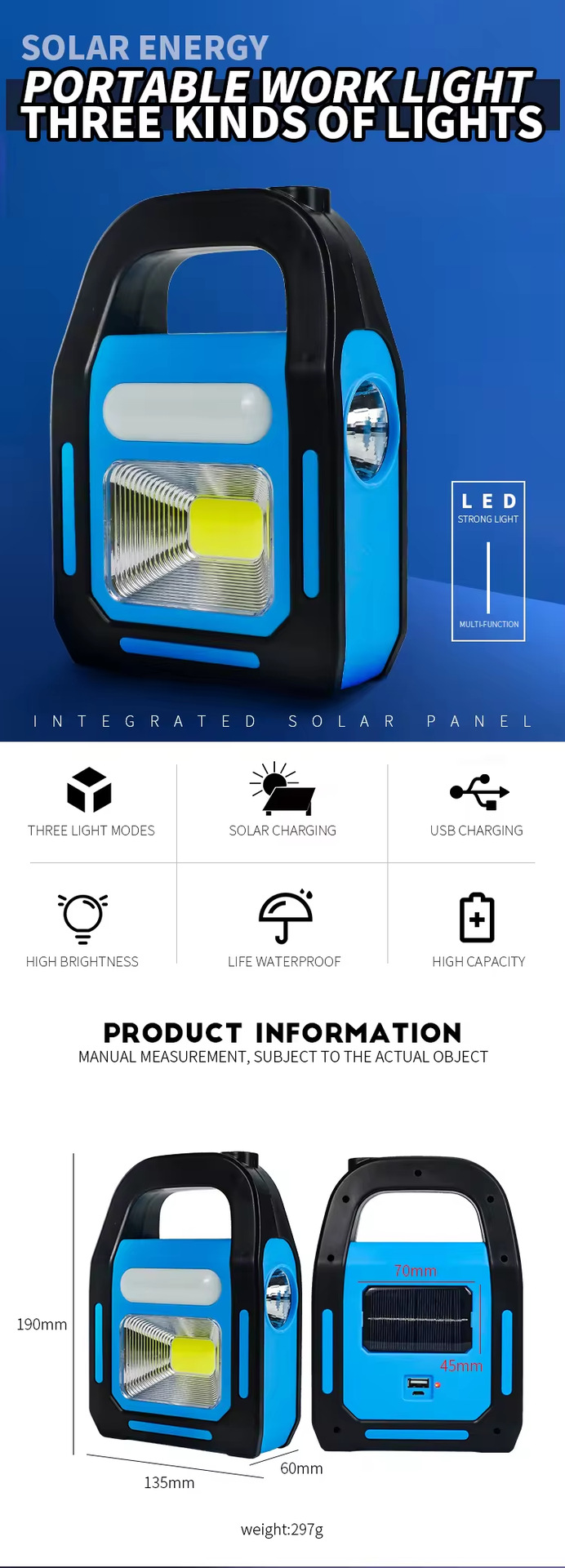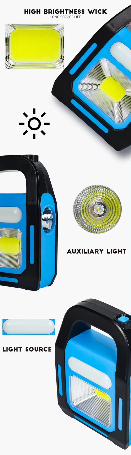 Lámpara solar COB multifuncional, linterna portátil con carga USB para uso doméstico y al aire libre