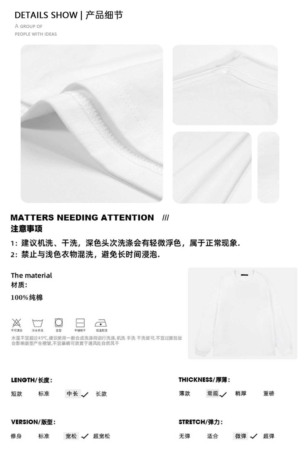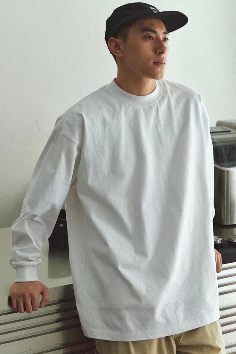 Camiseta básica blanca de manga larga 260 g, algodón grueso para hombre, estilo suelto americano