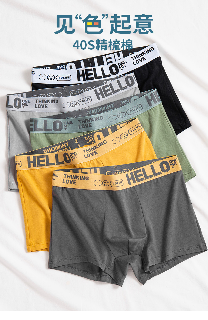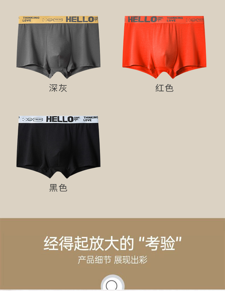 Ropa interior de los hombres Algodón puro HOLA cinturón grafeno entrepierna antibacteriano cómodo transpirable personalidad moda boxeadores color sólido