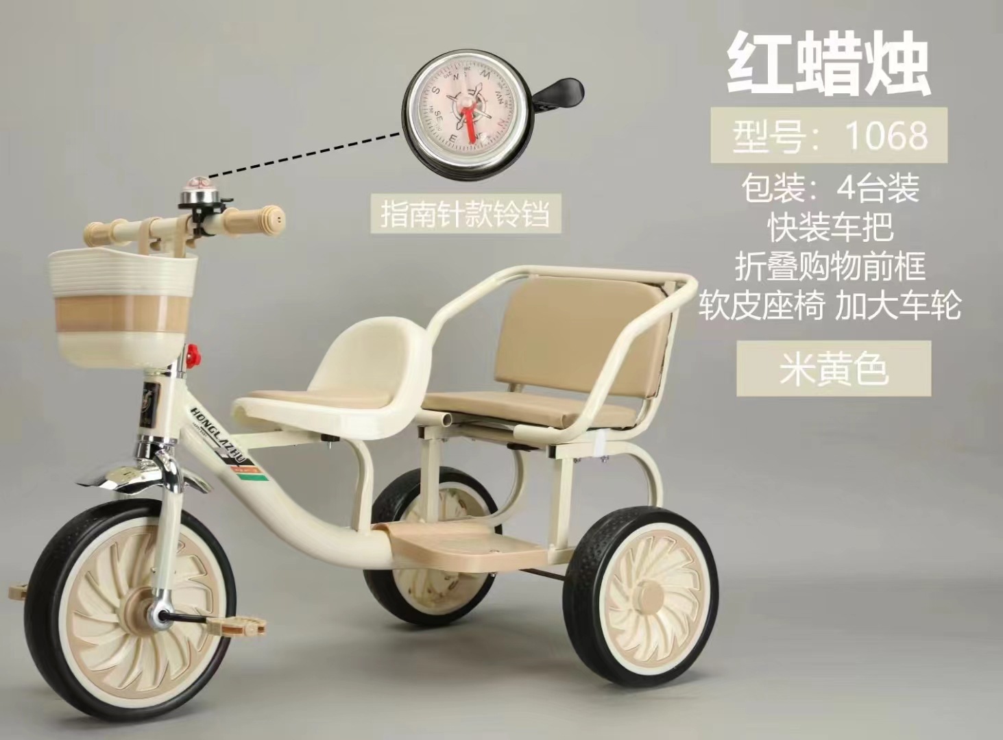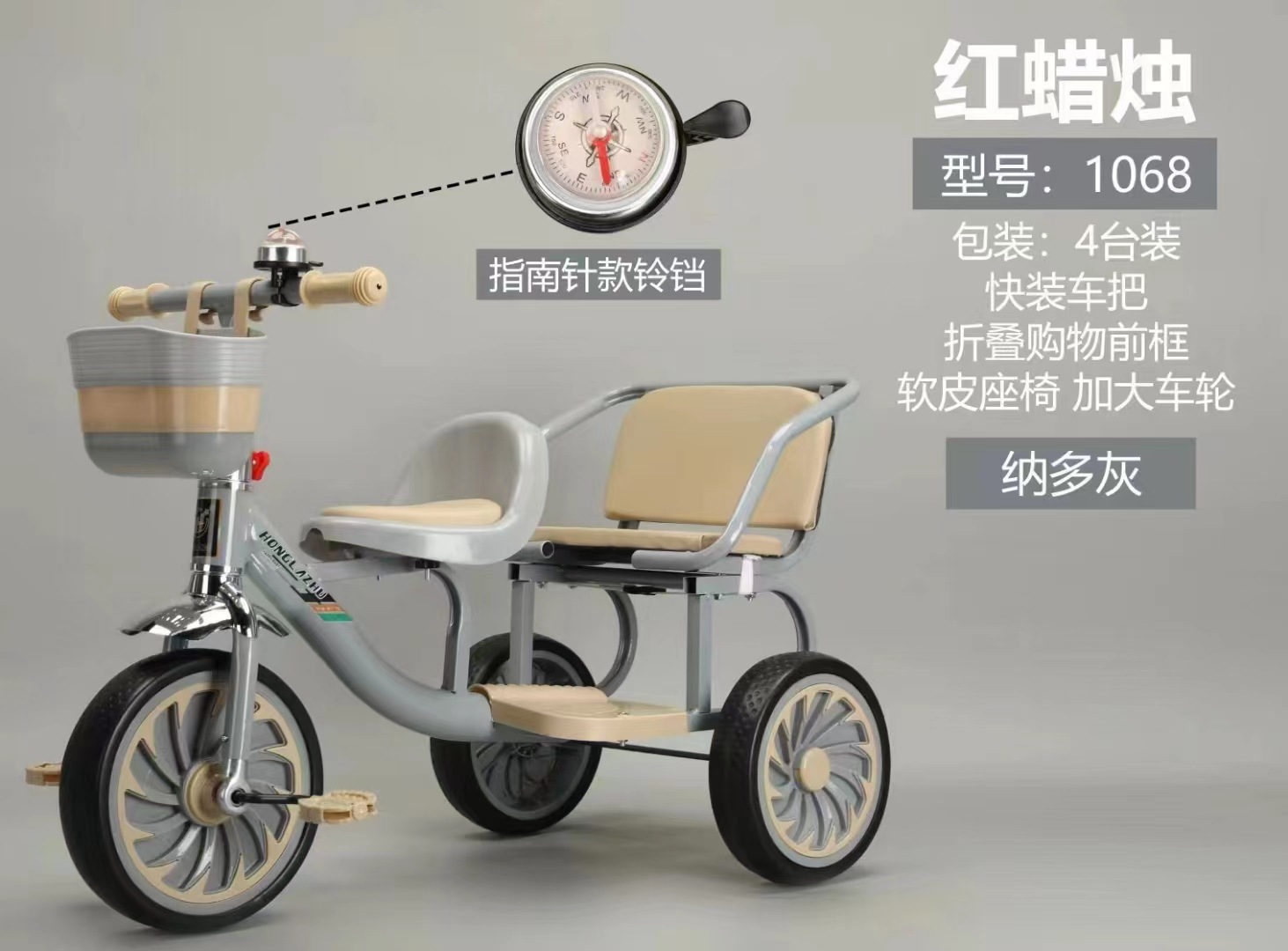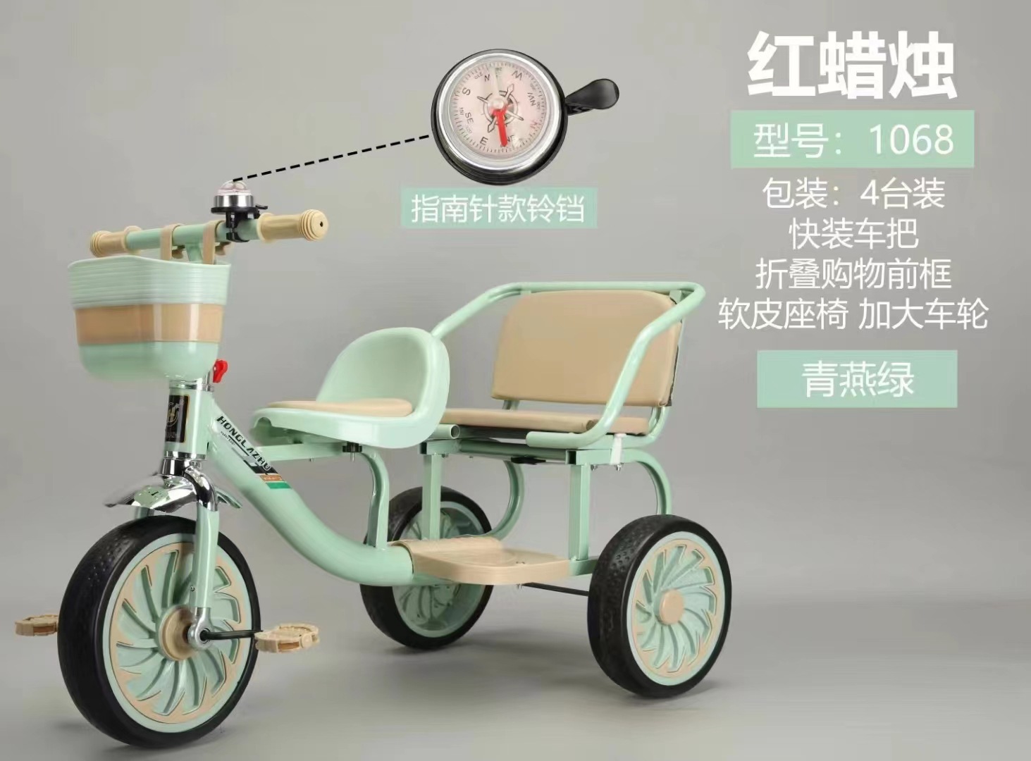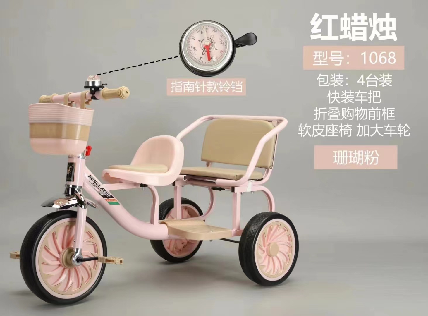 Triciclo infantil doble con pedales y empuje, juguete educativo para niños de 1 a 3 años