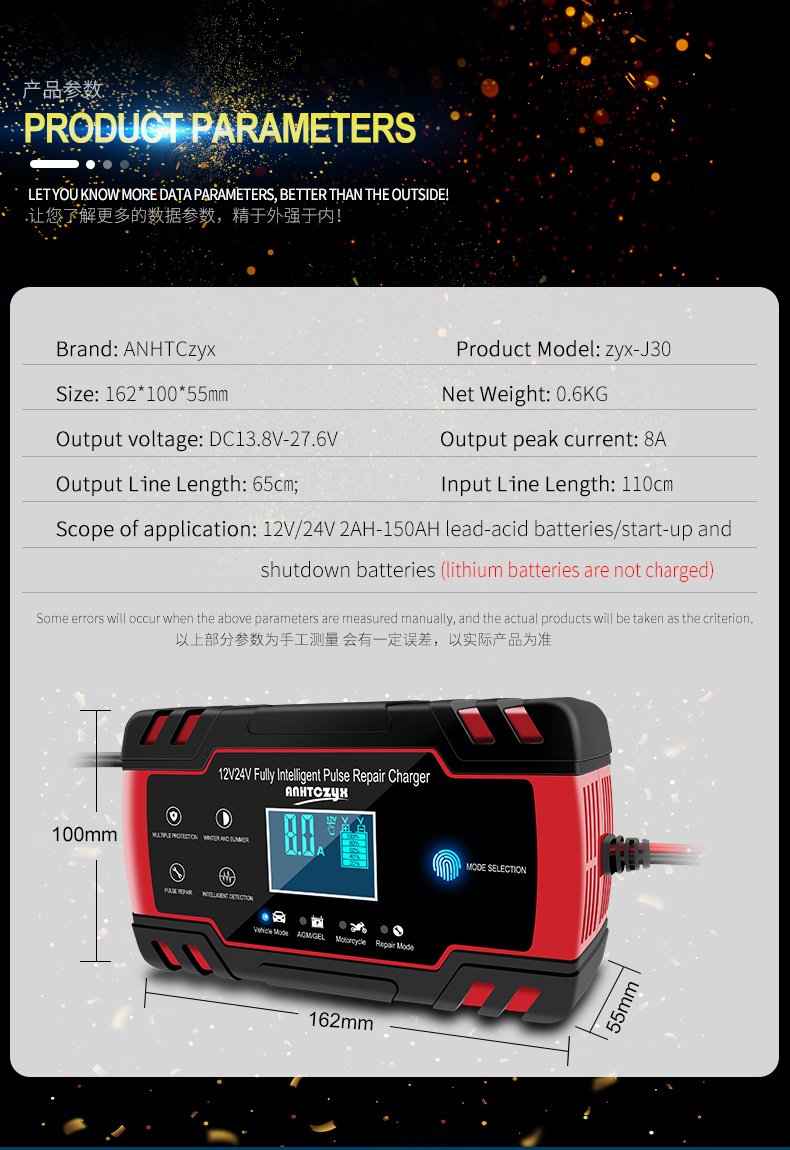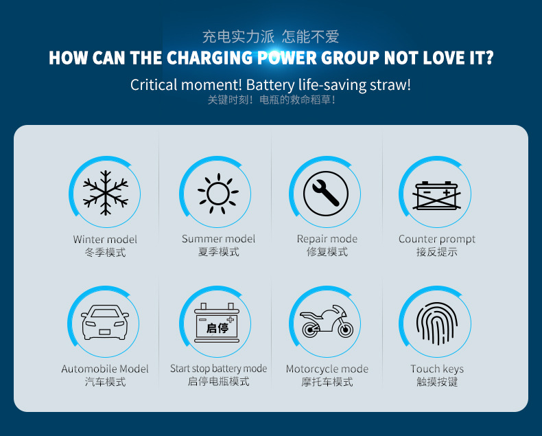 Cargador de batería para coche y motocicleta 12V/24V, reparación automática, compatible con baterías AGM, estándar europeo y británico