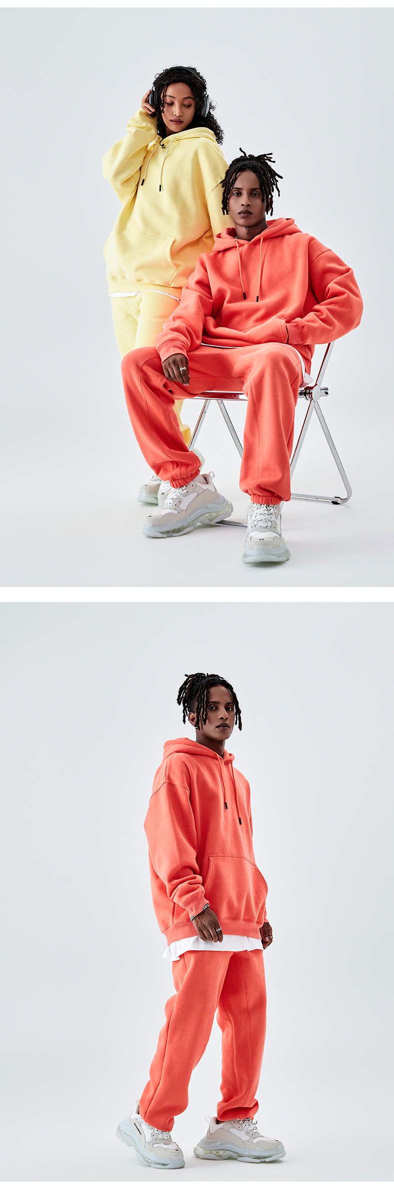Conjunto deportivo unisex, sudadera con capucha y pantalón, forro polar grueso 350g, moda europea y americana