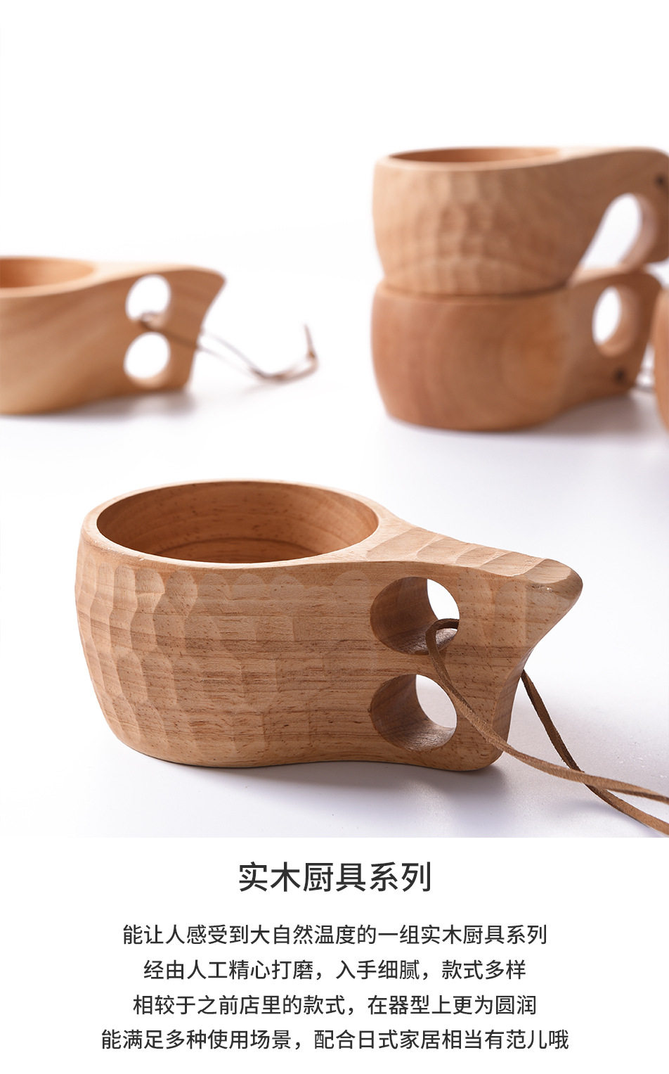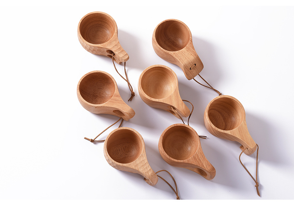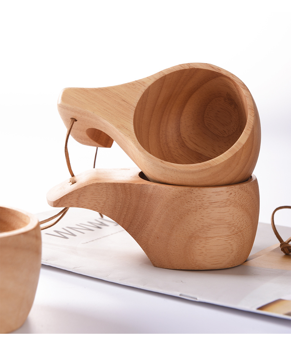 Taza de madera de caucho taza portátil creativa taza de café de madera conveniente Finlandia taza con mango doble agujero taza imprimible logotipo