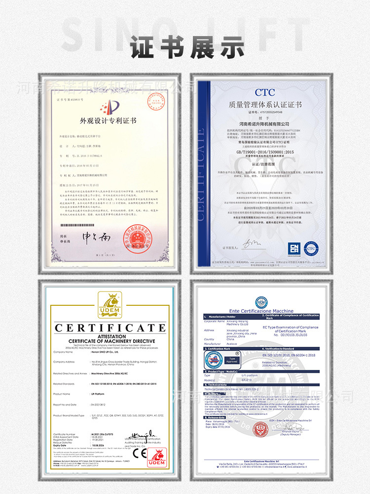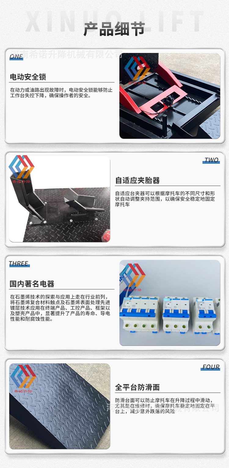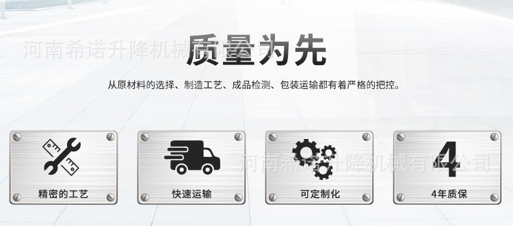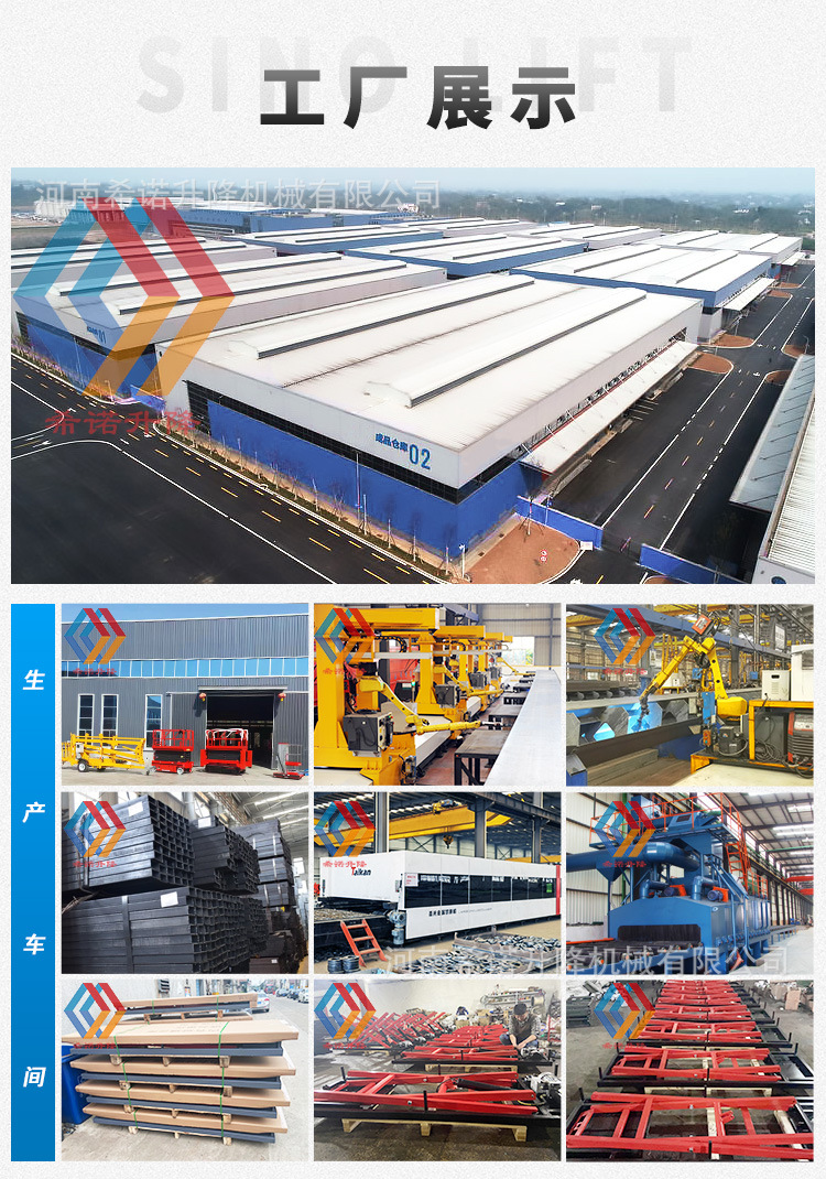 | Modelo | Manual - 250kg - 2000 * 500mm, neumático - 250kg - 1800 * 600mm, neumático - 400kg - 2000 * 600mm (sin marco inferior), neumático - 400kg - 2000 * 600mm, neumático - 400kg - 2000 * 800mm, eléctrico - 300kg - 2000 * 600mm, eléctrico - 600kg - 2200 * 800mm, eléctrico - 1 tonelada - 2200 * 800mm |