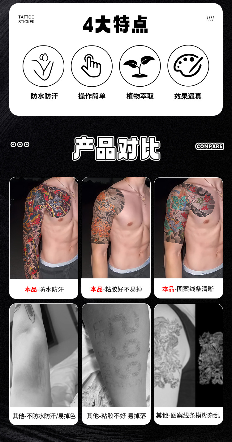 Pegatinas de tatuaje de brazo completo, diseño floral tradicional chino, impermeables y resistentes al sudor, fabricante directo