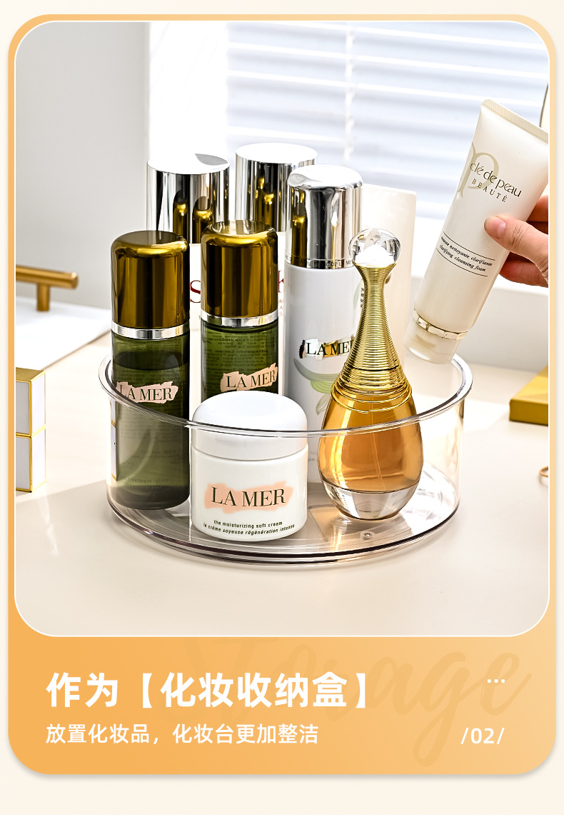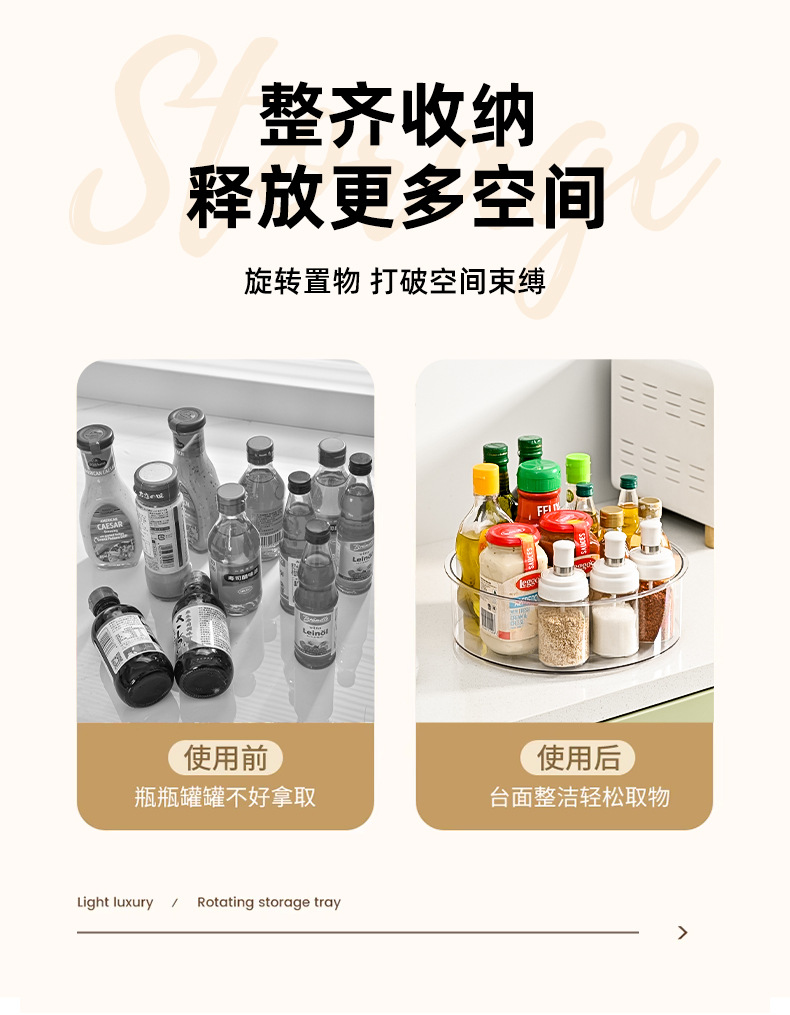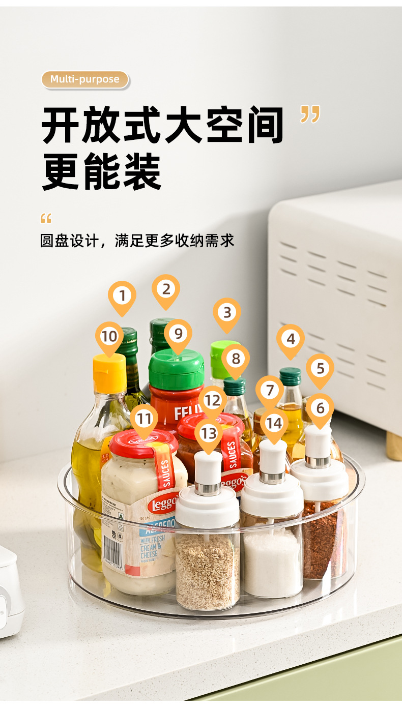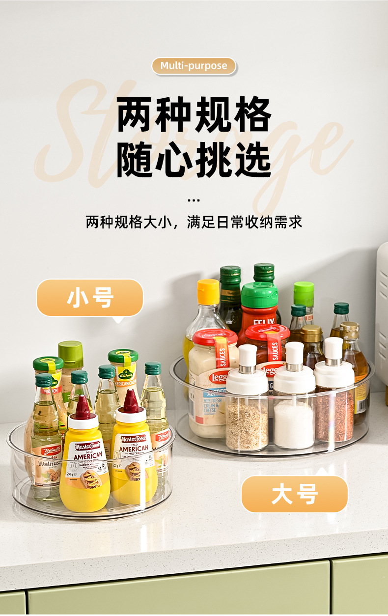 Estante de cocina doméstico multifuncional, transparente PET, giratorio 360°, para condimentos, frutas o escritorio.