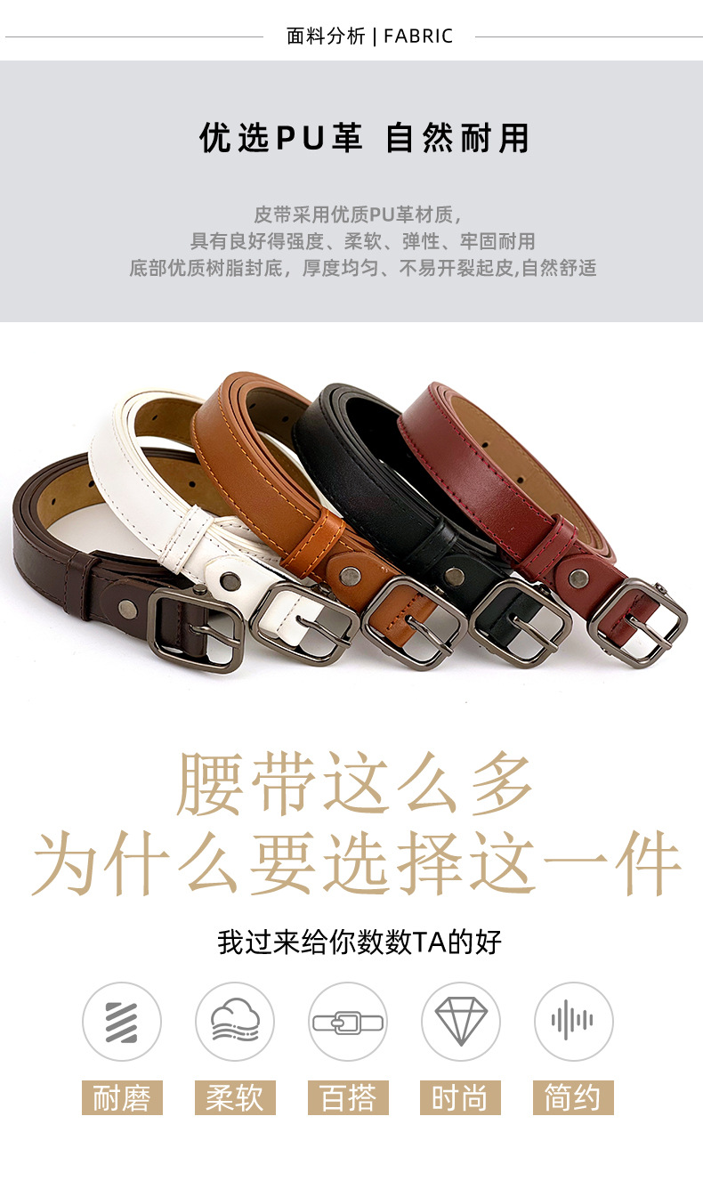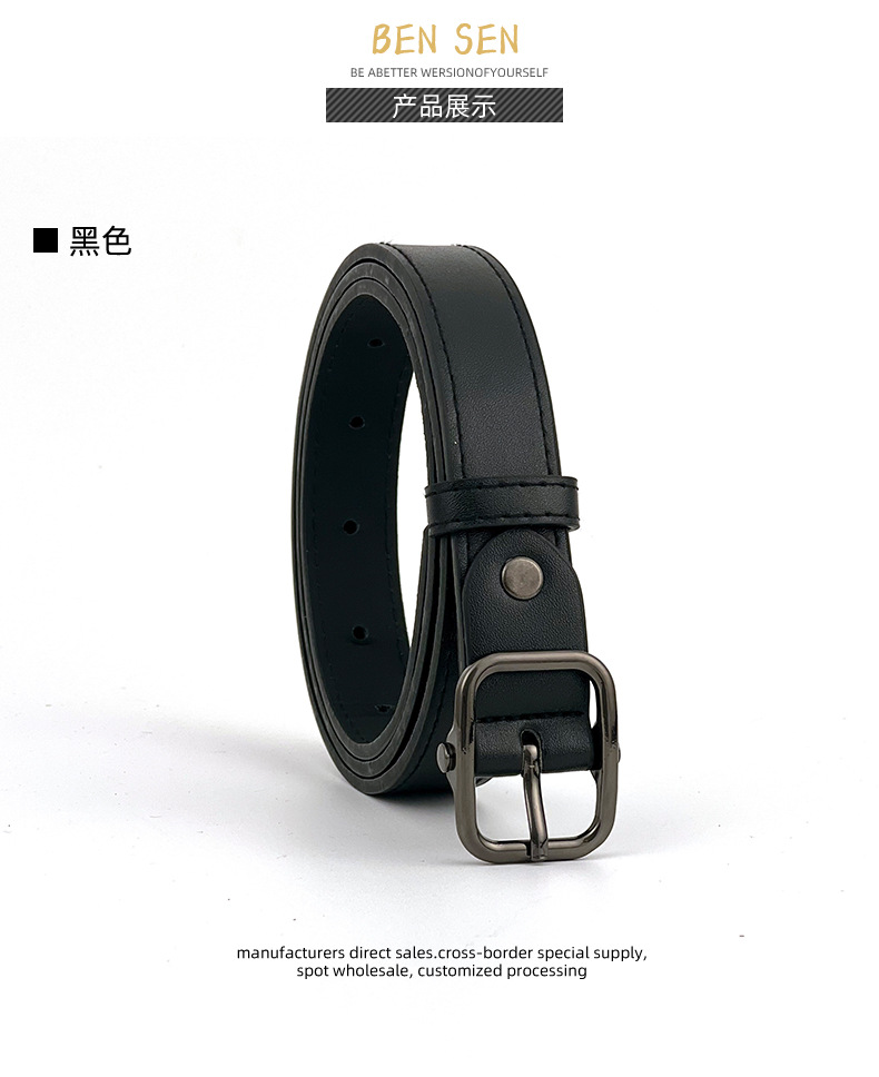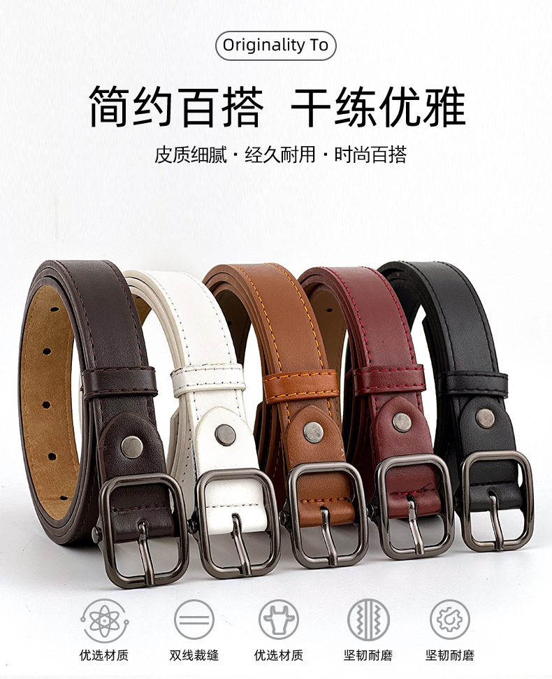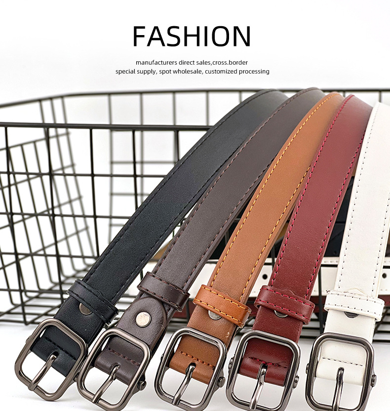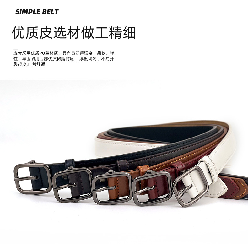 Venta directa de fábrica cinturón de mujer nueva moda simple con decoración de grupo hebilla cuadrada jeans negro pu cinturón al por mayor