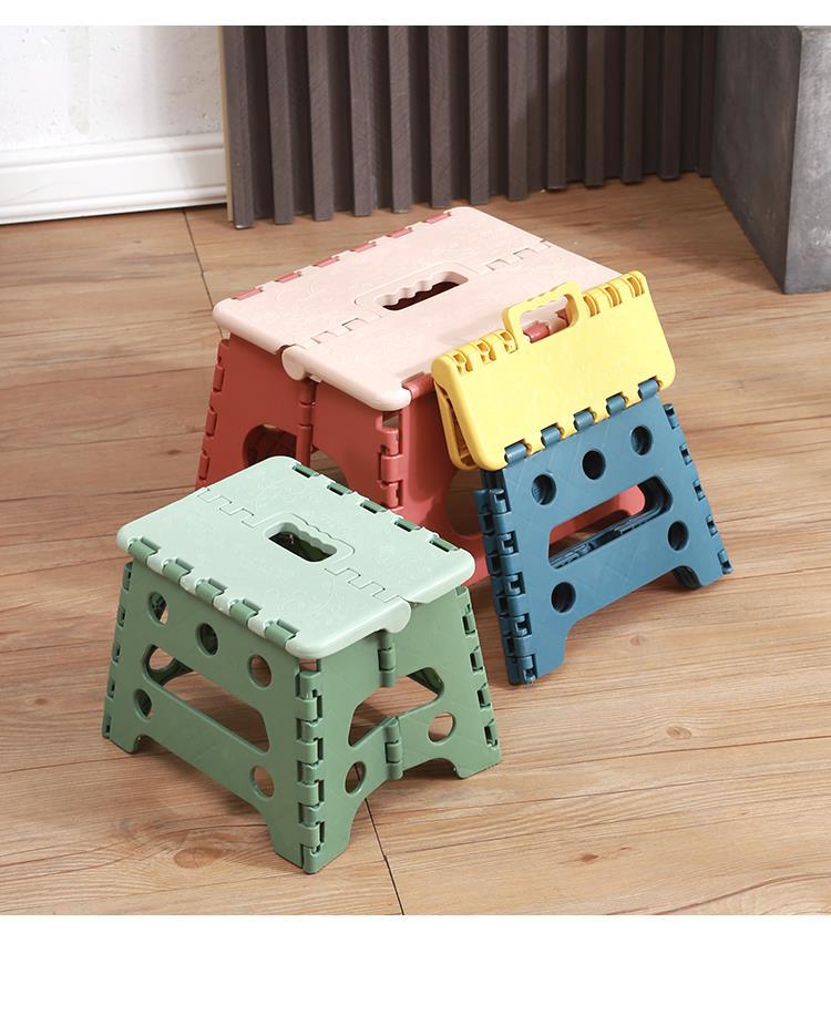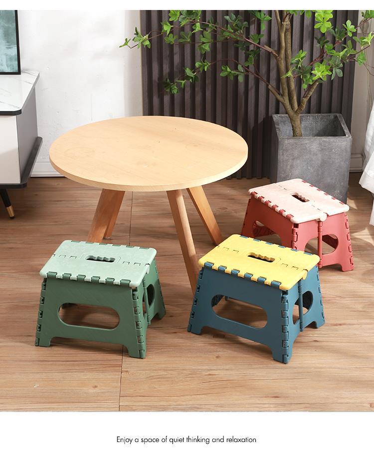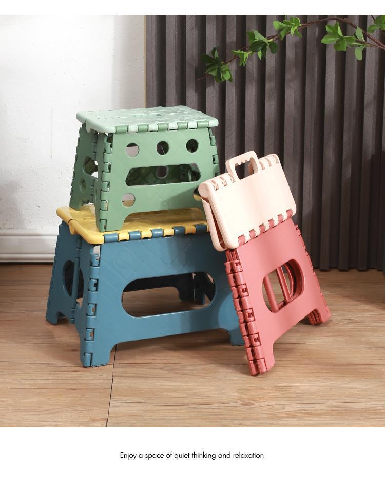 Taburete plegable portátil de plástico, reforzado, ahorro de espacio, ideal para hogar y actividades al aire libre, ligero y resistente.