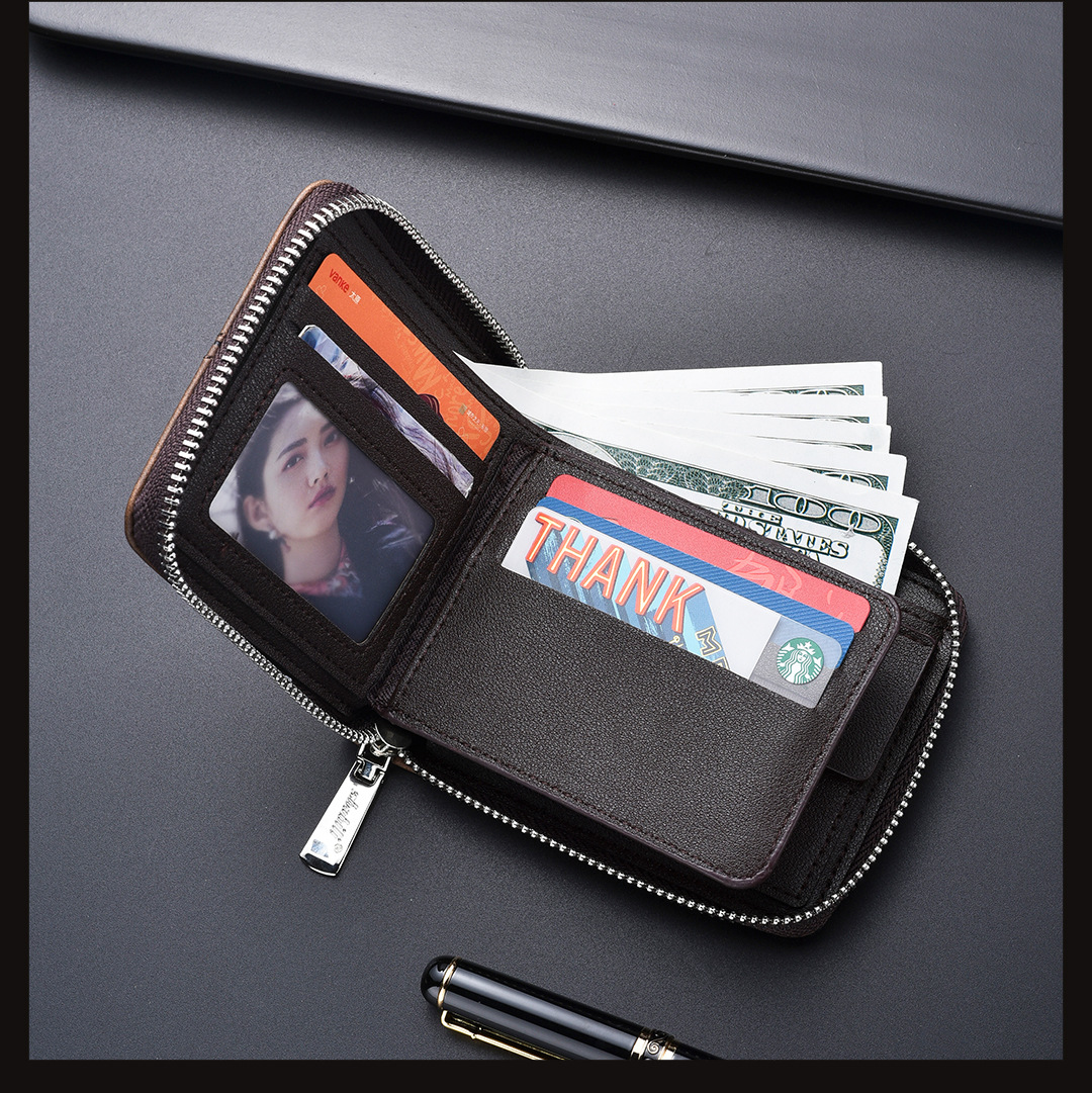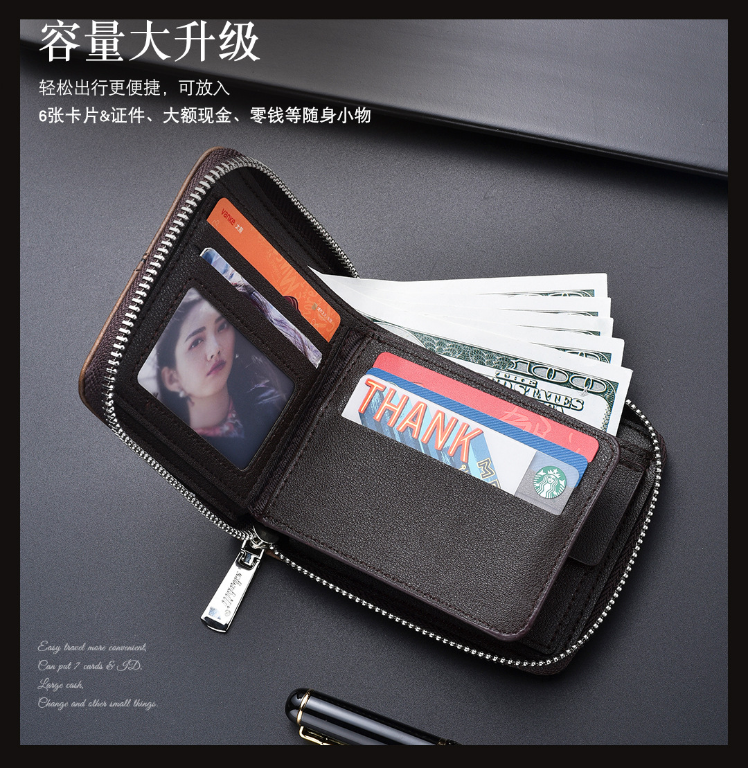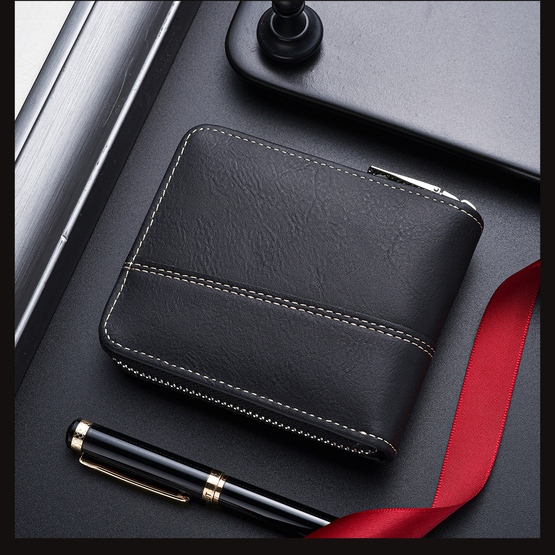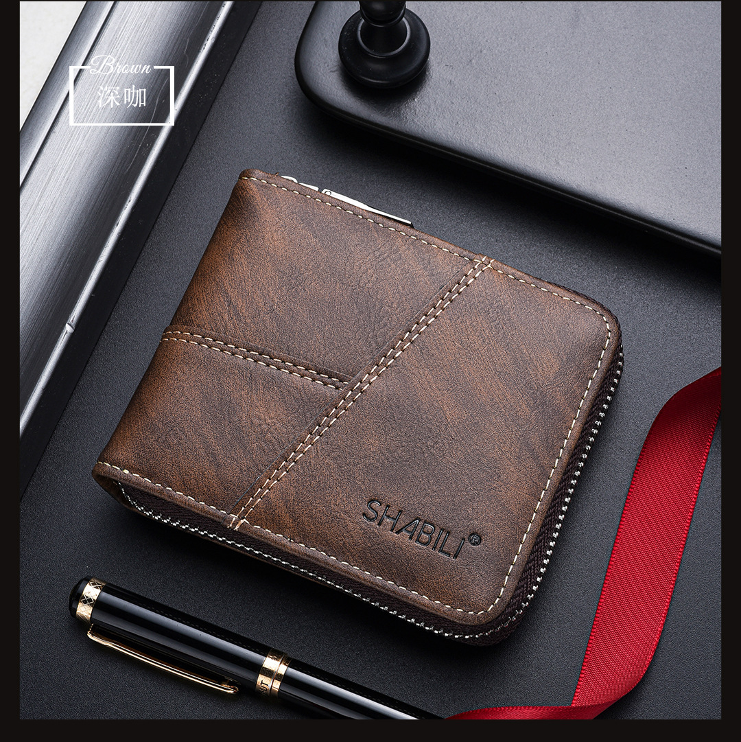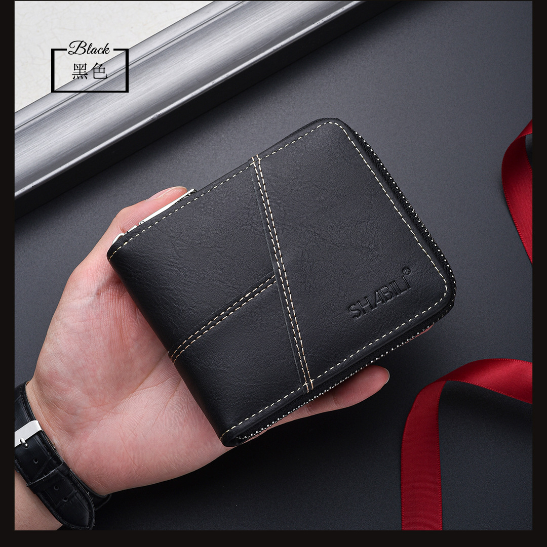 Cartera corta de hombre retro con cremallera estilo negocios moda simple