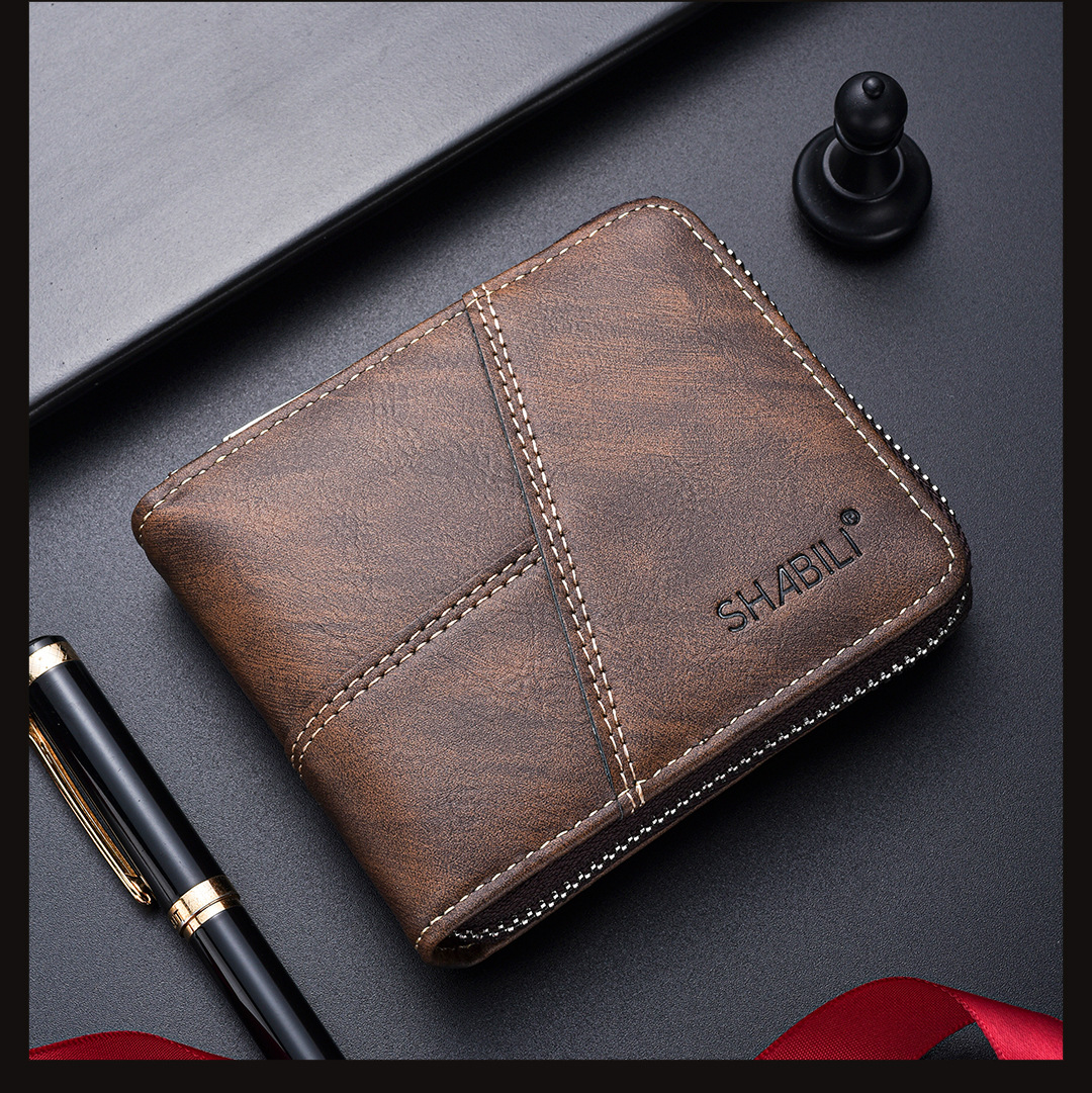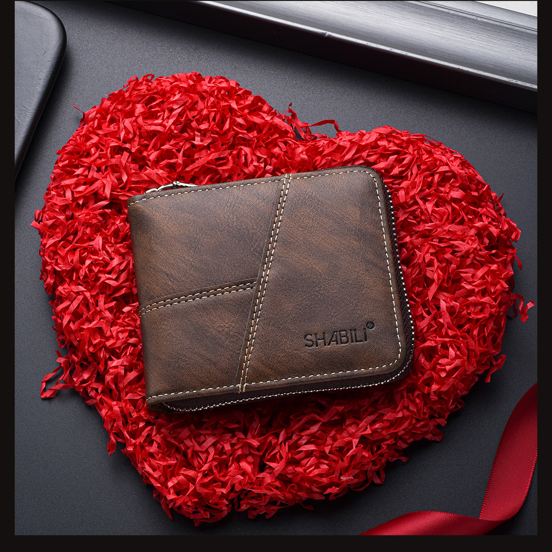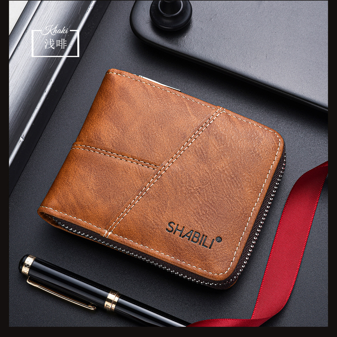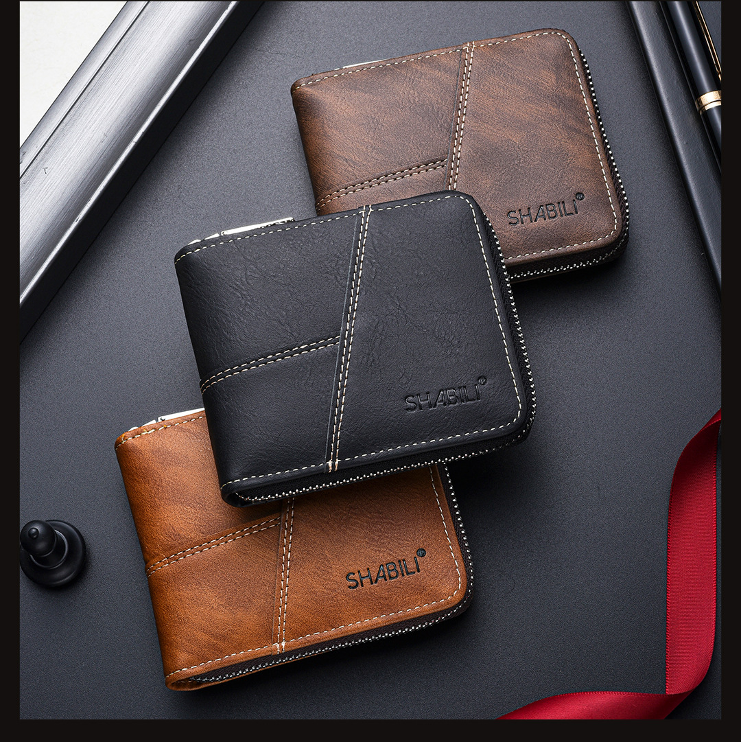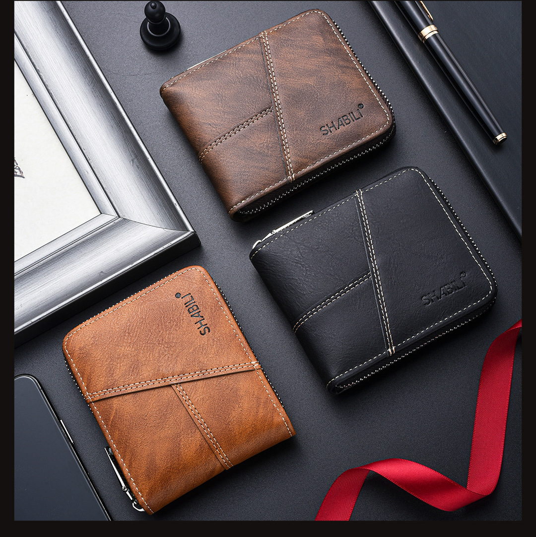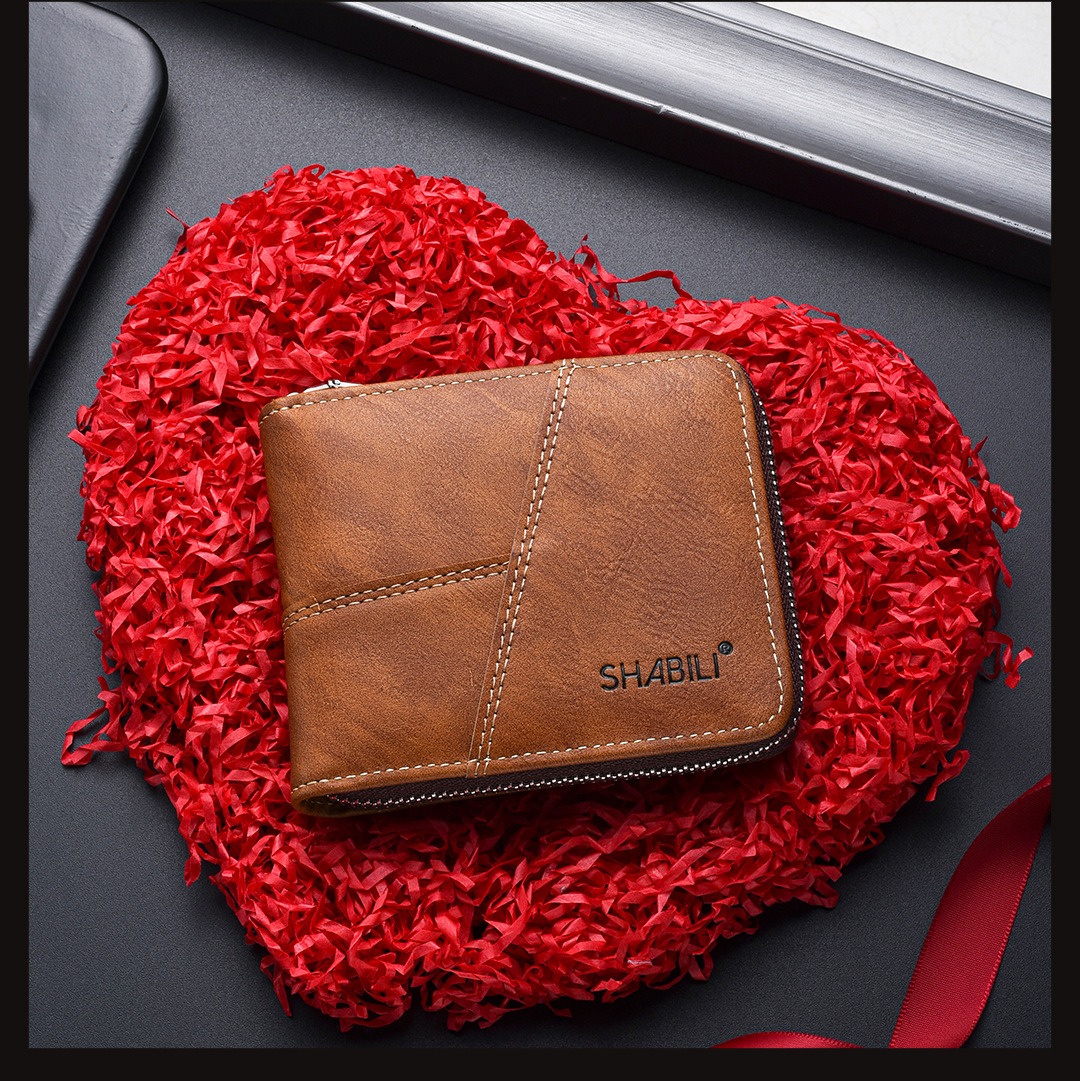 Cartera corta de hombre retro con cremallera estilo negocios moda simple