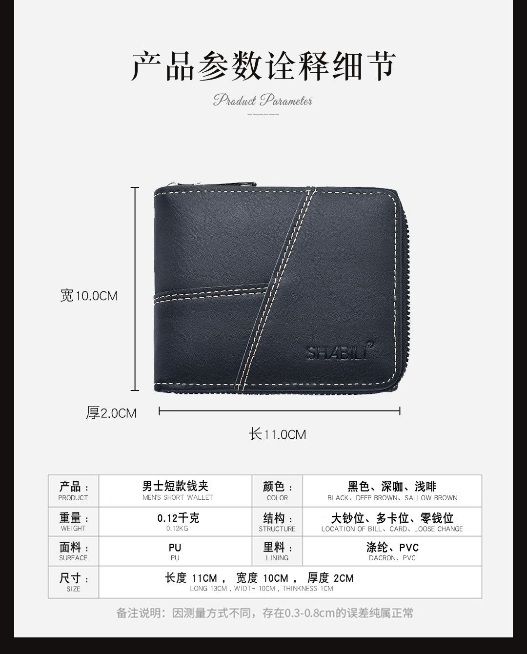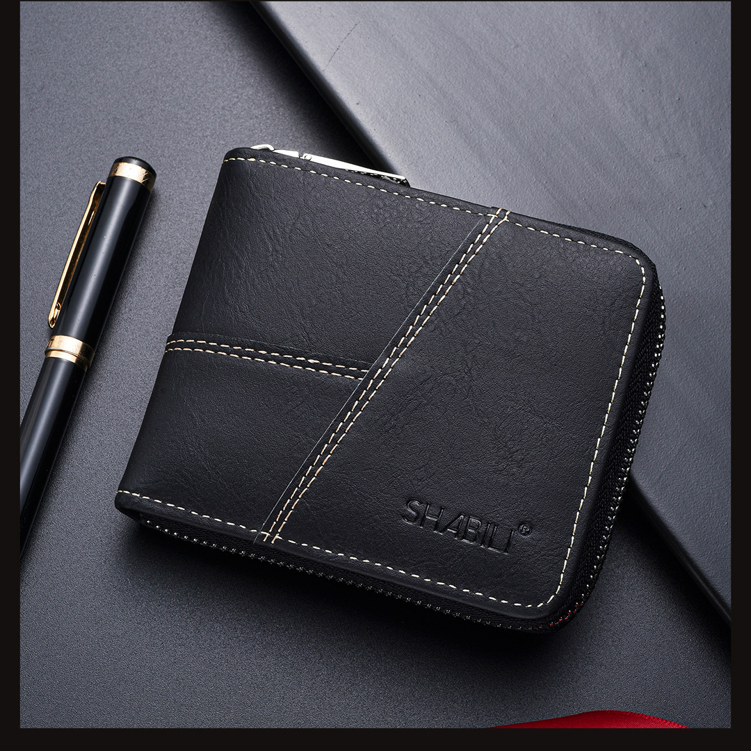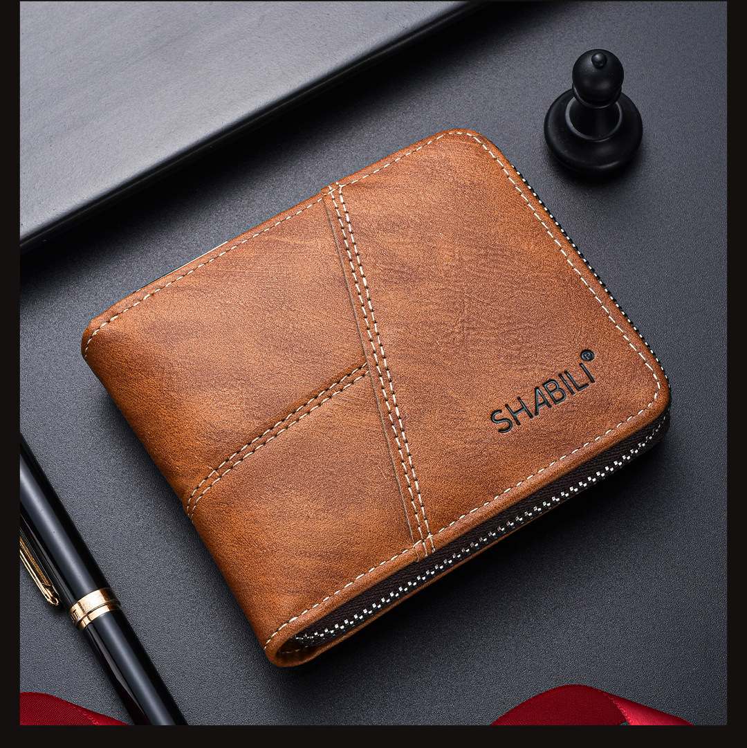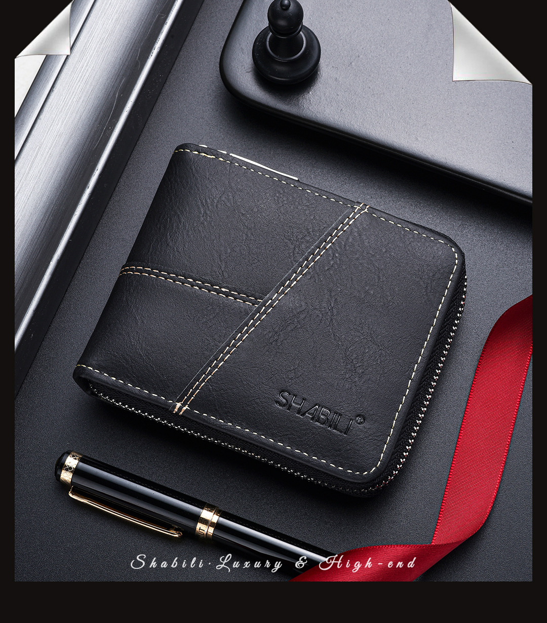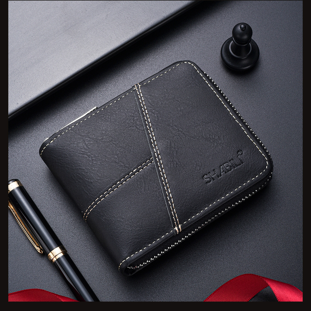 Cartera corta de hombre retro con cremallera estilo negocios moda simple